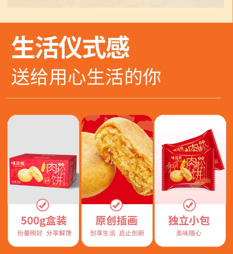 【味滋源】肉松饼500g 早餐面包整箱 网红吃货小零食小吃 休闲食品充饥夜宵