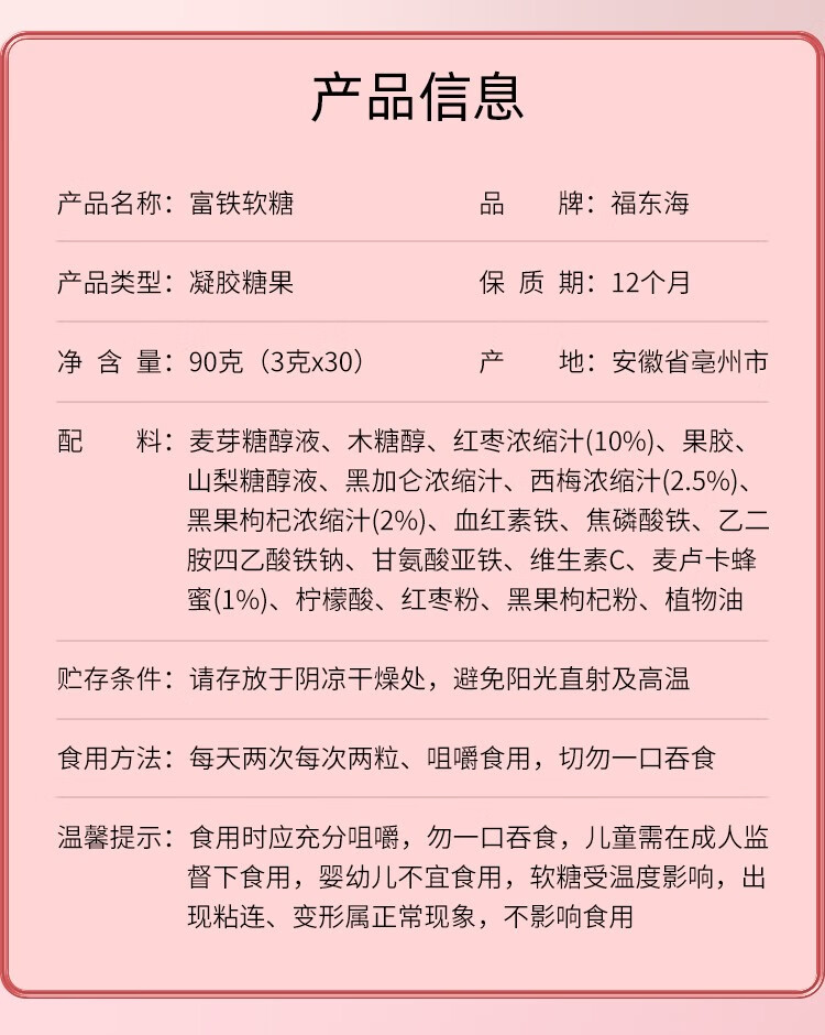 【福东海】富铁软糖90克(3g*30克 )/盒