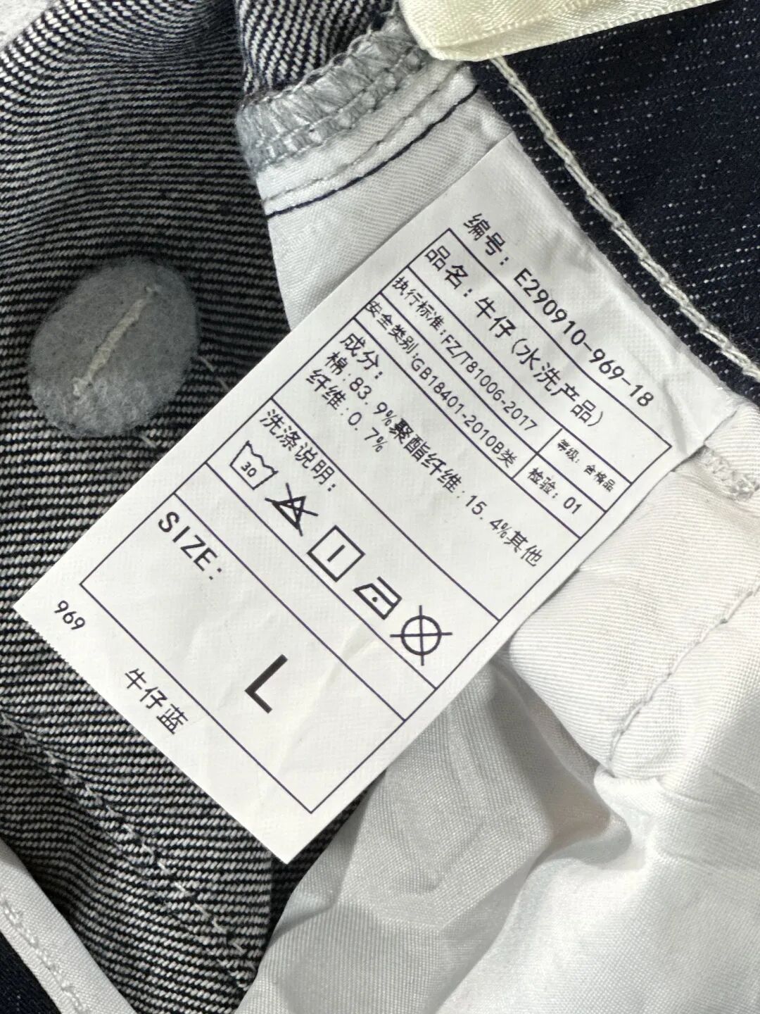 【面料成分】83.9%棉 15.4%聚酯纤维 0.7%其他纤维