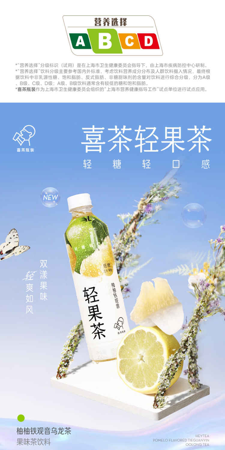 喜茶轻果茶柚柚铁观音450ml*15瓶整箱