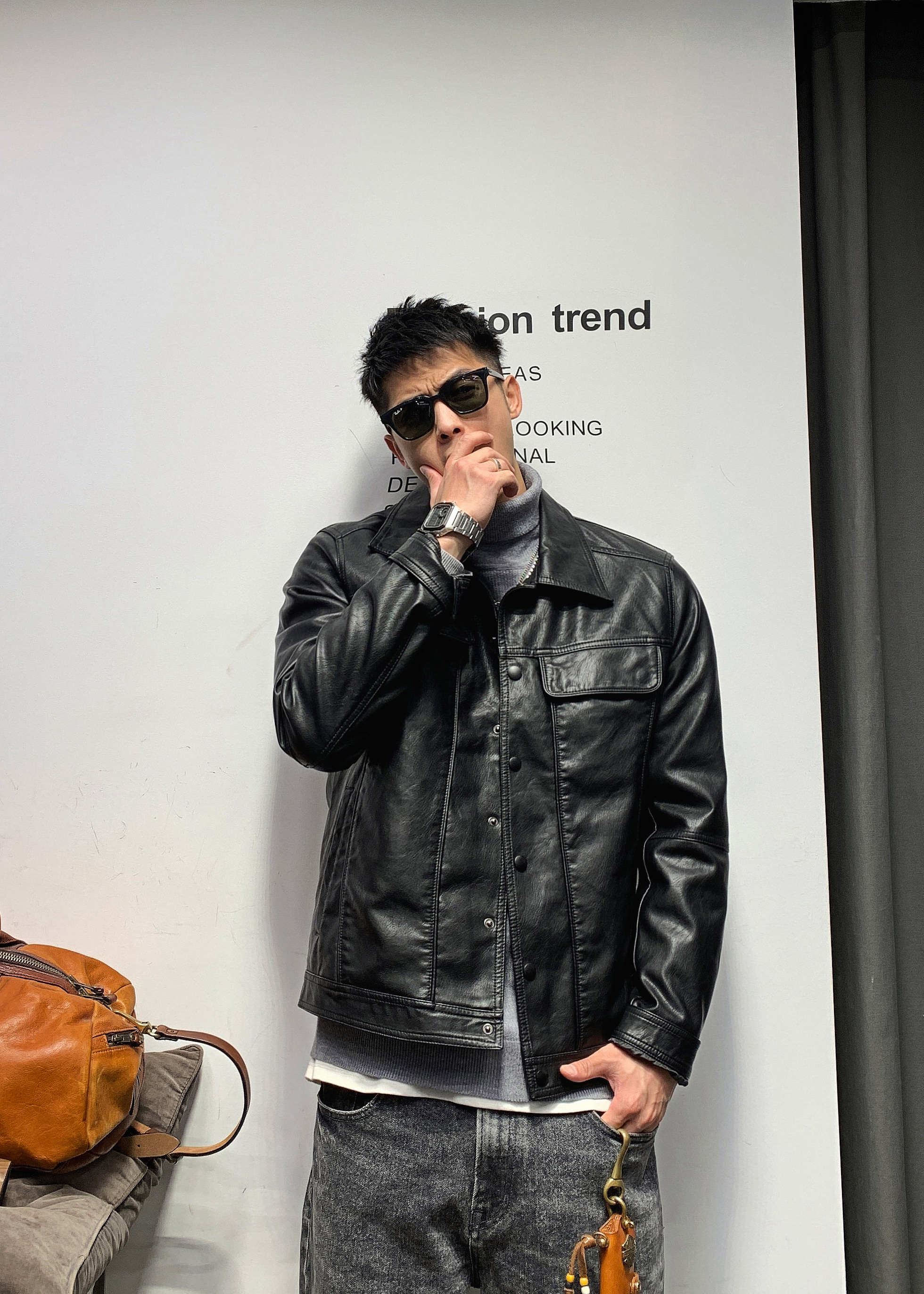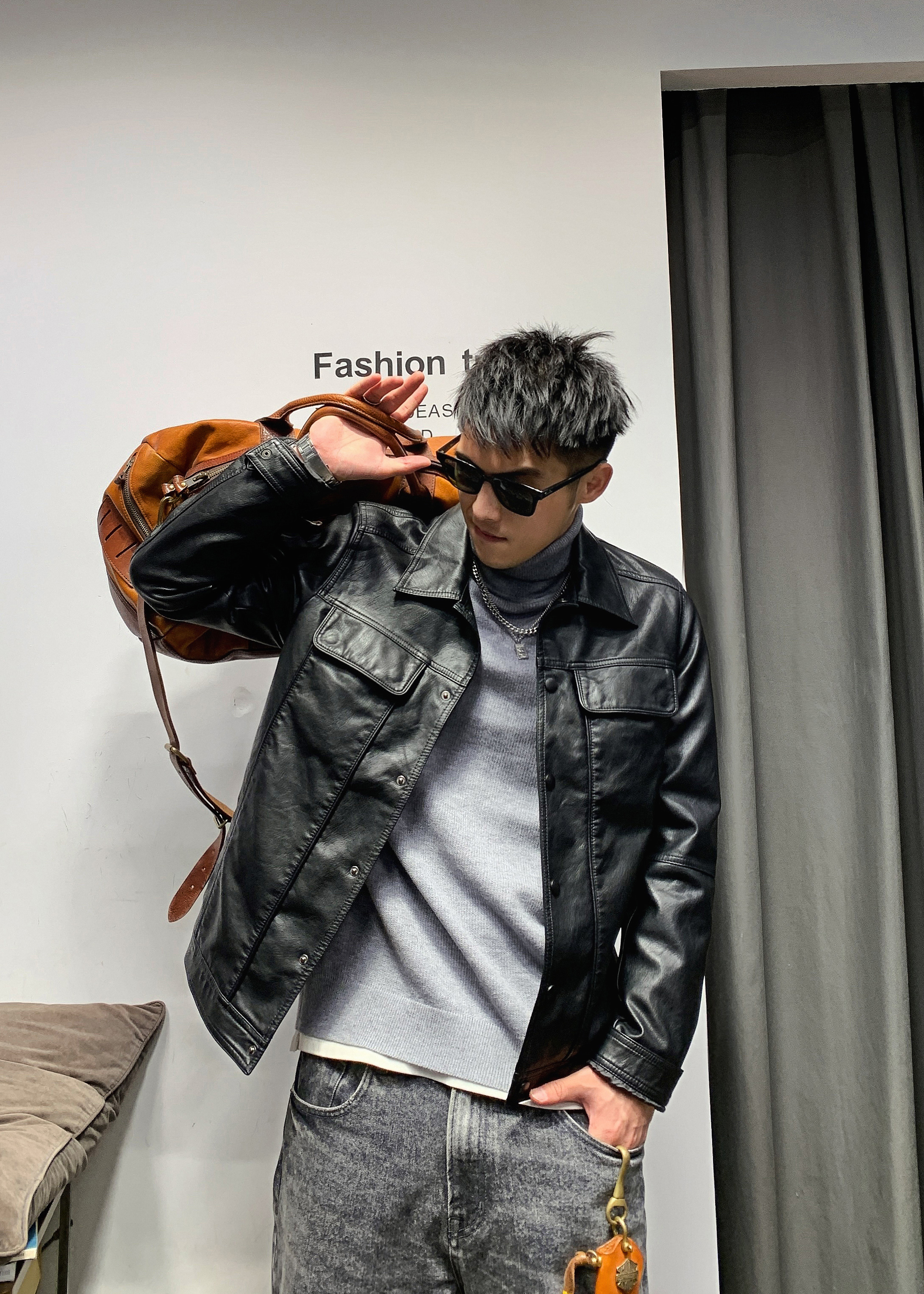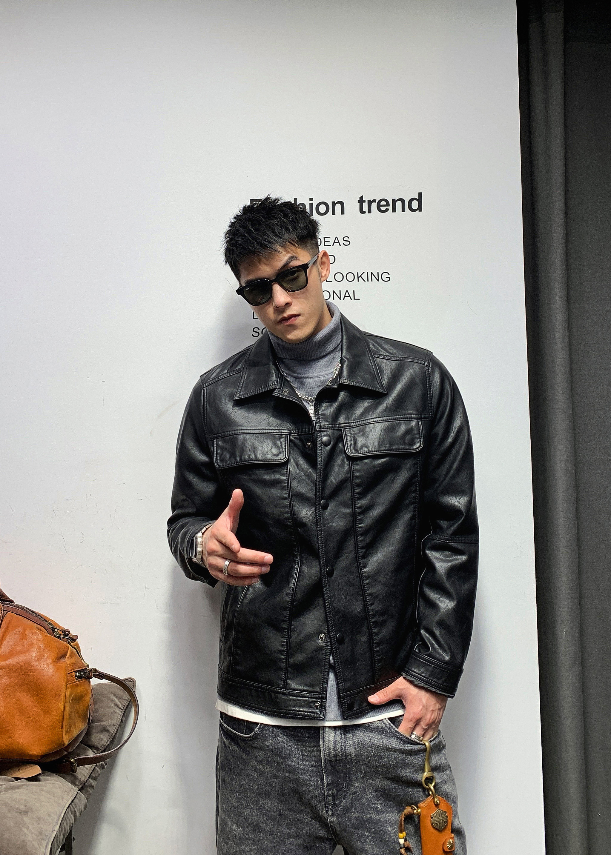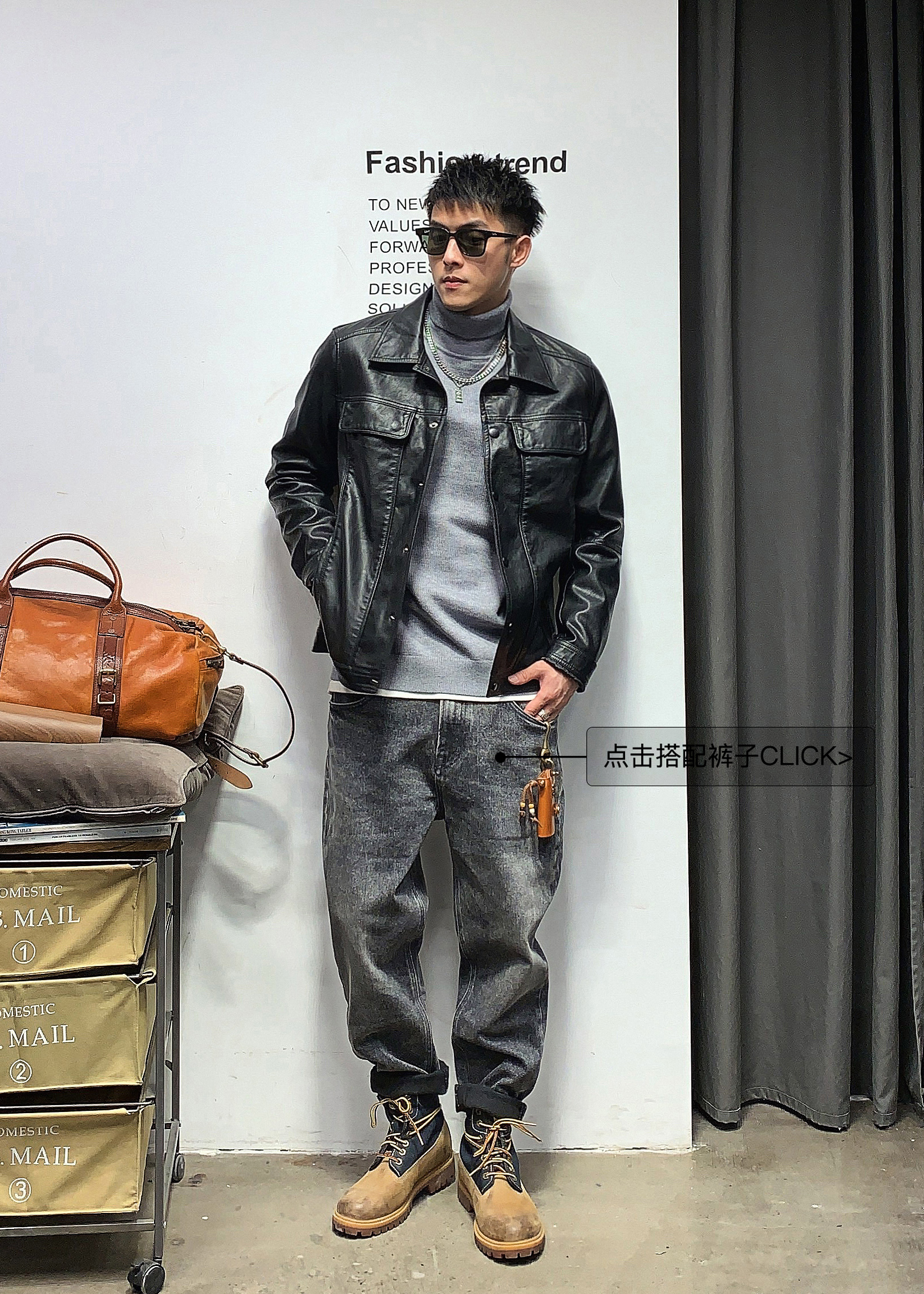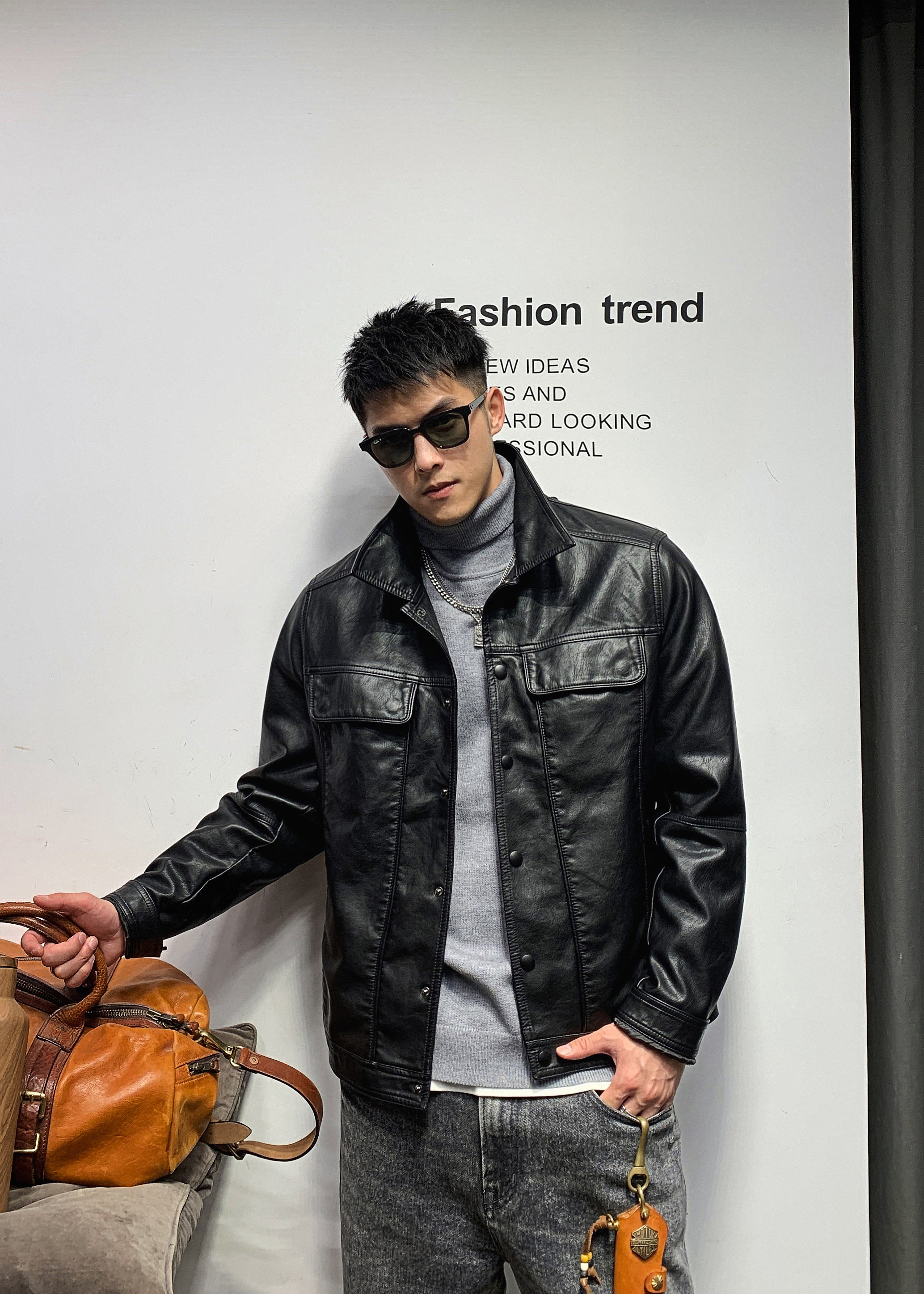 徐太浪皮夹克男春秋高端美式痞帅修身软皮衣机车潮牌外套