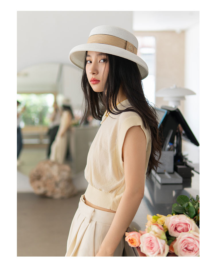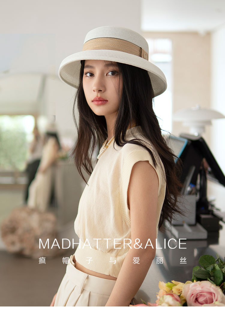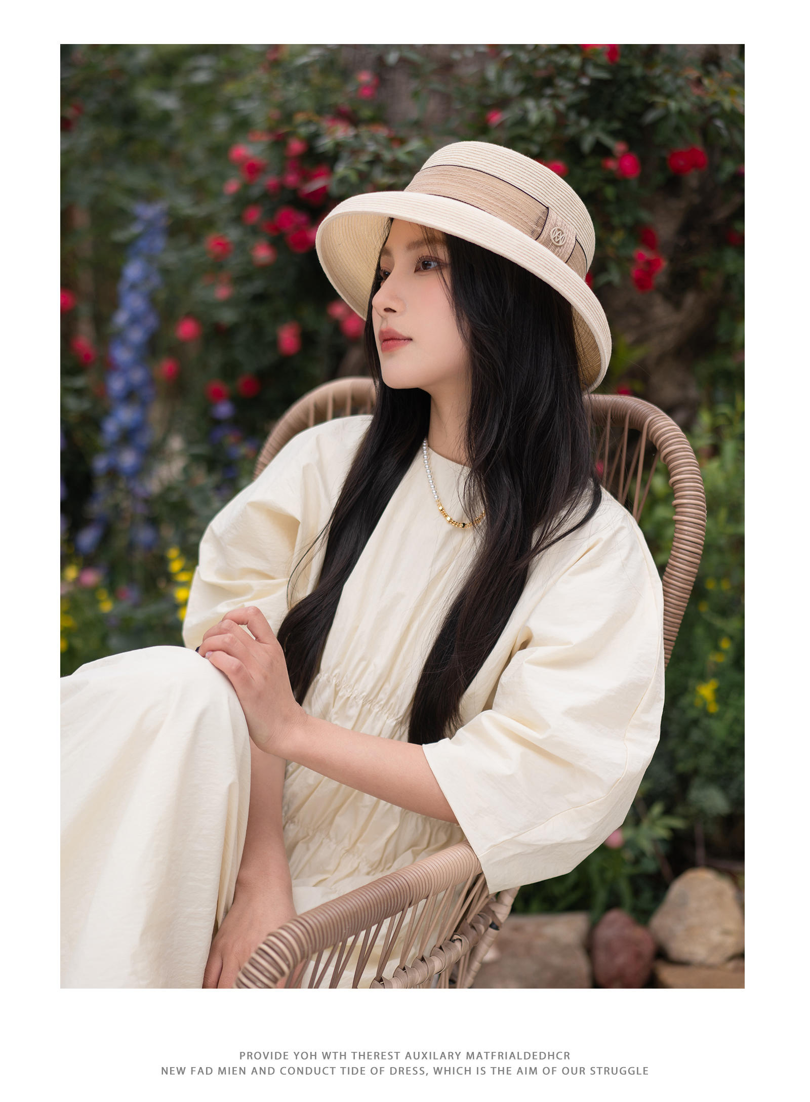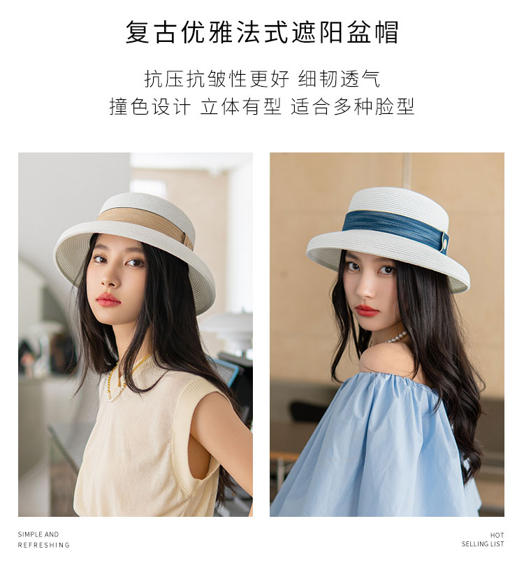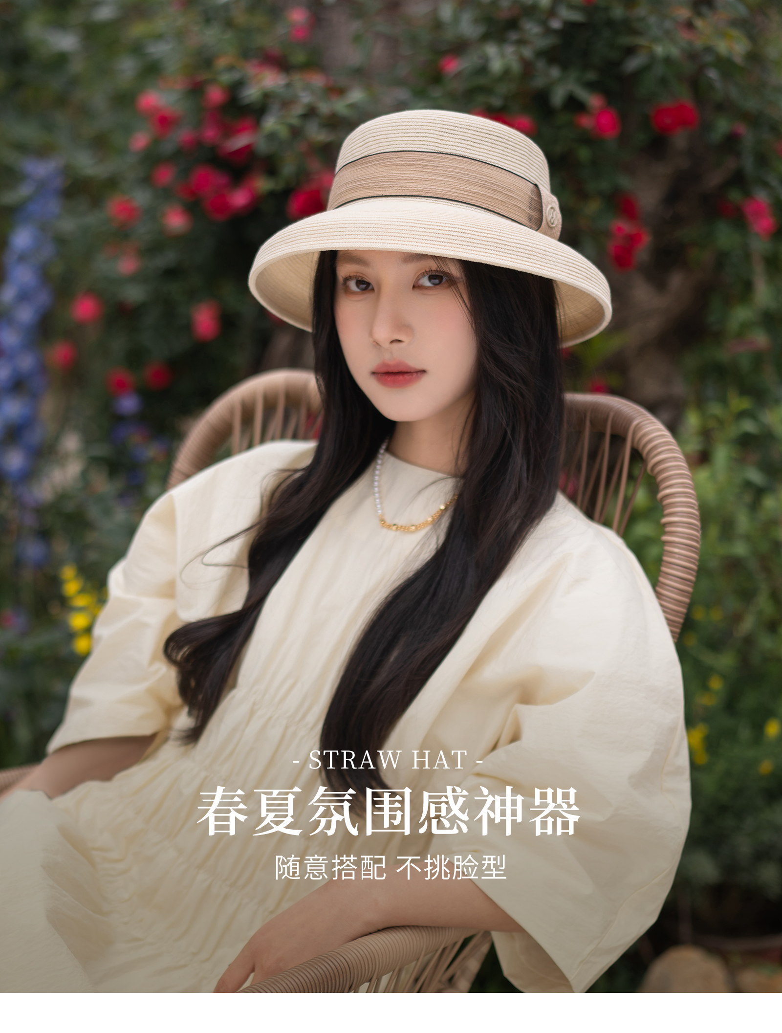 疯帽子 复古优雅法式出游逛街 夏季遮阳盆帽渔夫帽 草帽女 轻薄款