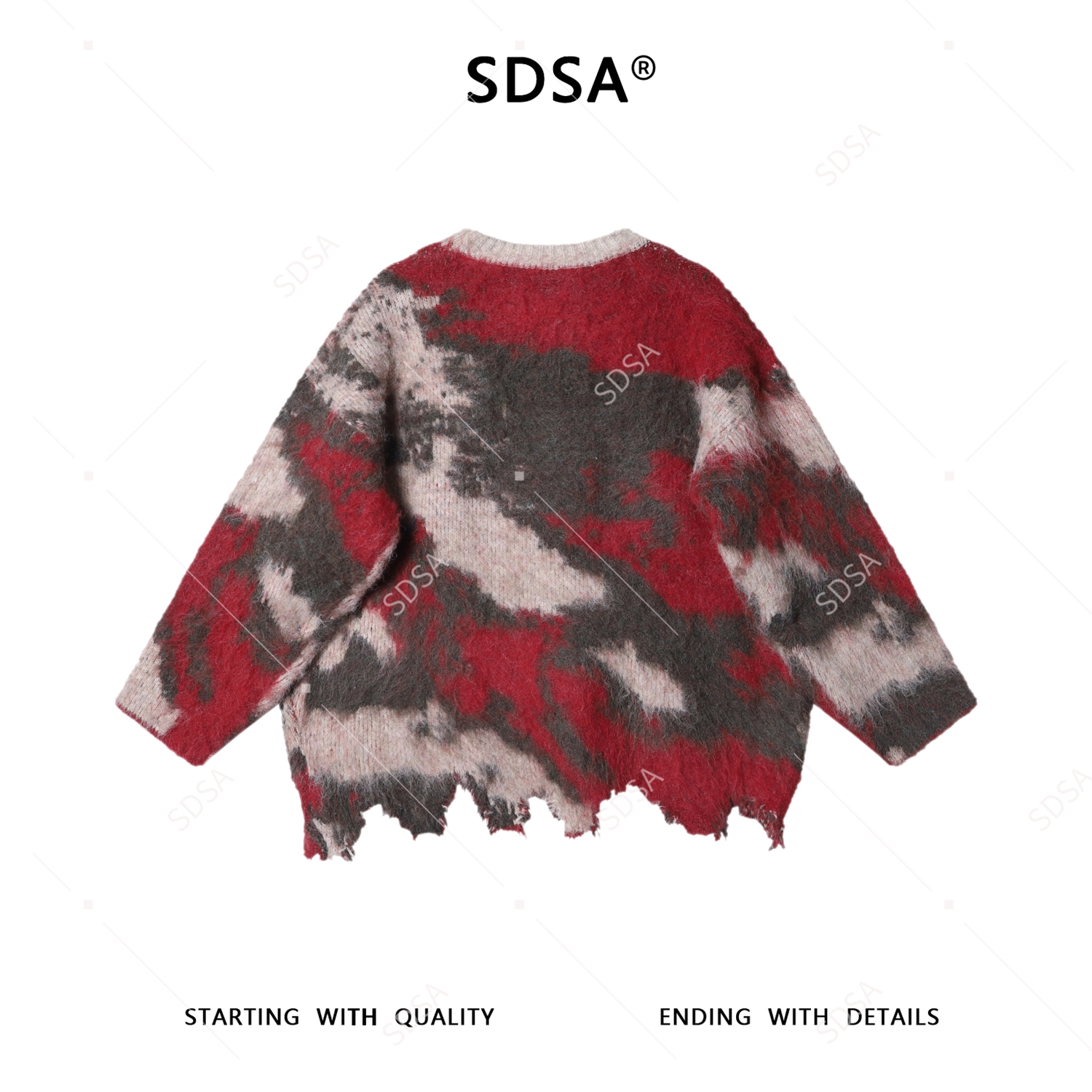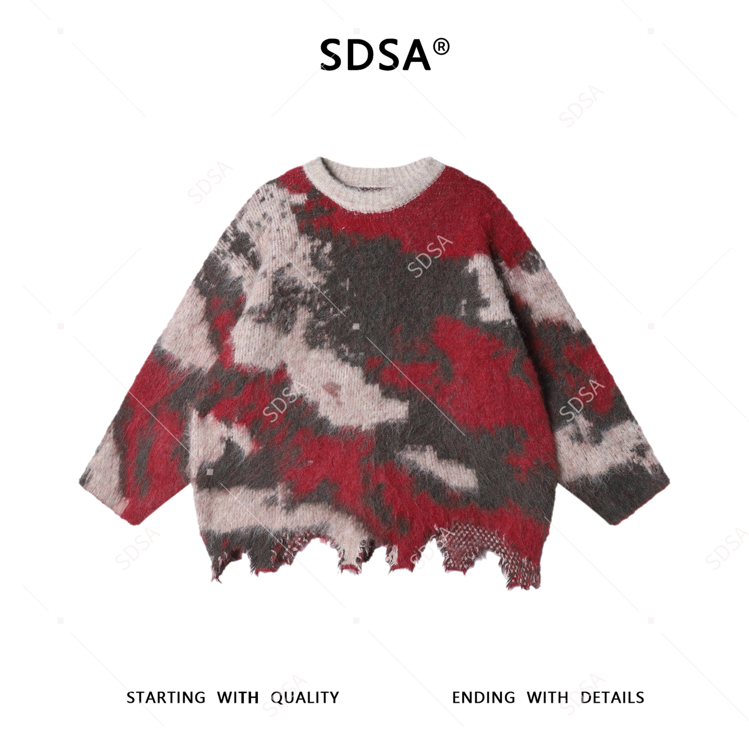 SDSA男士秋冬新款痞帅男装设计感不规则撞色圆领毛衣慵懒风百搭