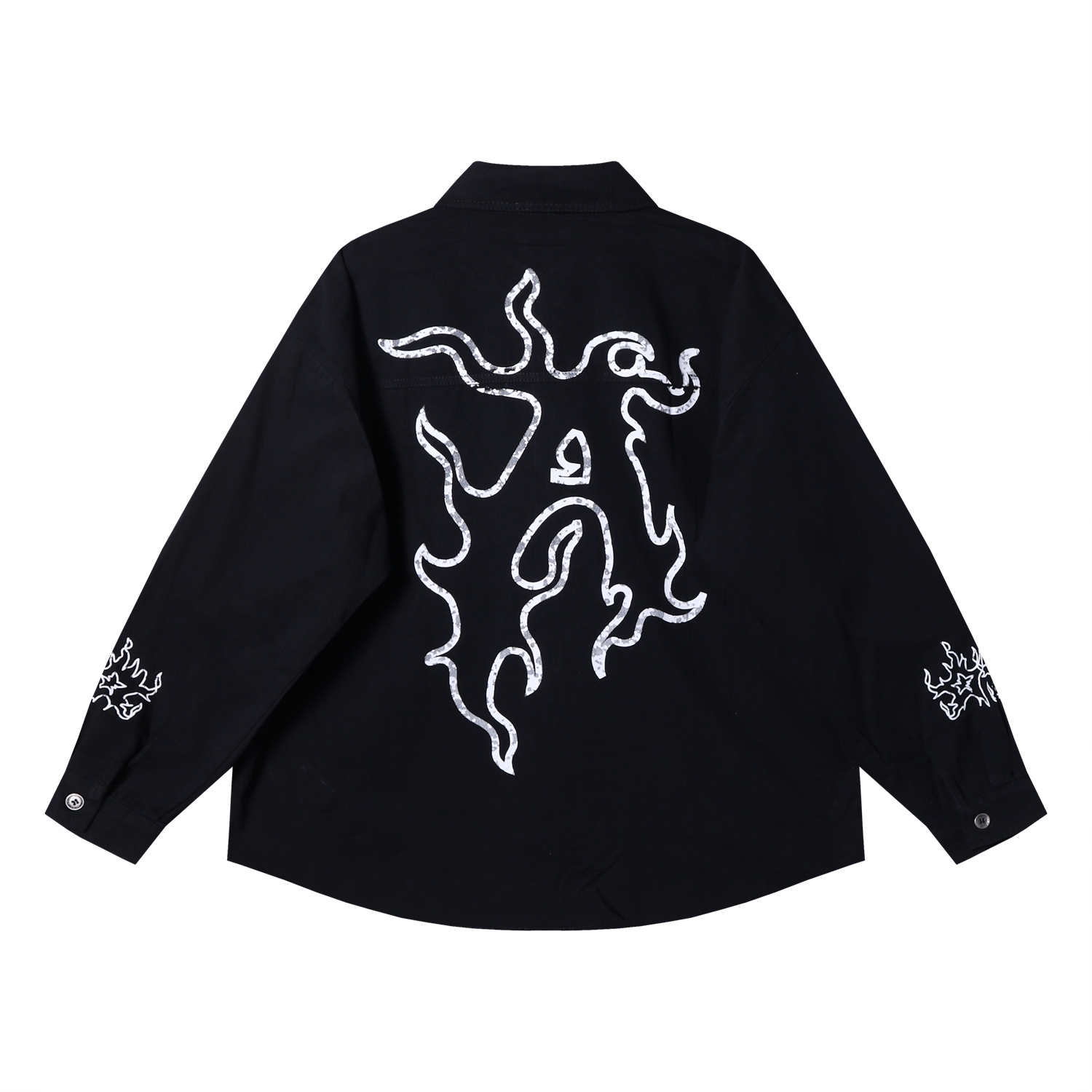 J9821SDSA男士秋冬新款痞帅男装潮牌火焰印花长袖衬衫百搭高街痞帅衬衣