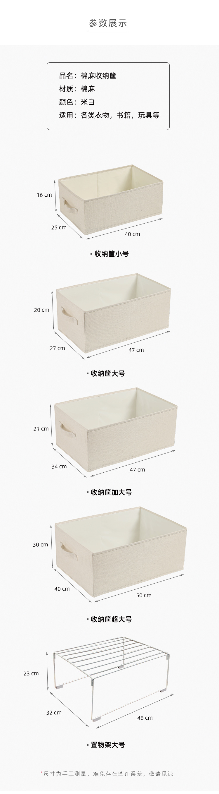 【白色3种规格可选】娜家无盖弯柄收纳筐