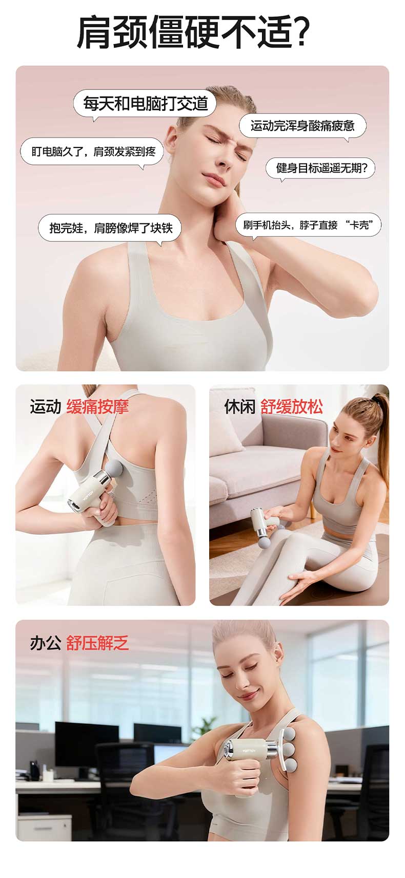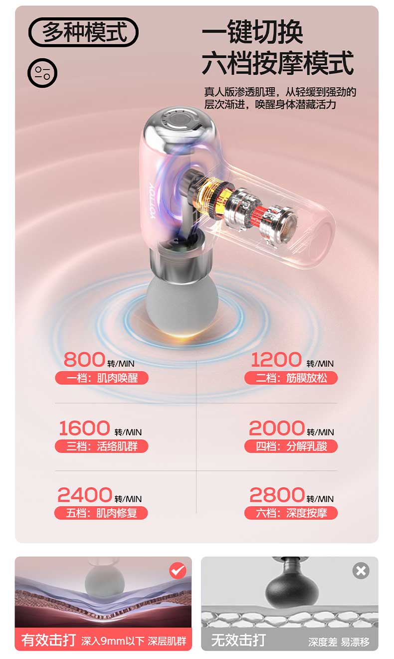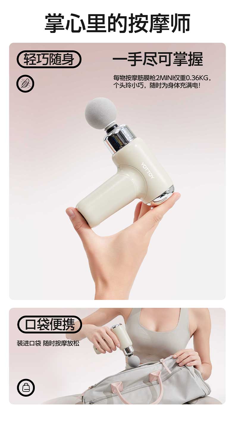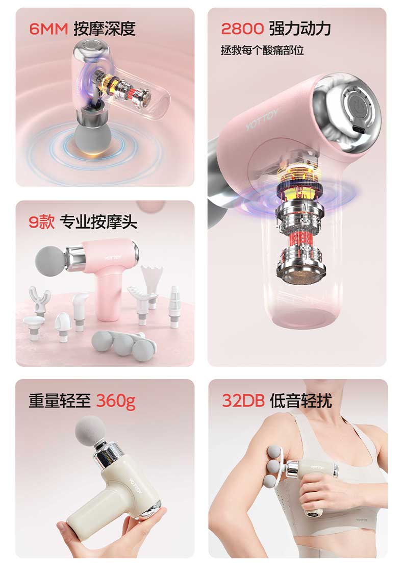 YOTTOY筋膜枪女生mini多功能改装头肌肉按摩器健身迷你颈膜按摩枪