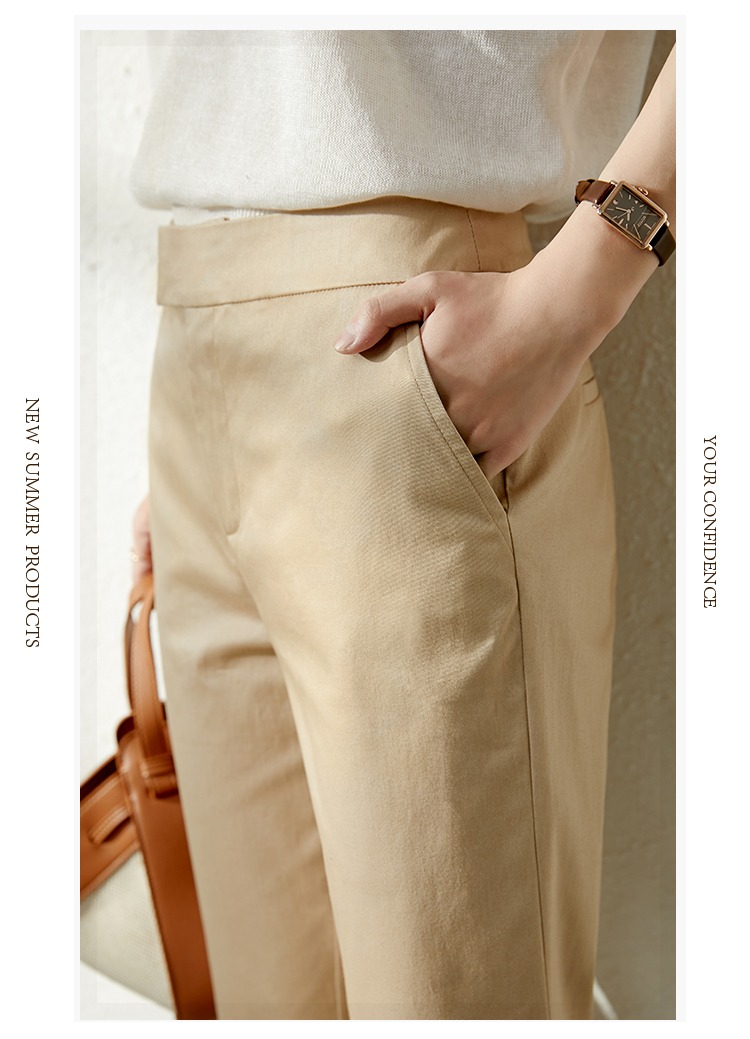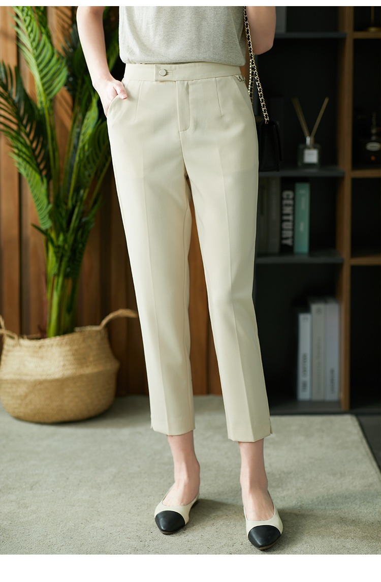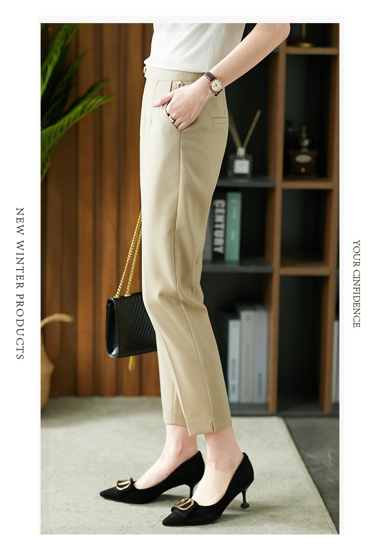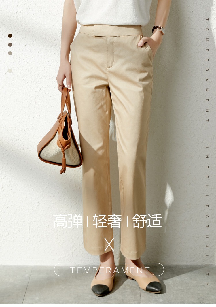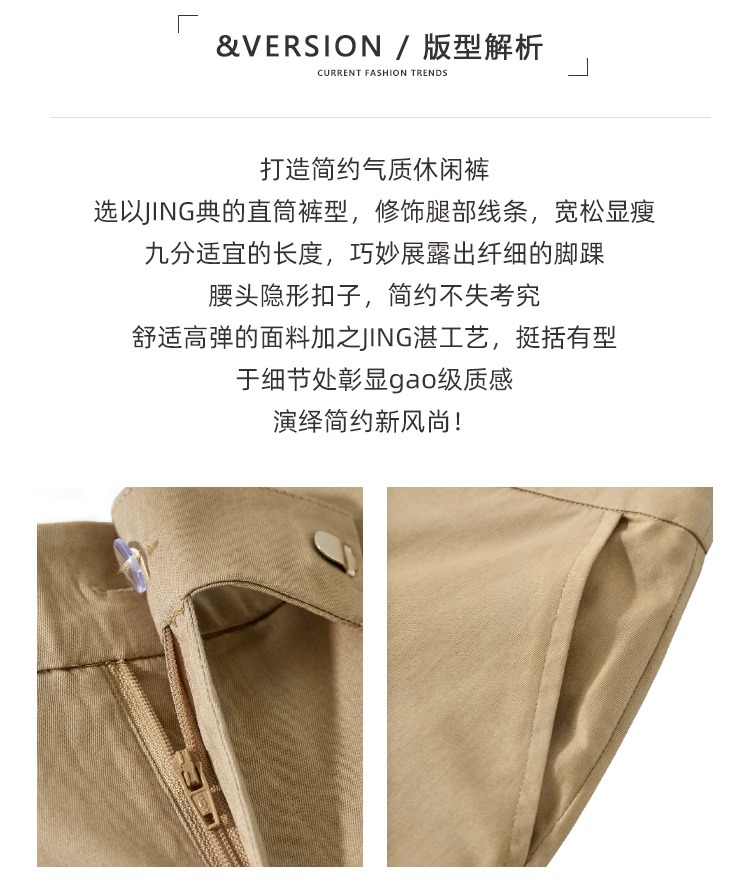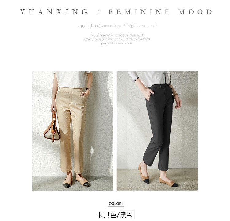 YX【现货7天】休闲裤女烟管裤春季2024新款卡其色直筒裤西装裤九分裤长裤子