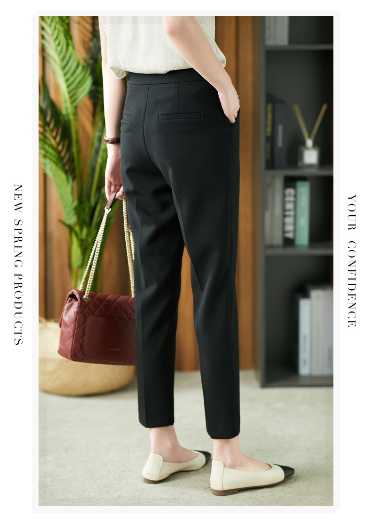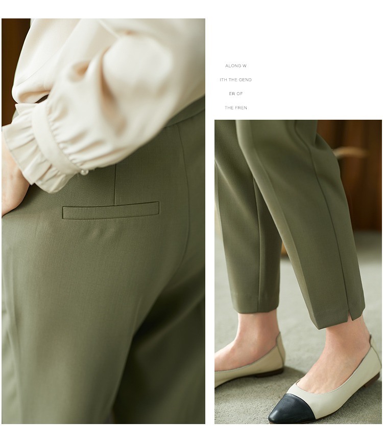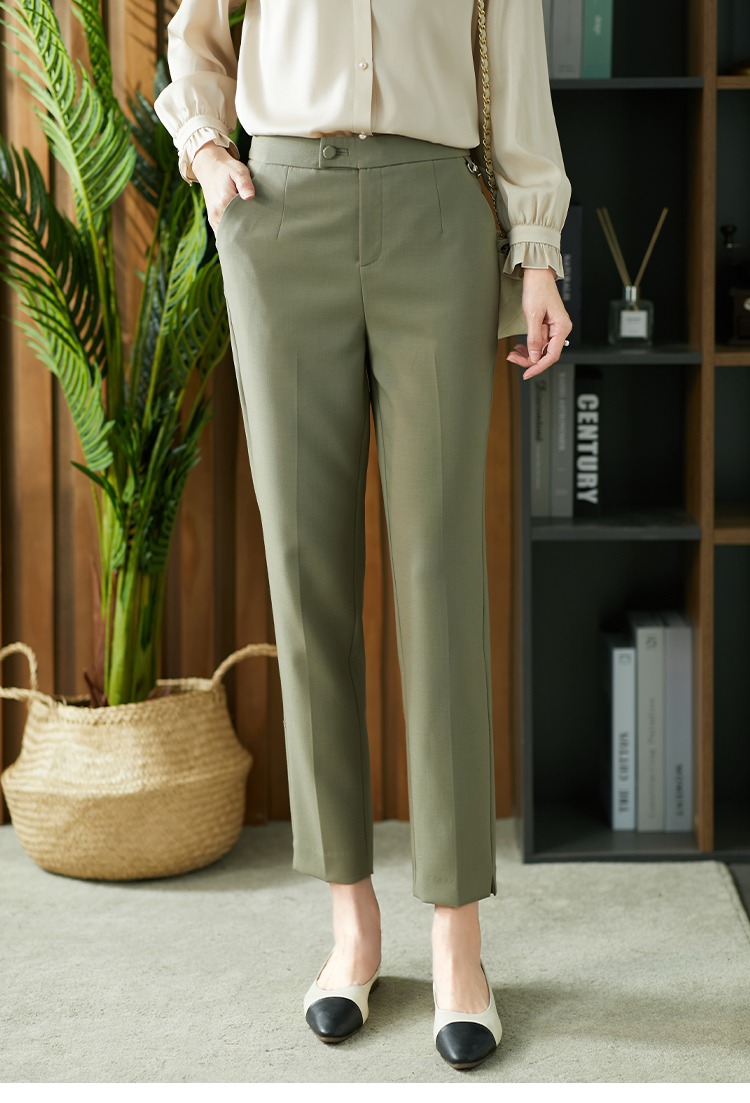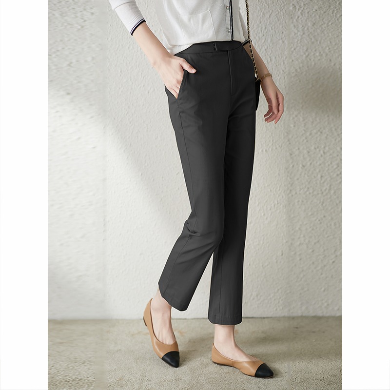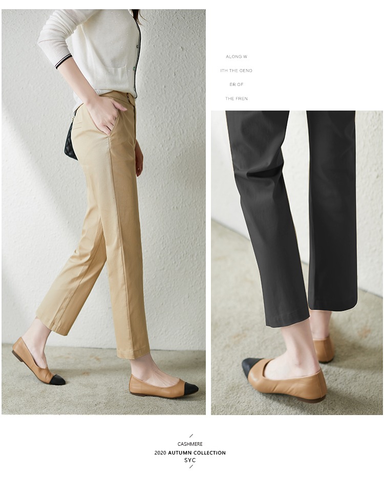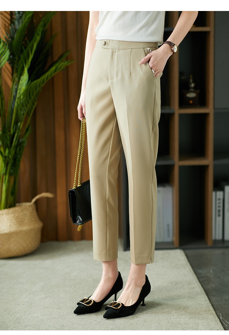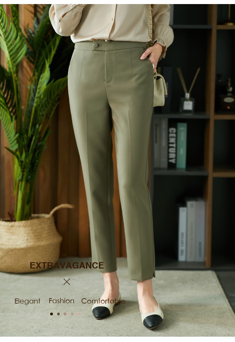 YX【现货7天】休闲裤女烟管裤春季2024新款卡其色直筒裤西装裤九分裤长裤子