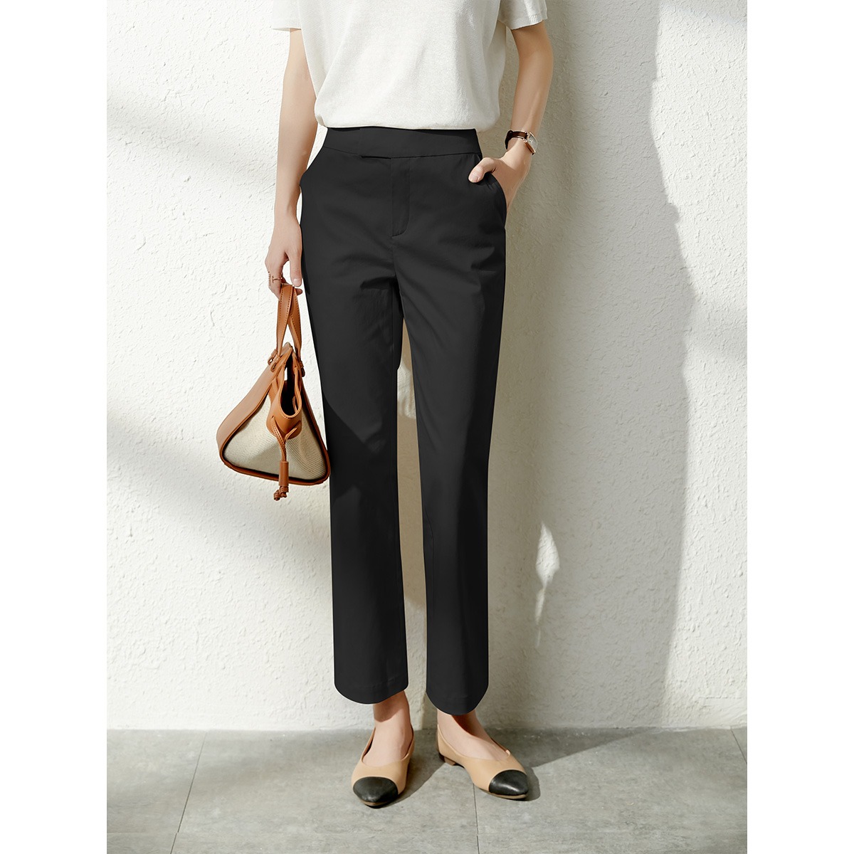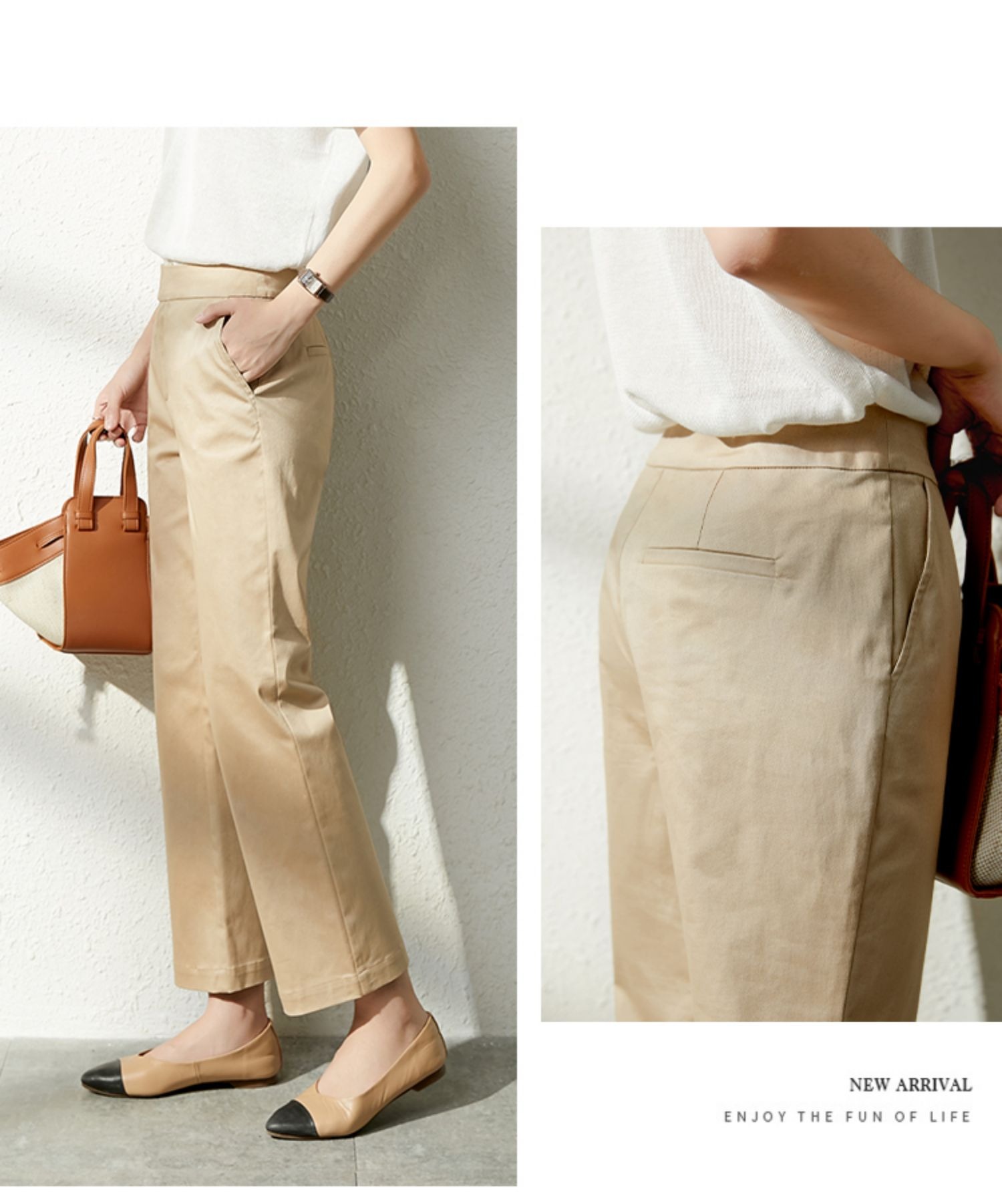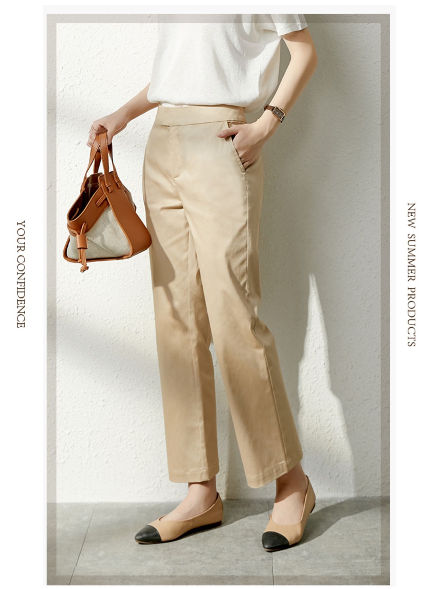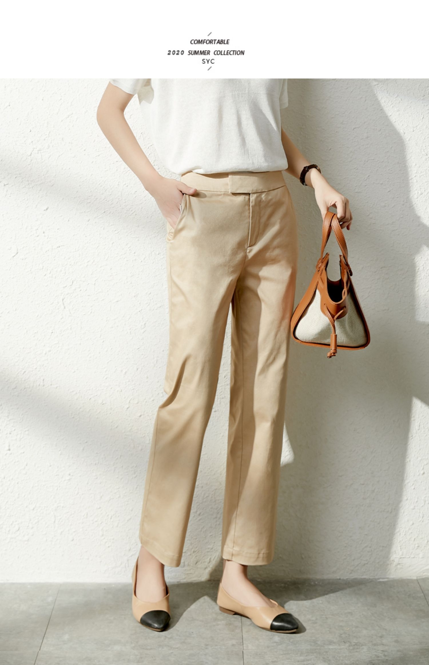 YX【现货7天】休闲裤女烟管裤春季2024新款卡其色直筒裤西装裤九分裤长裤子