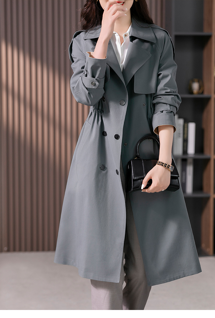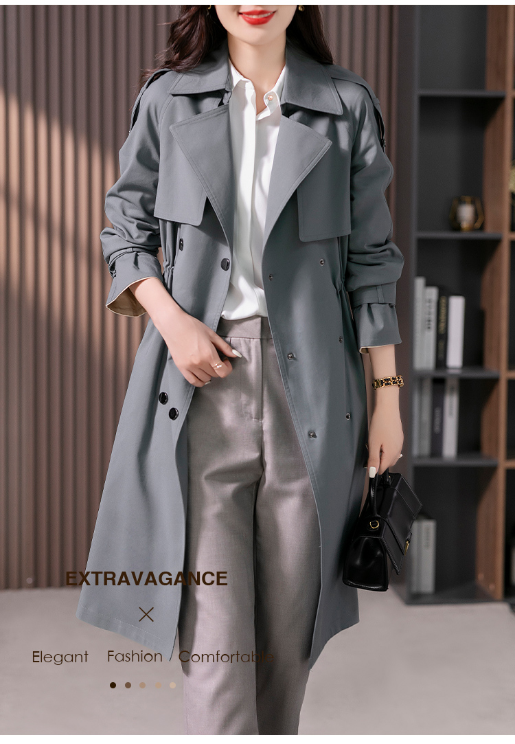 YX【定制25天】风衣外套女韩系风格穿搭2023秋季新款设计感系带中长款大衣