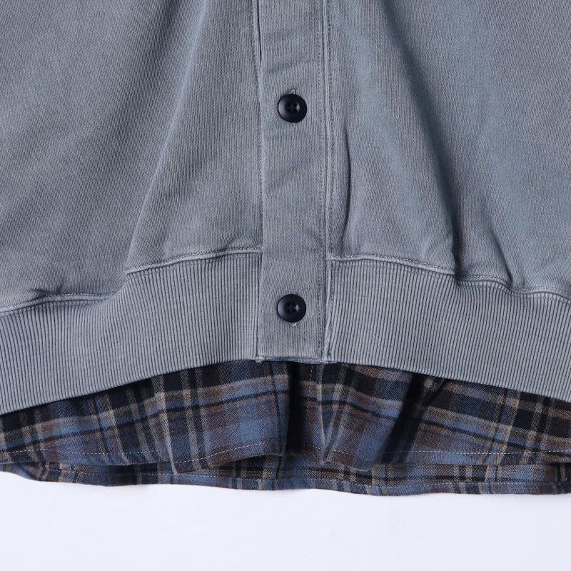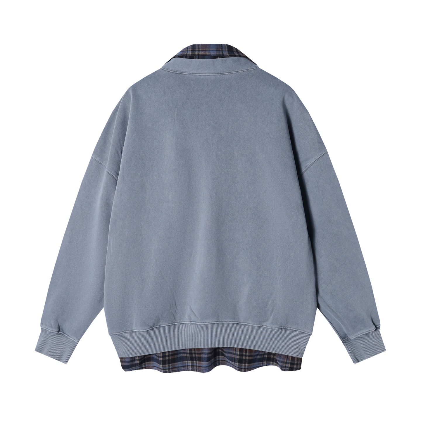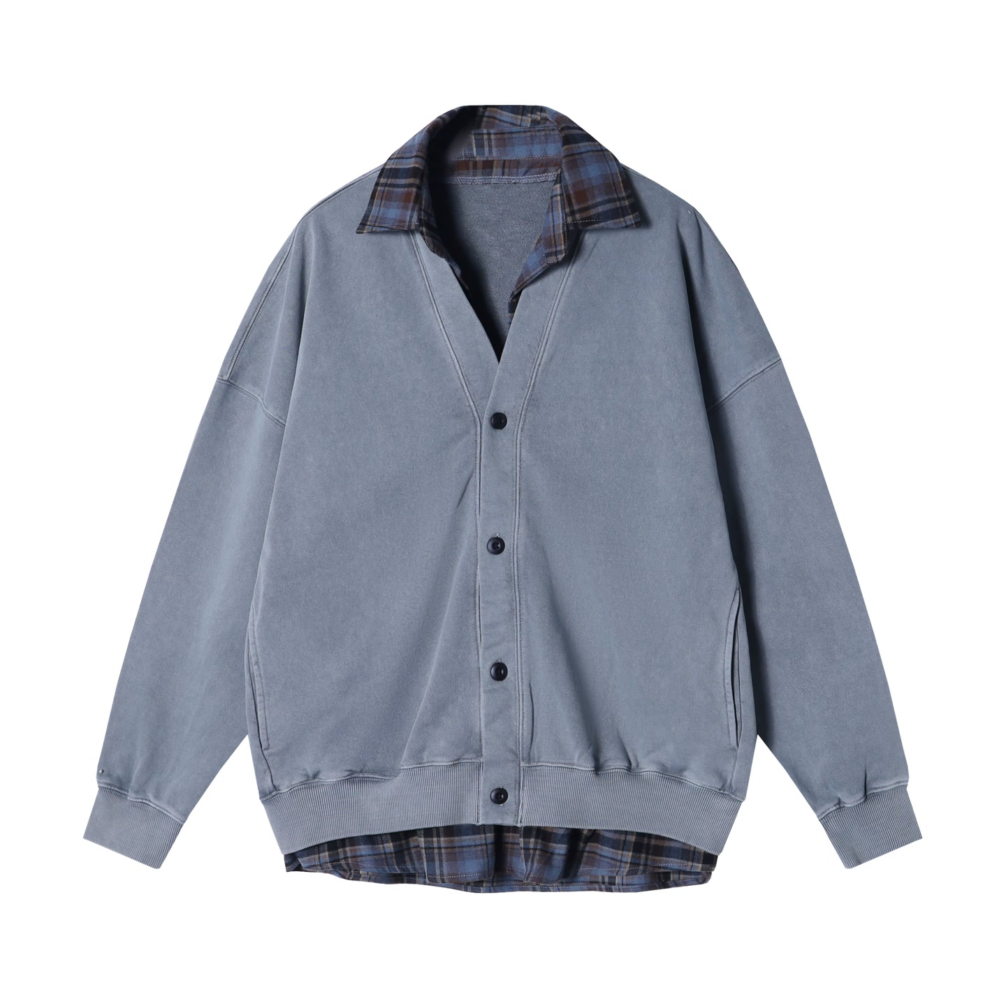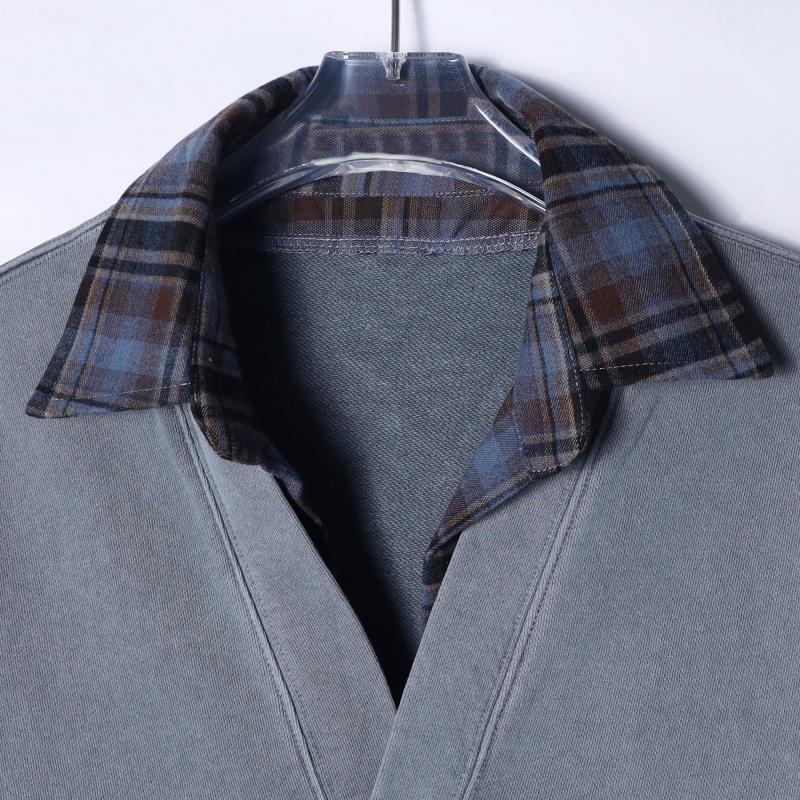 WY242秋冬季新款潮牌美式ins格子拼接假两件外套男百搭复古宽松上衣