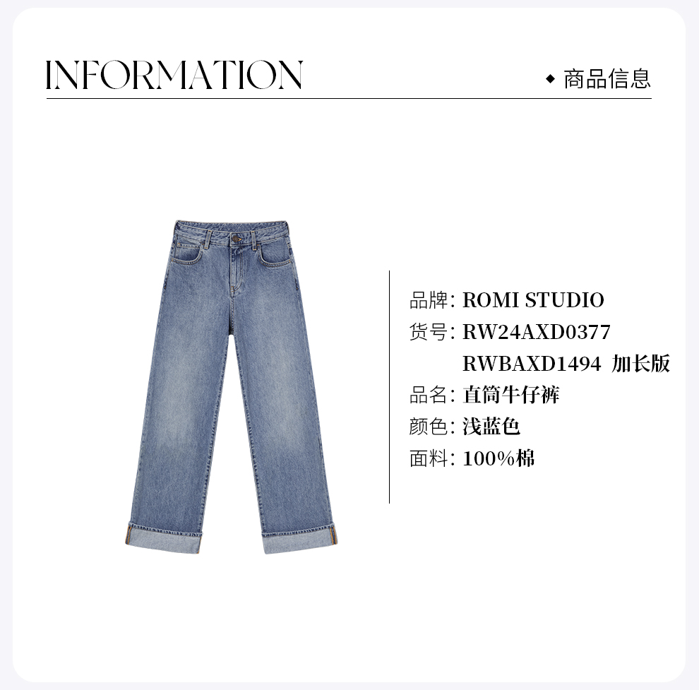ROMI STUDIO“美国牛仔” 长绒竹节棉斜纹肌理感牛仔裤 RW24AXD0377/RWBAXD1494