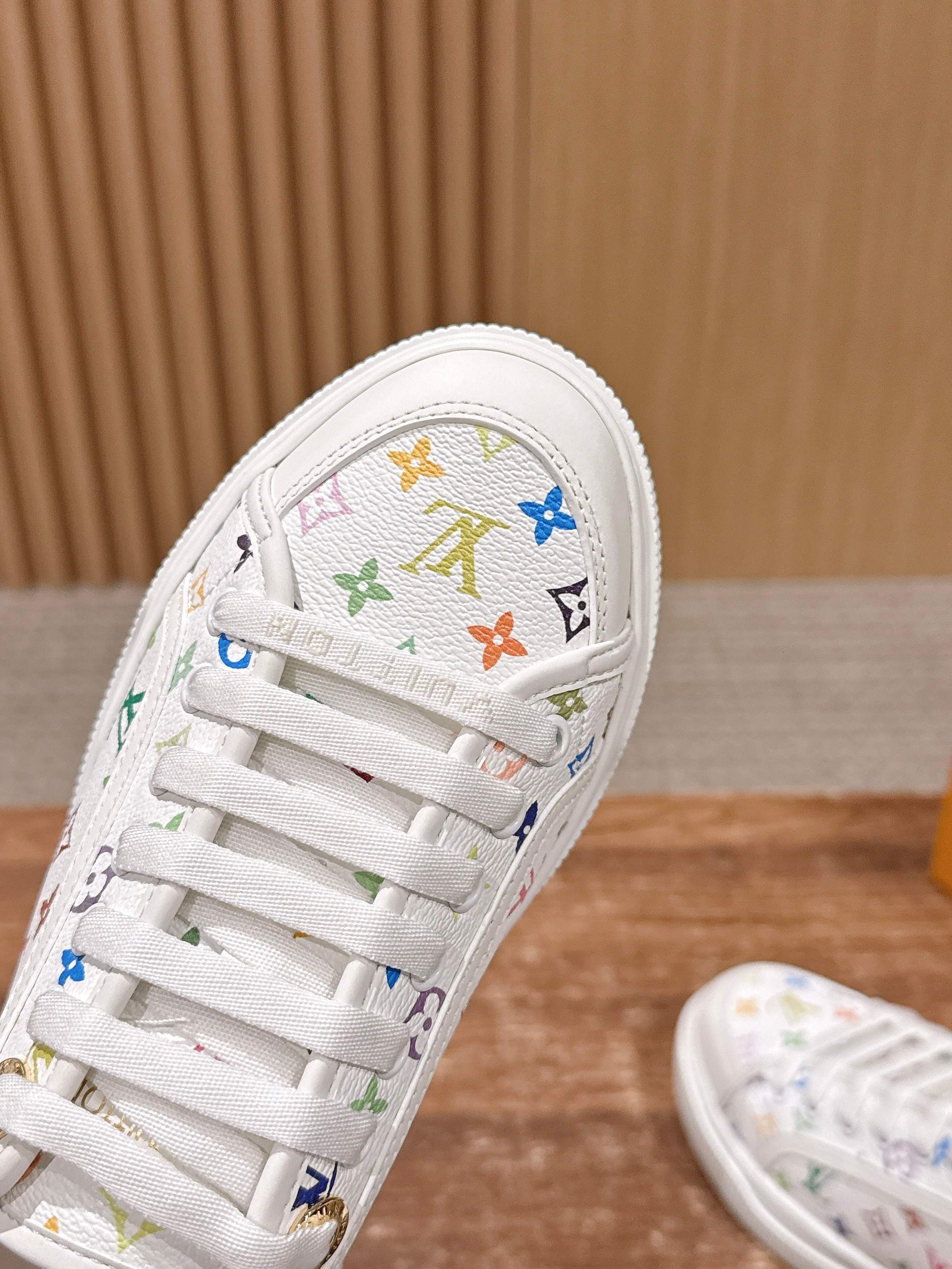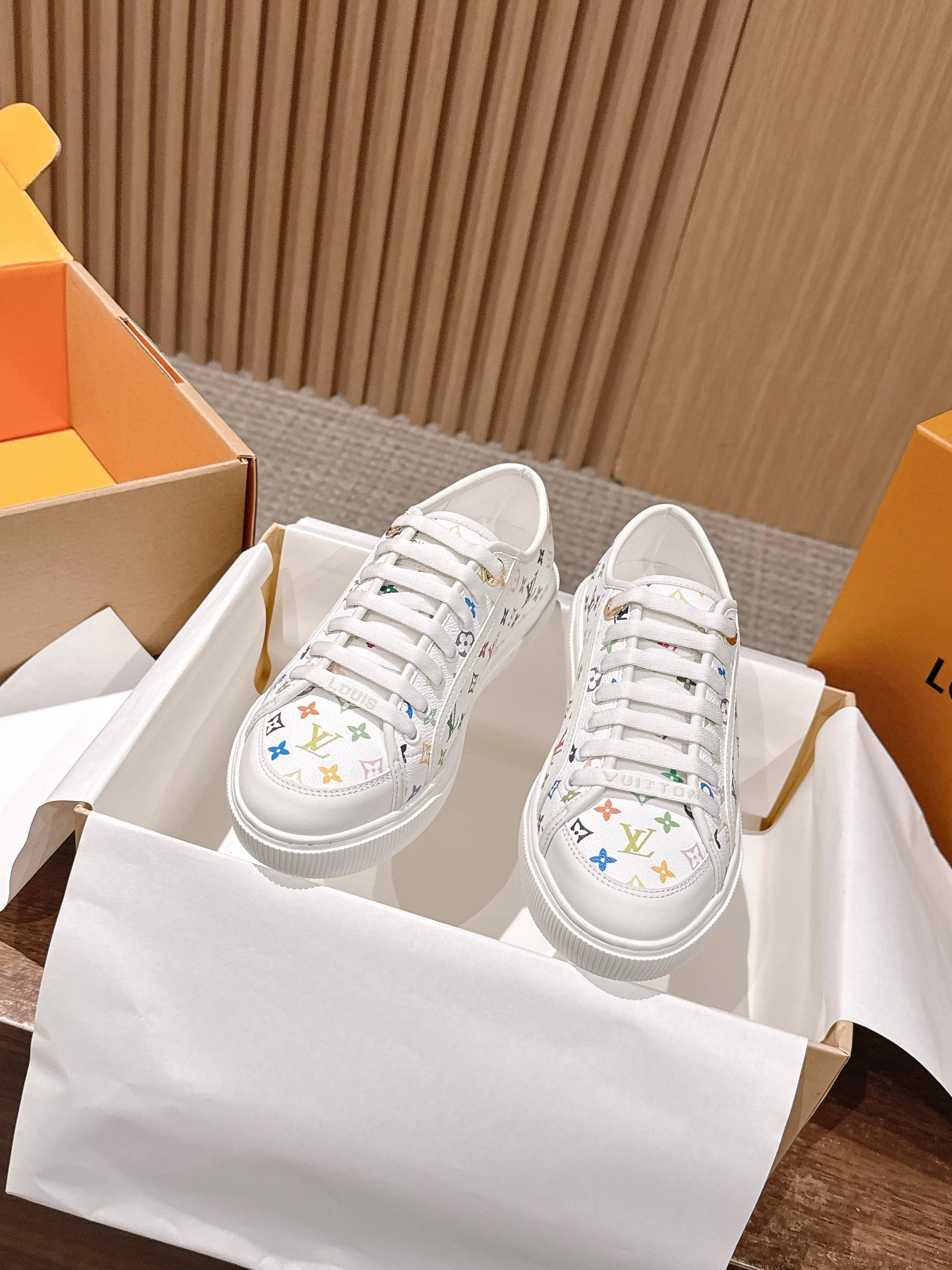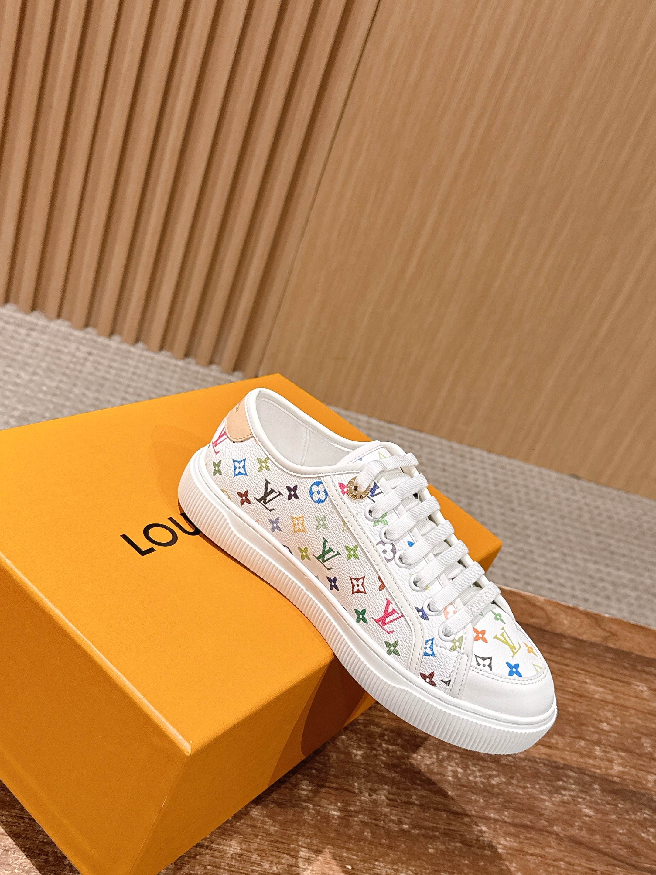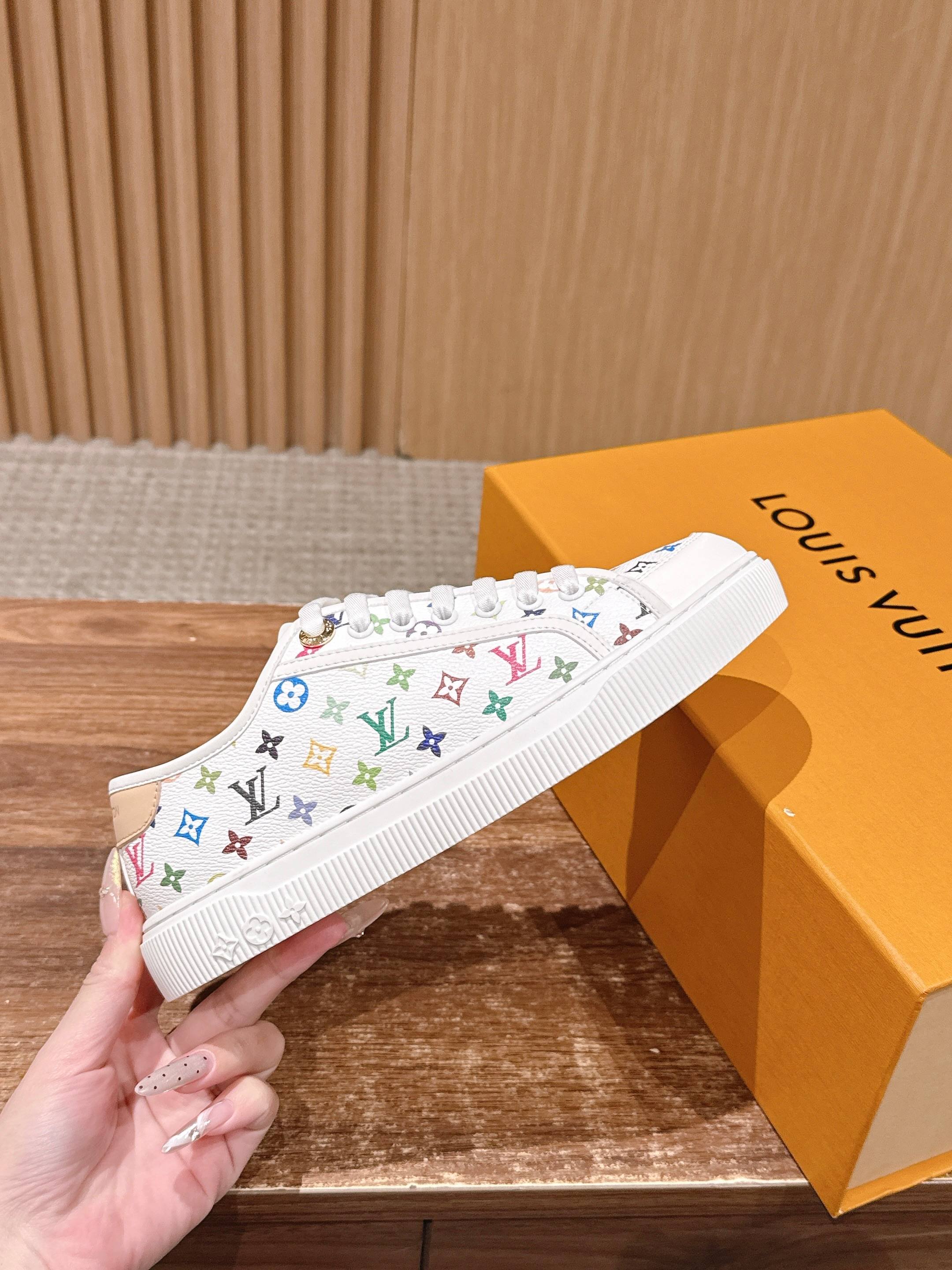Louis Vuitton LV x 村上隆联名款 春夏新款休闲运动板鞋 具有青春气息的洋溢气息,上脚非常减龄!上脚舒适轻便!颜色也非常青春!鞋面专属于lv的金色饰品穿插!让整个鞋子就更灵动起来!鞋面特殊的电印logo,具有设计感而且也超级具有辨识度!美观又大方!! 上脚超级好走路! 牛皮材质 牛皮里 原版开模大底 Size:35-39/40定制不退换