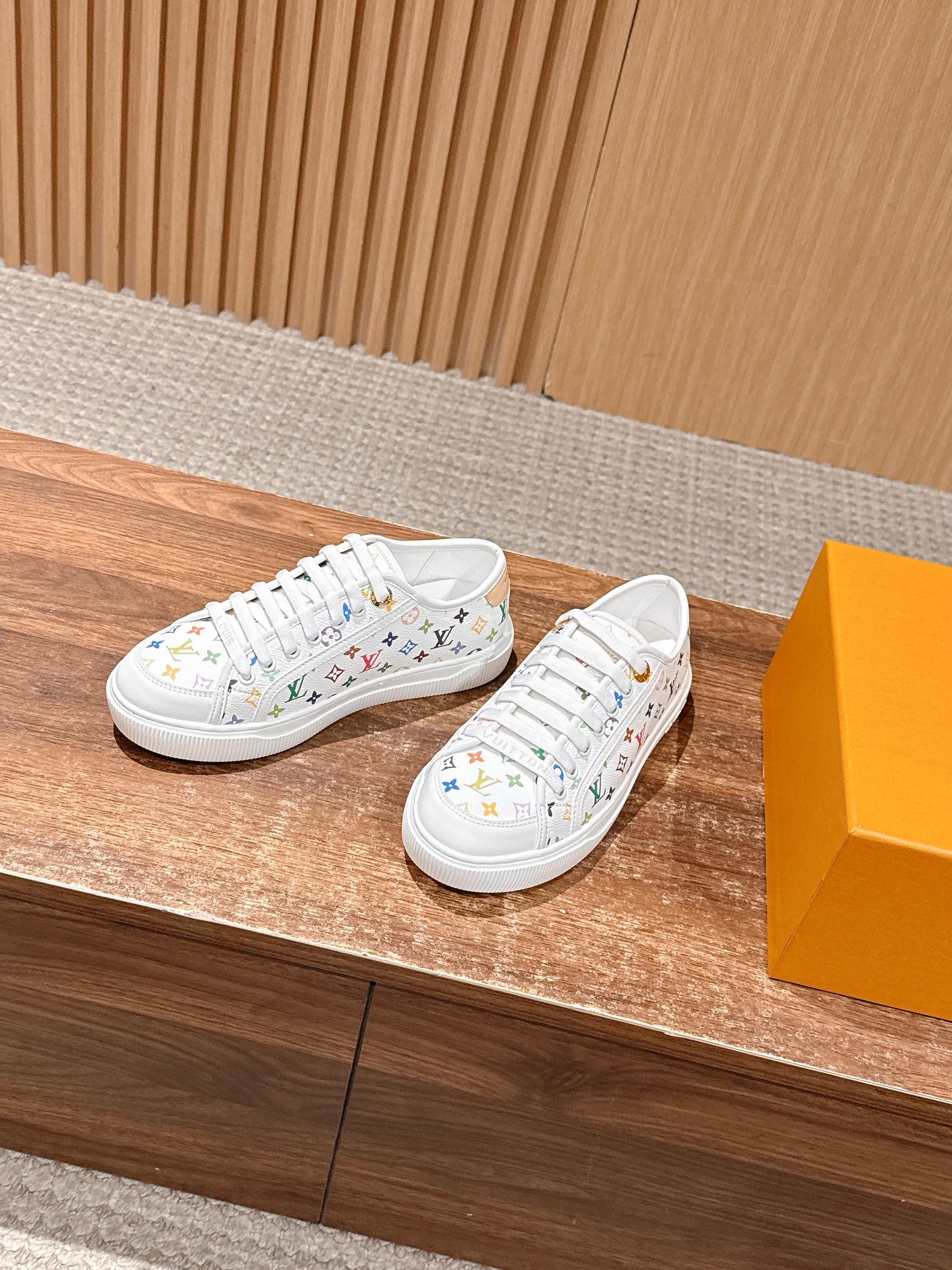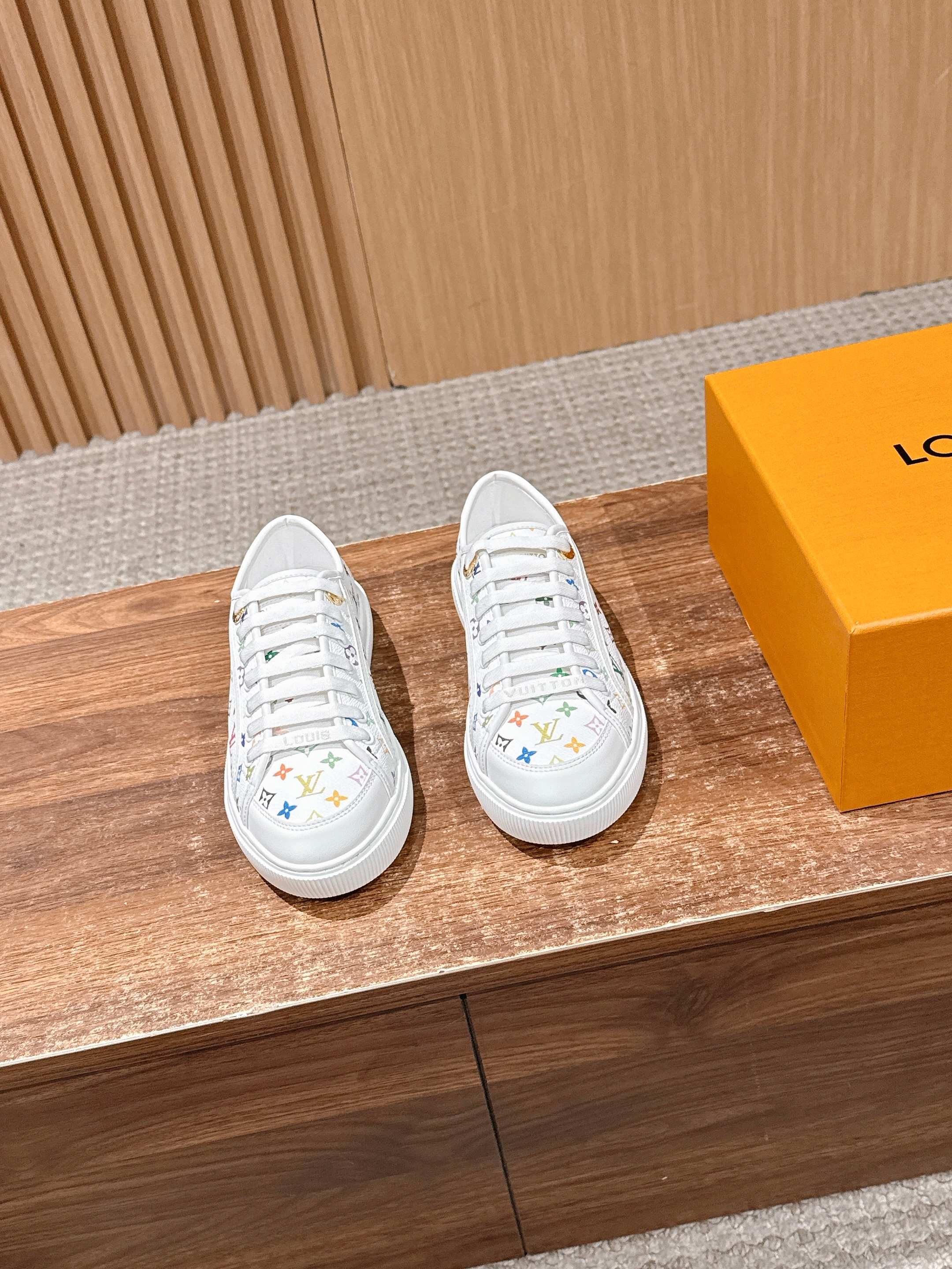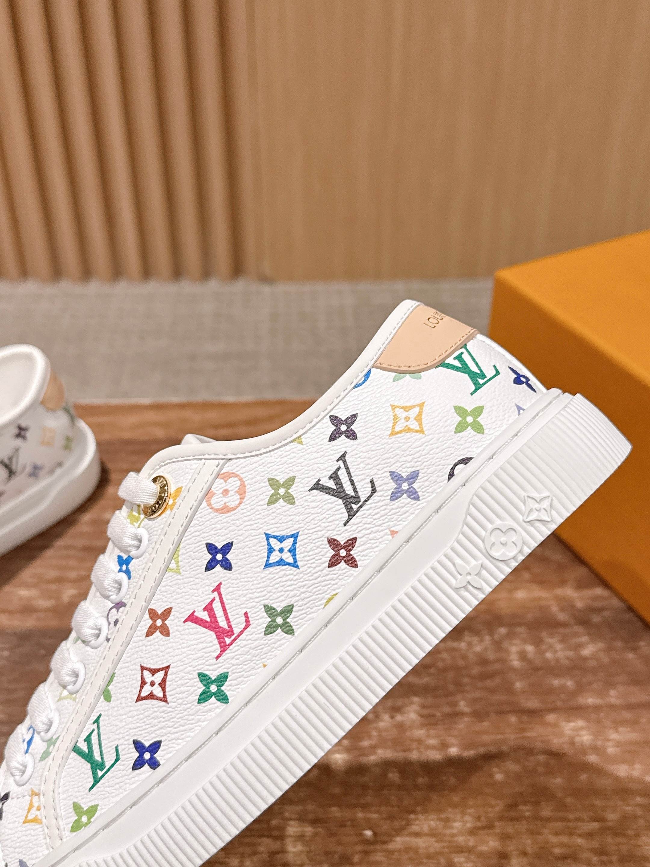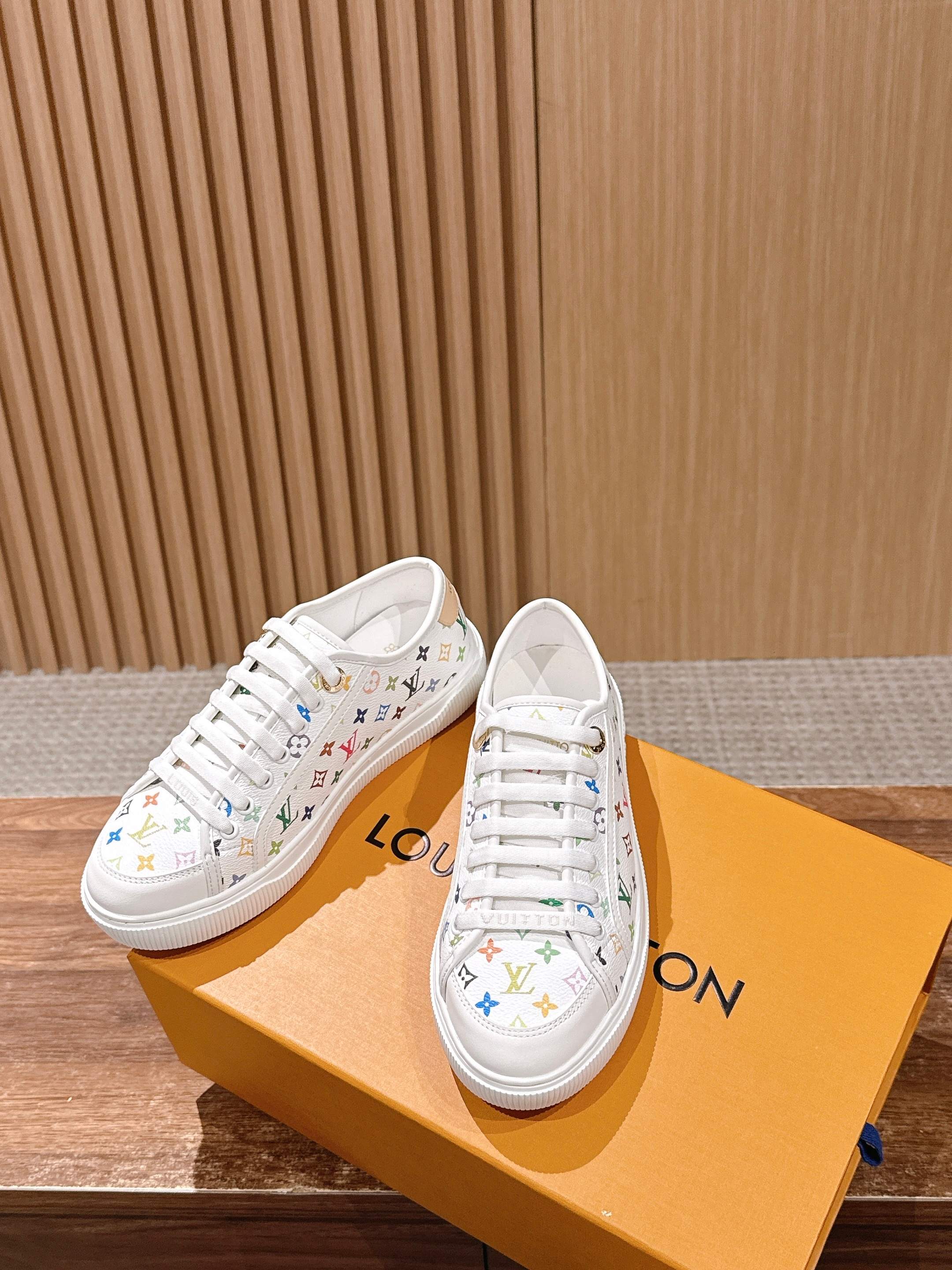 Louis Vuitton LV x 村上隆联名款 春夏新款休闲运动板鞋 具有青春气息的洋溢气息,上脚非常减龄!上脚舒适轻便!颜色也非常青春!鞋面专属于lv的金色饰品穿插!让整个鞋子就更灵动起来!鞋面特殊的电印logo,具有设计感而且也超级具有辨识度!美观又大方!! 上脚超级好走路! 牛皮材质 牛皮里 原版开模大底 Size:35-39/40定制不退换