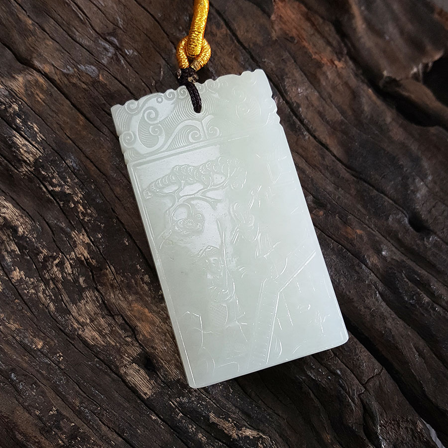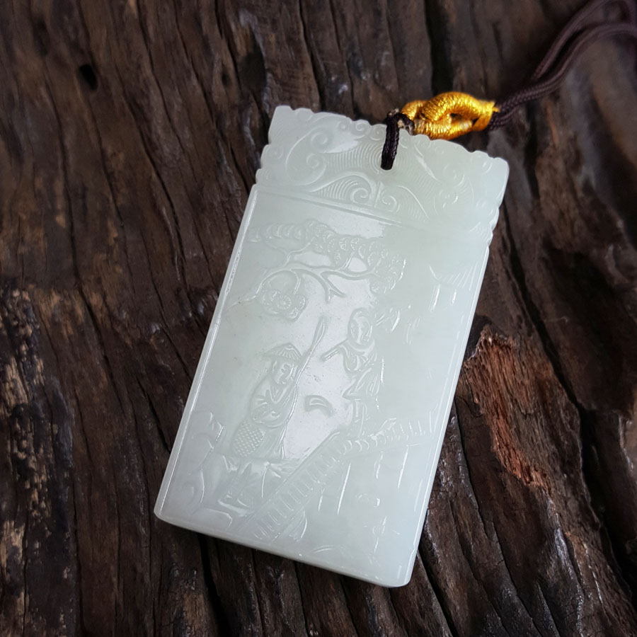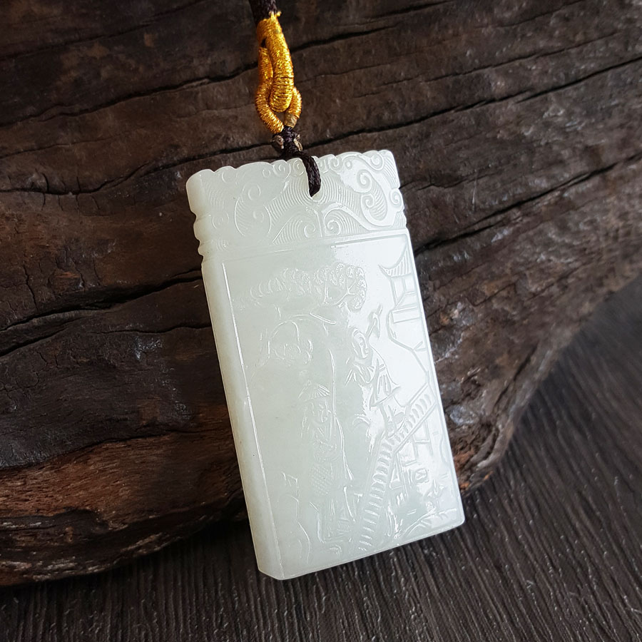 名称 | 天然新疆料油润度佳市井图案和田玉吊坠项链 |