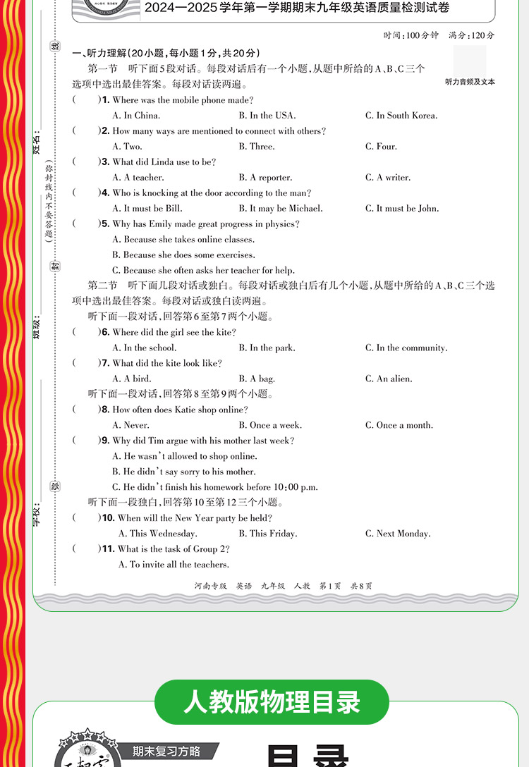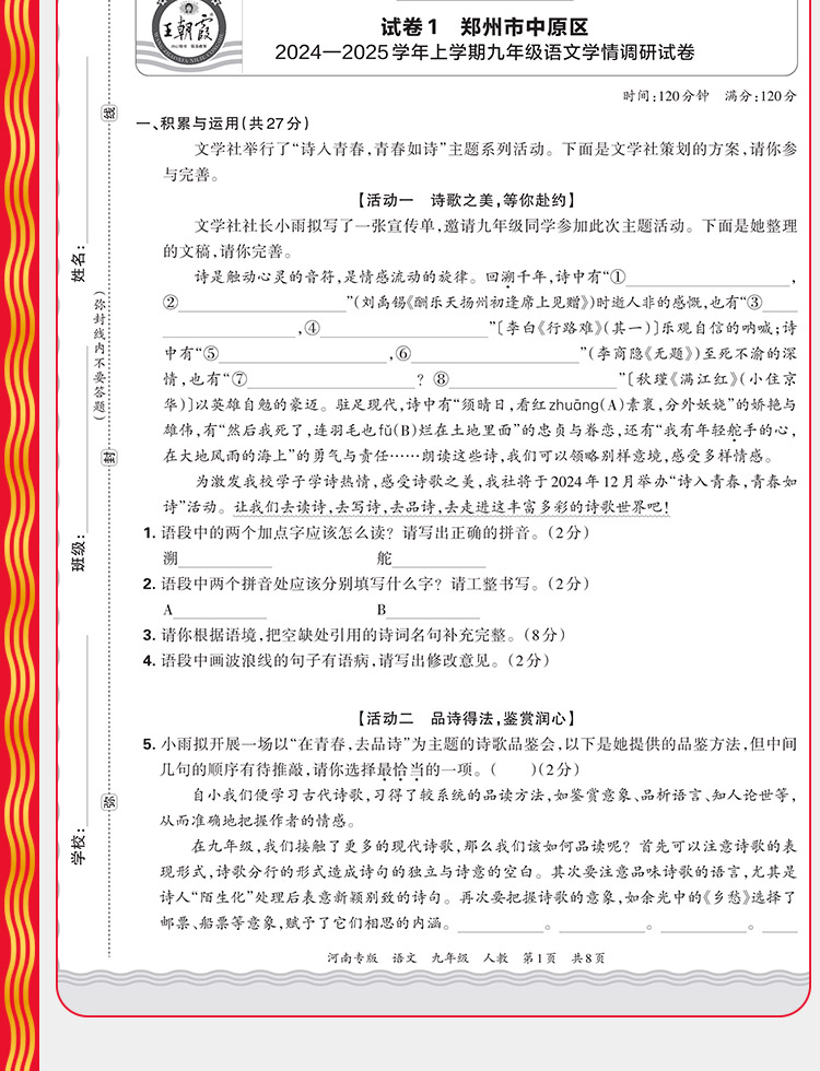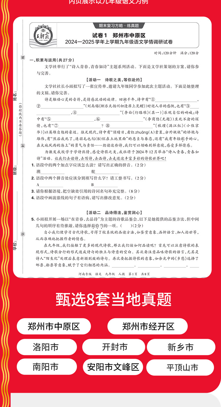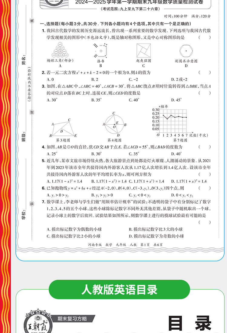 【河南专版】2025秋季上册王朝霞各地期末试卷精选9年级上册语数英期末冲刺总复习试卷