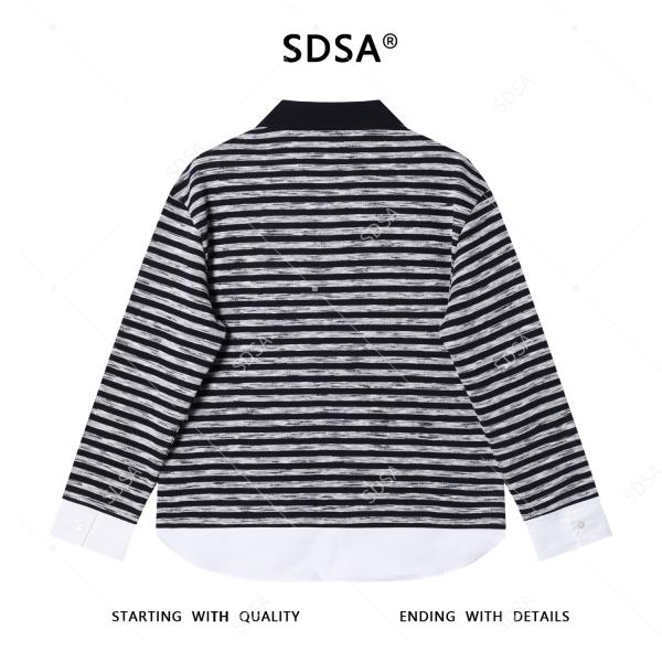 8583653SDSA男士秋冬新款痞帅男装韩版撞色条纹polo衫拼接下摆设计百搭