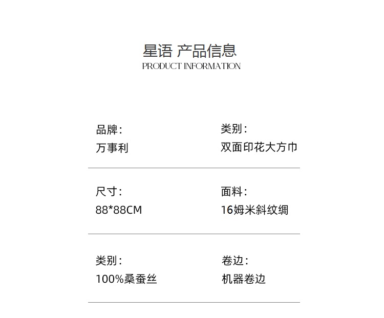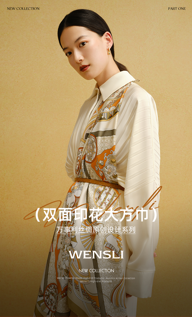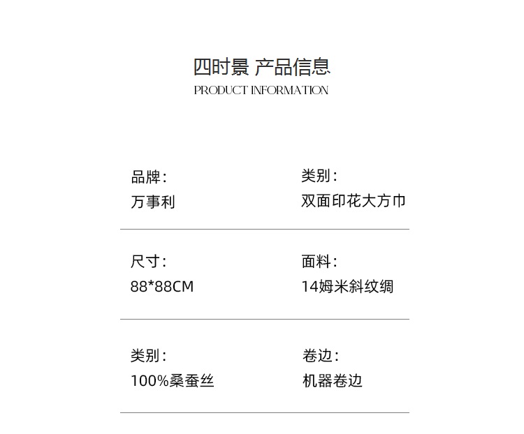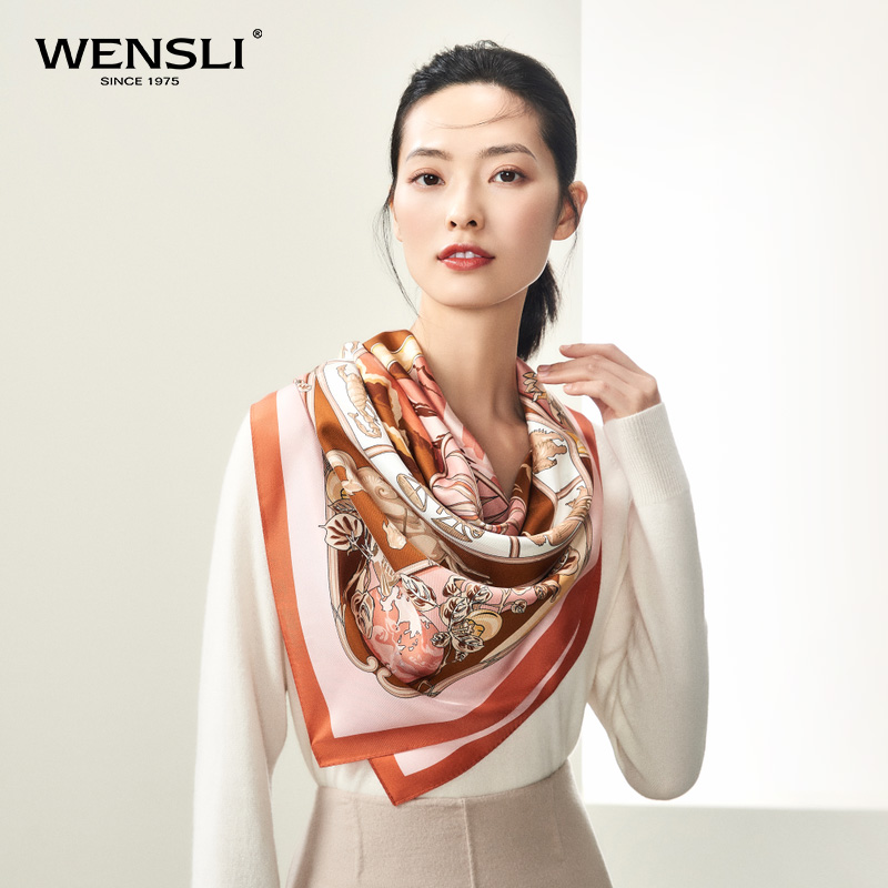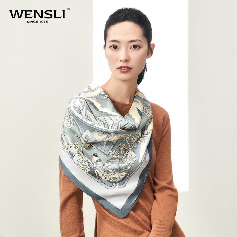 万事利“四时景”88厘米双面印花真丝大方巾