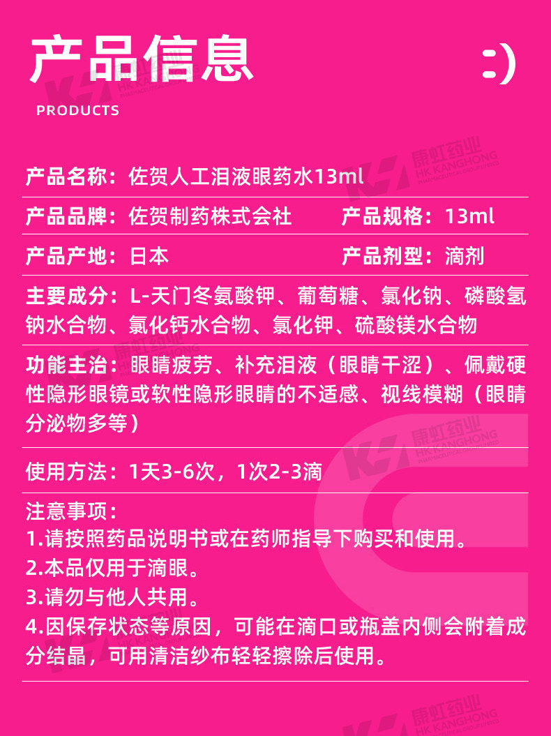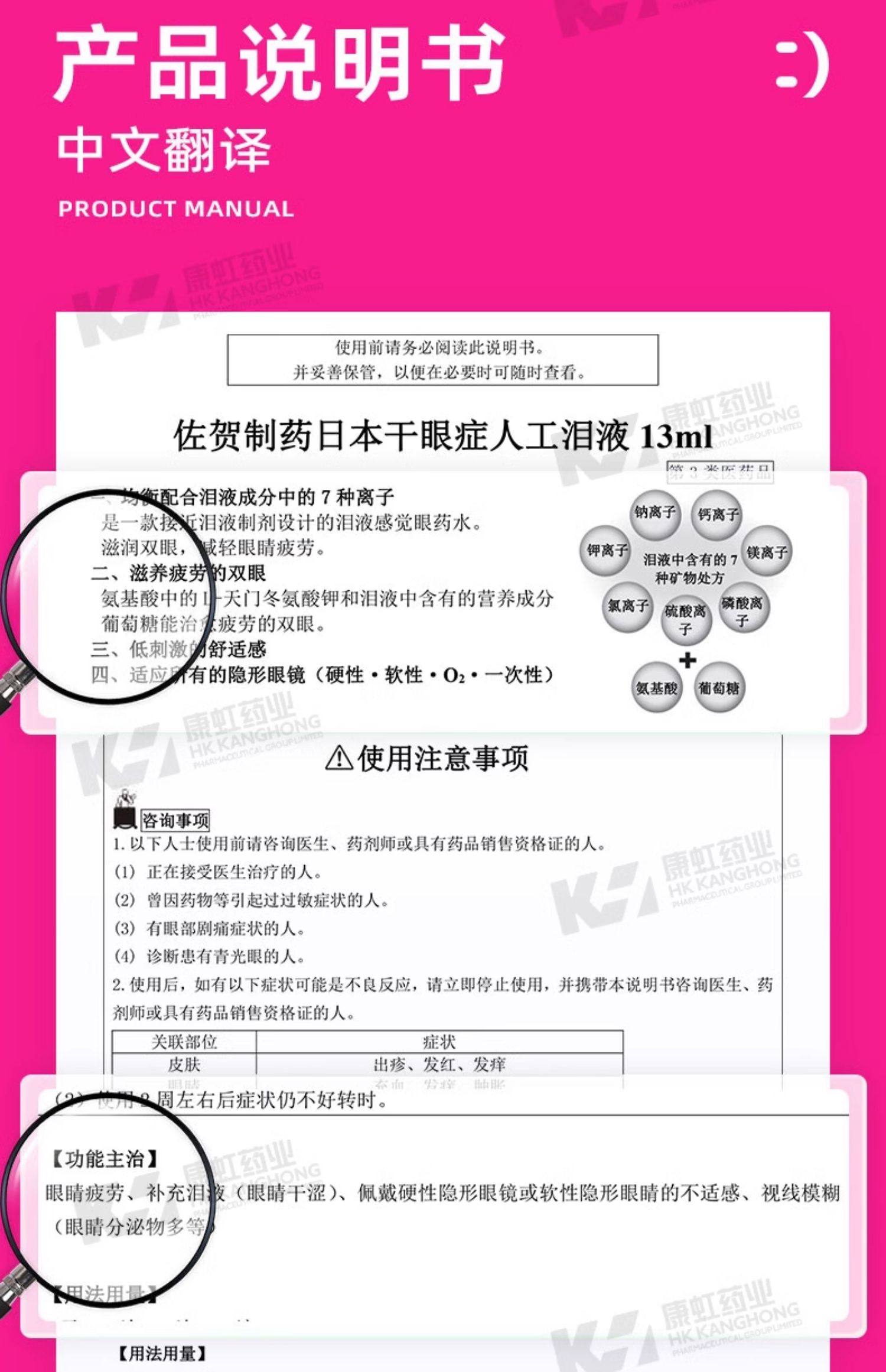 日本佐贺干眼症人工泪液13ml缓解眼睛疲劳眼干眼涩止痒消炎滴眼液