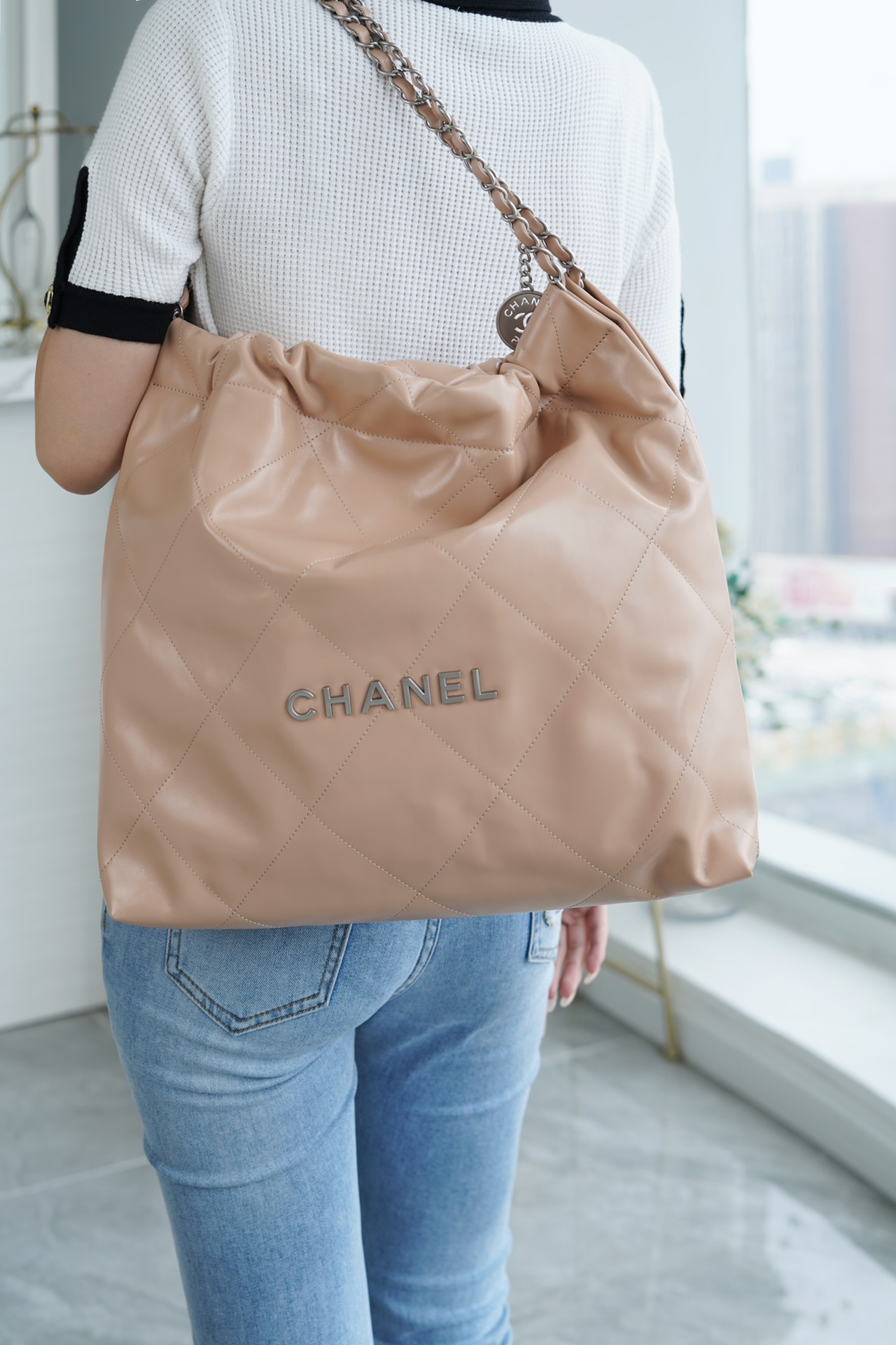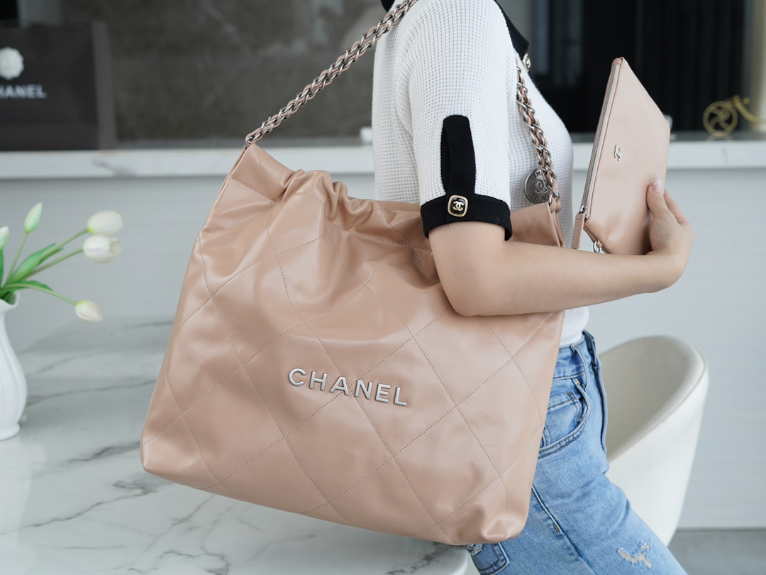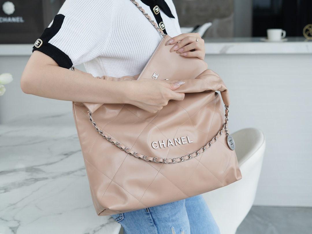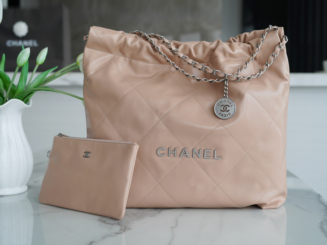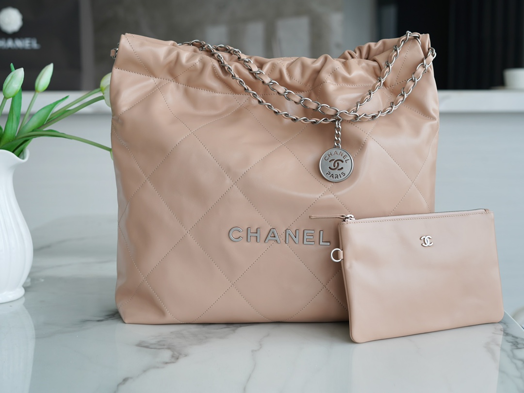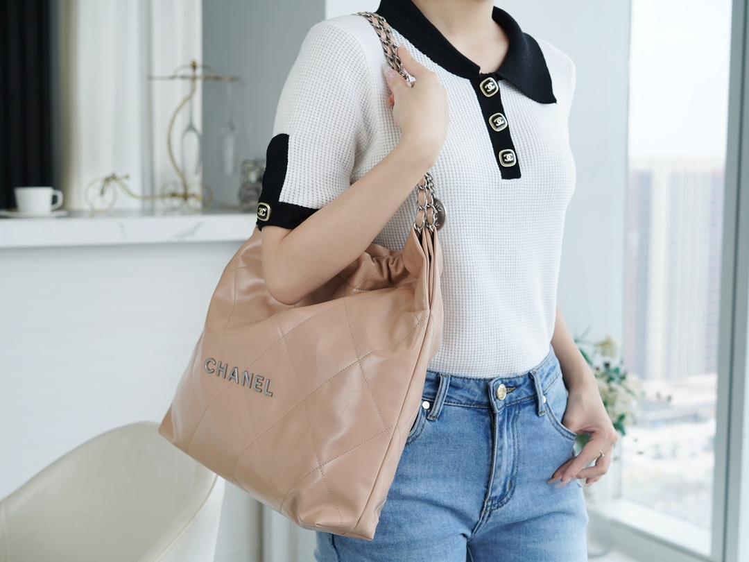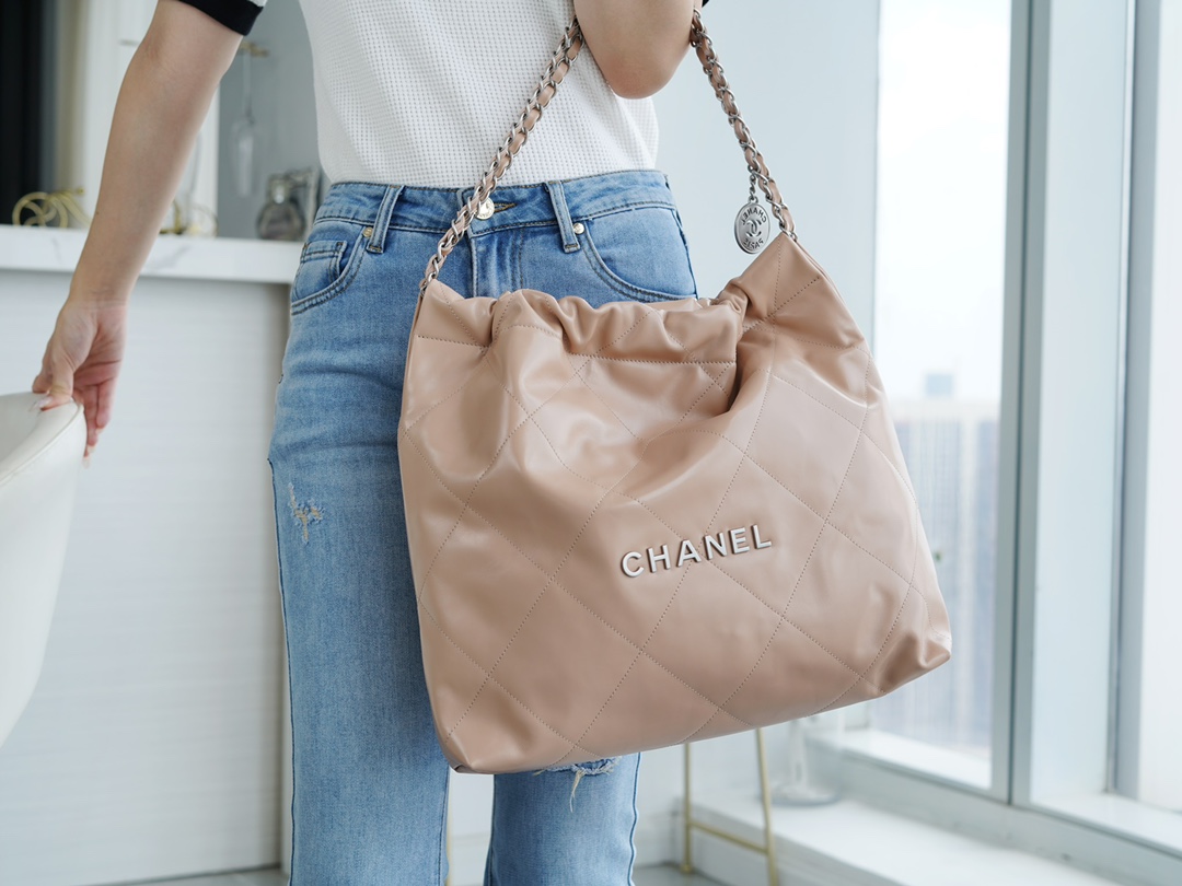 香奶奶 22bag垃圾袋手袋 正品尾皮 奶茶杏银扣 中号