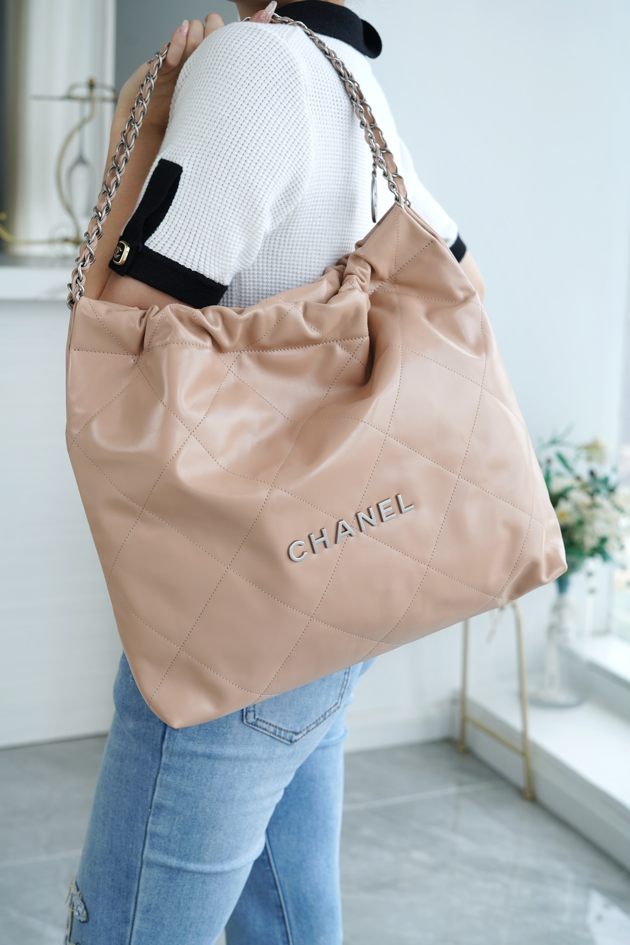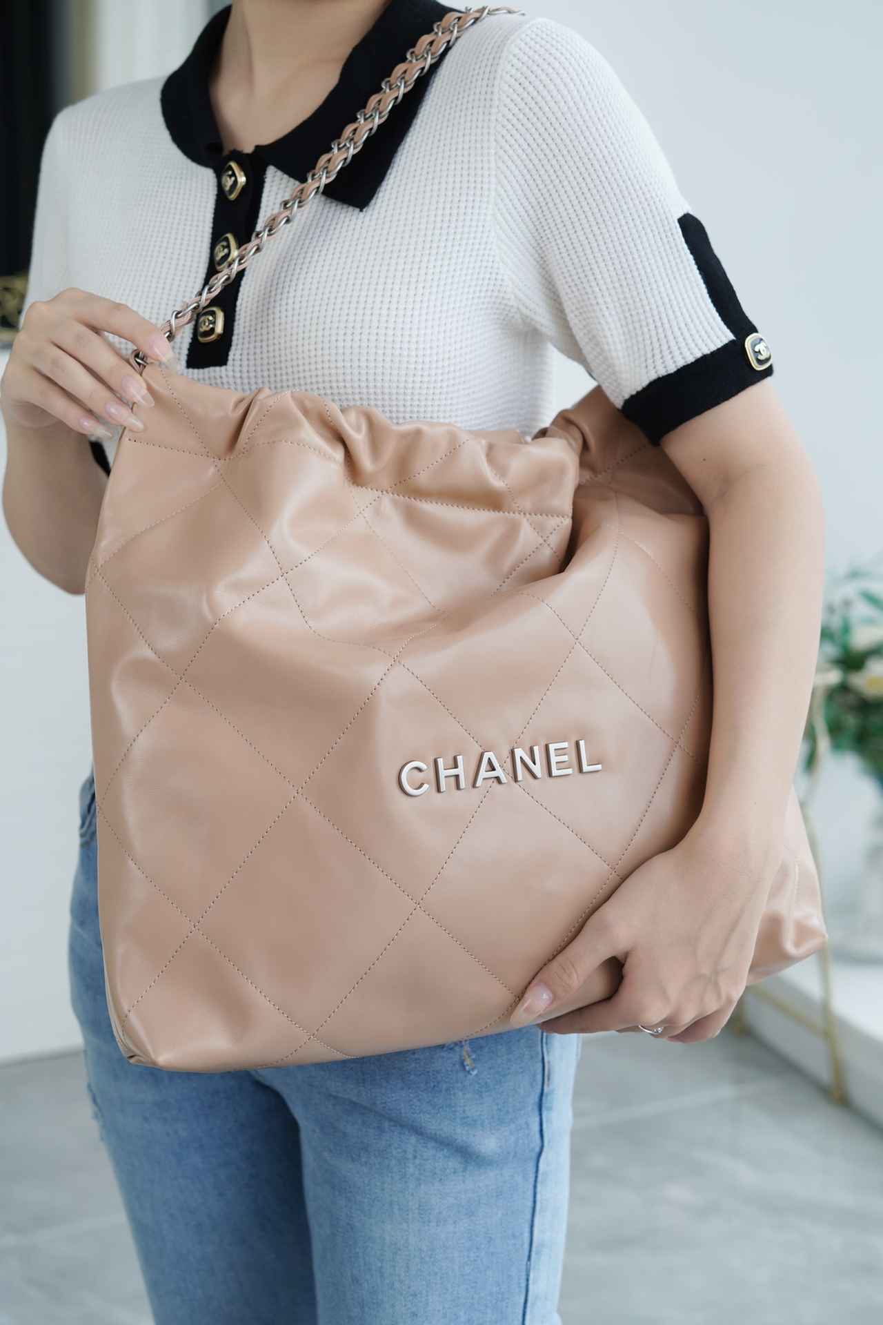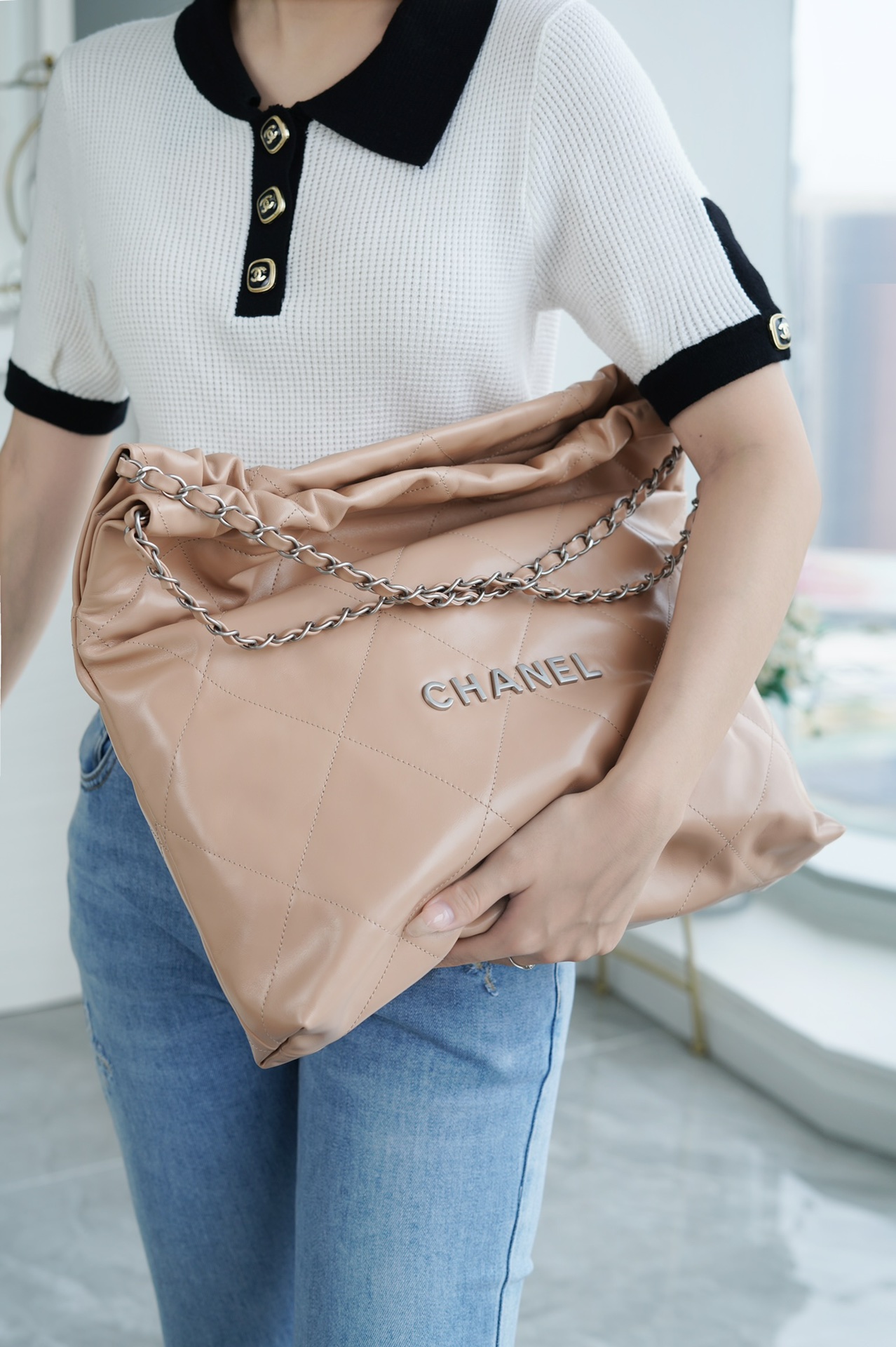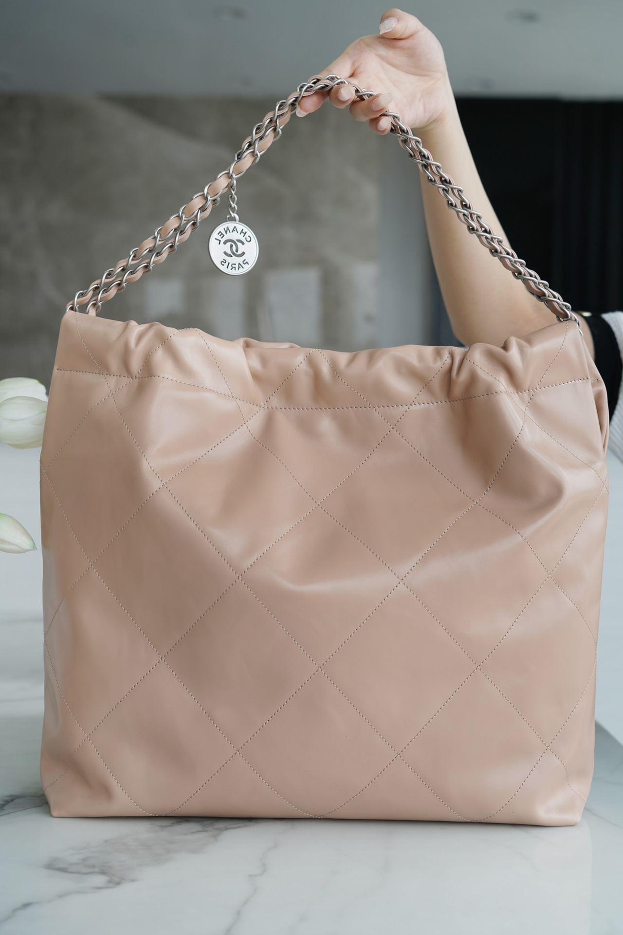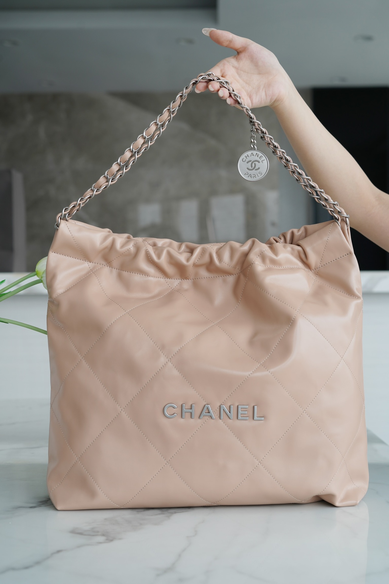 香奶奶 22bag垃圾袋手袋 正品尾皮 奶茶杏银扣 中号