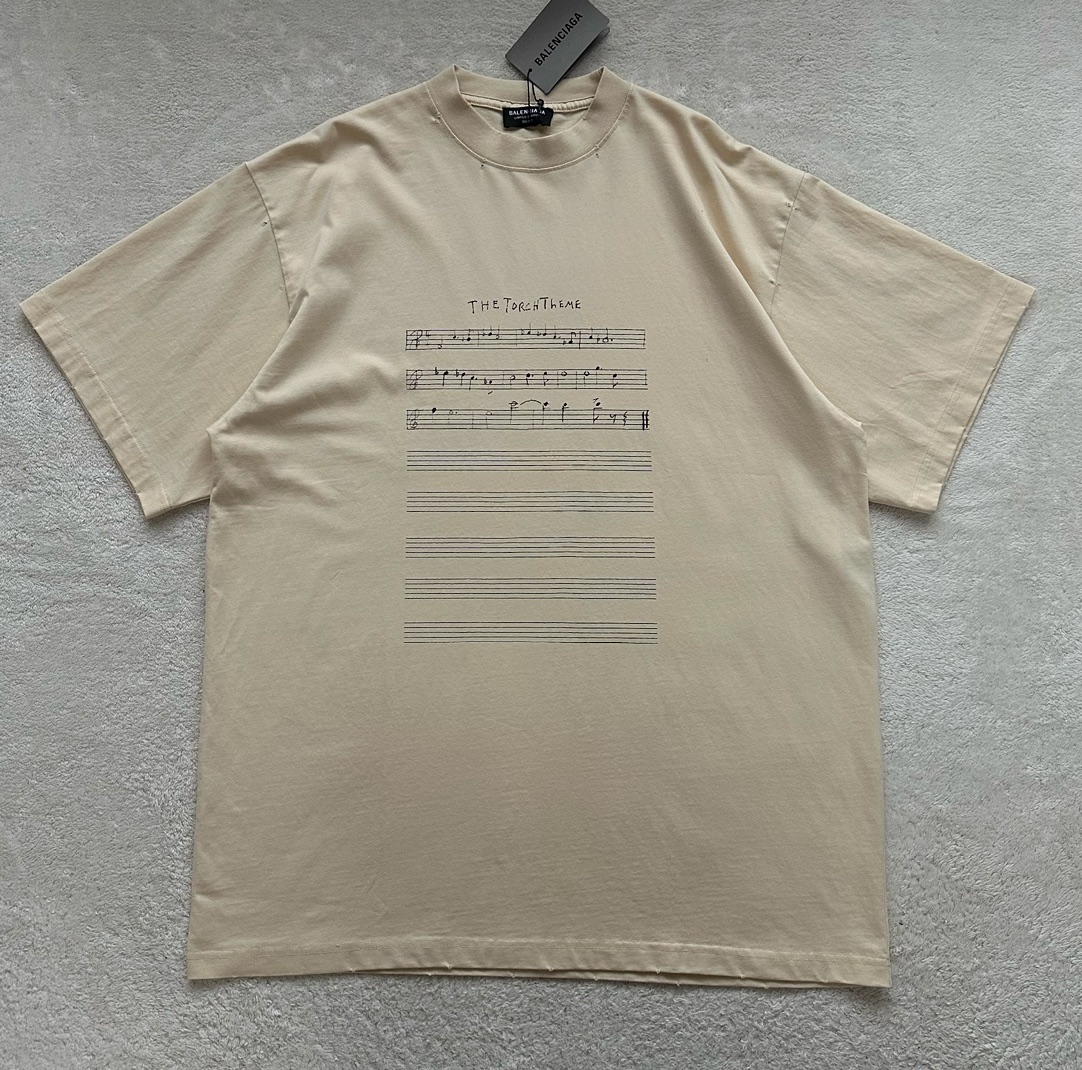 B家 做旧破洞 音符短袖(JN)