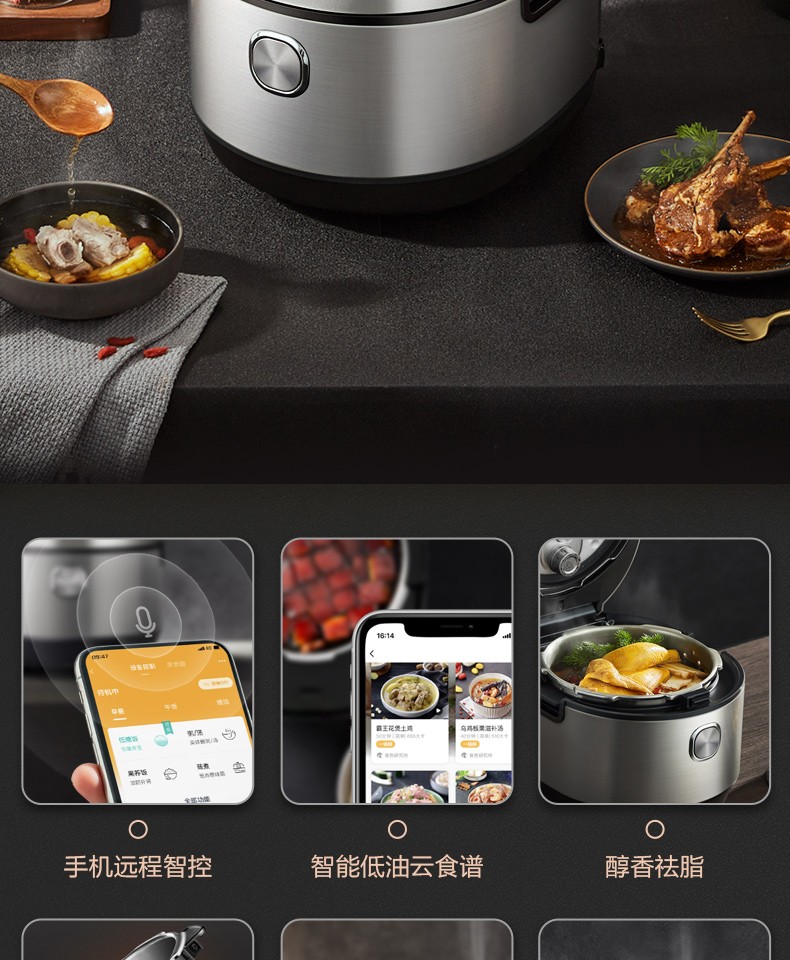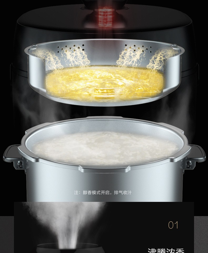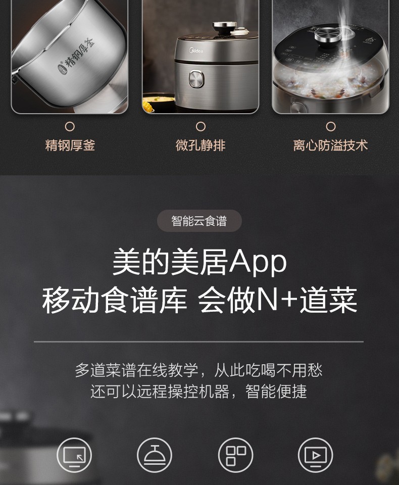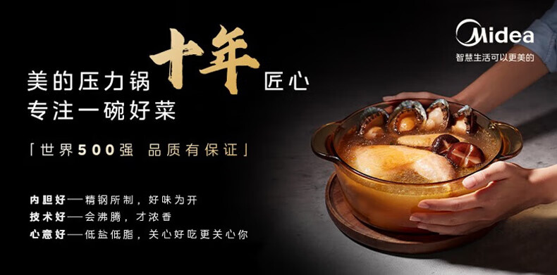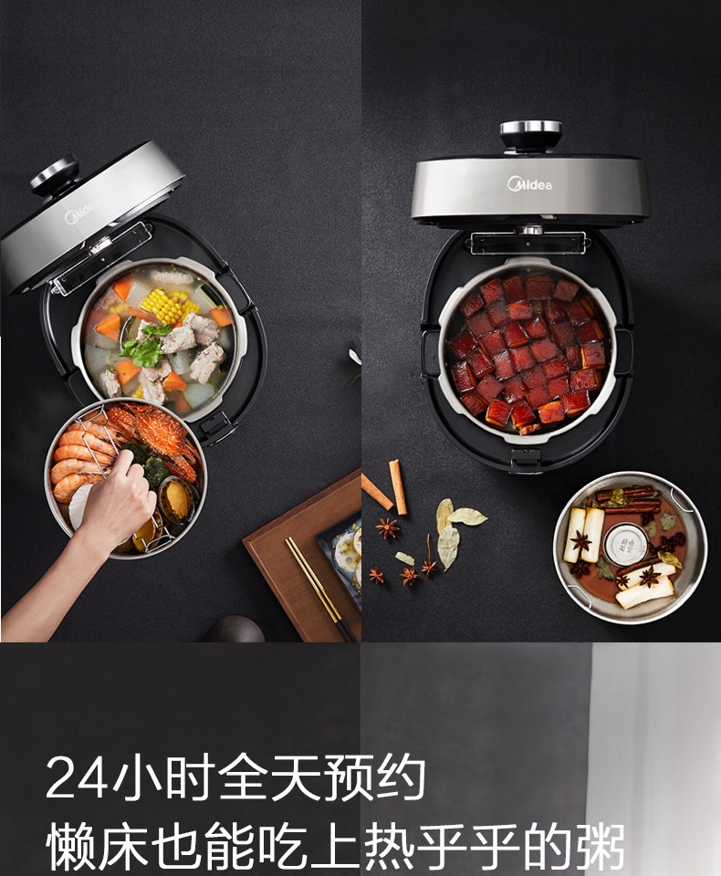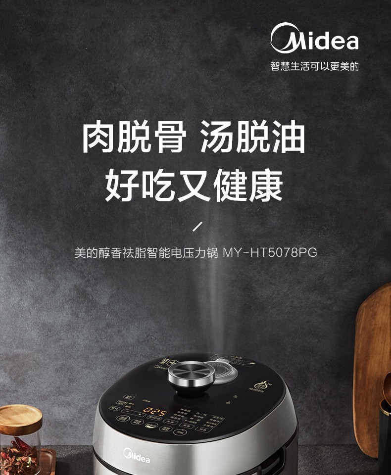 美的(Midea) 电压力锅新款精钢厚釜内胆家用智能全自动压力锅5L压力锅高压锅 HT5078PG(4-10人)