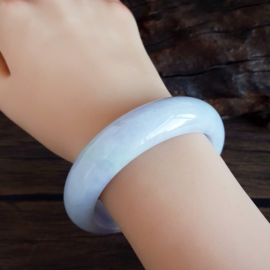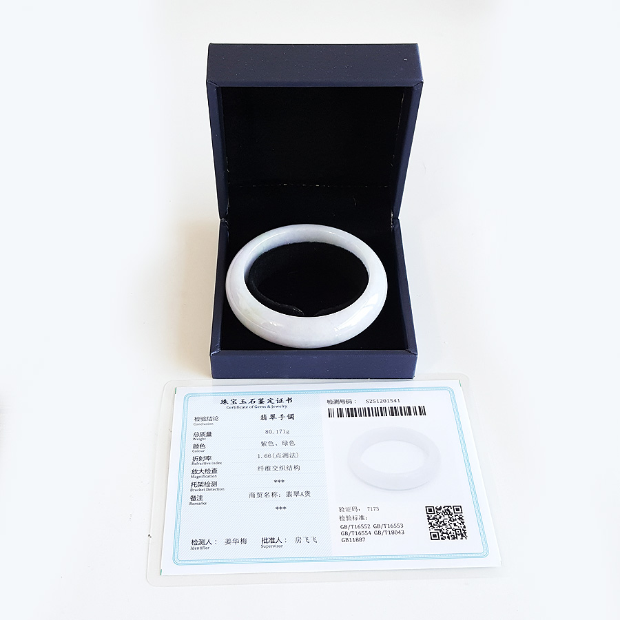 名称 | 天然正桩细腻糯种春带彩紫罗兰飘绿57.5号翡翠手镯 |