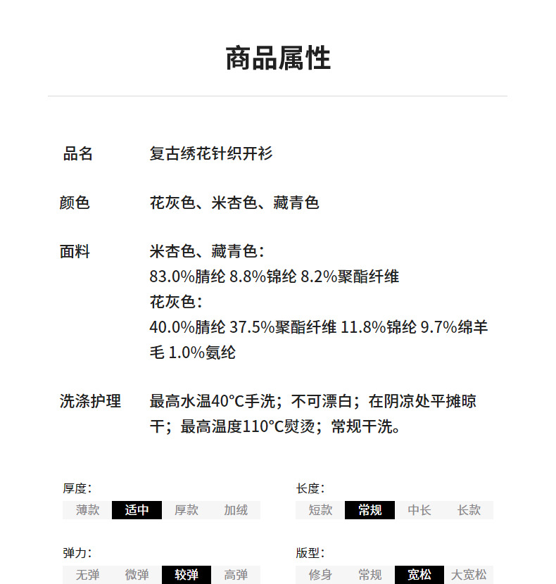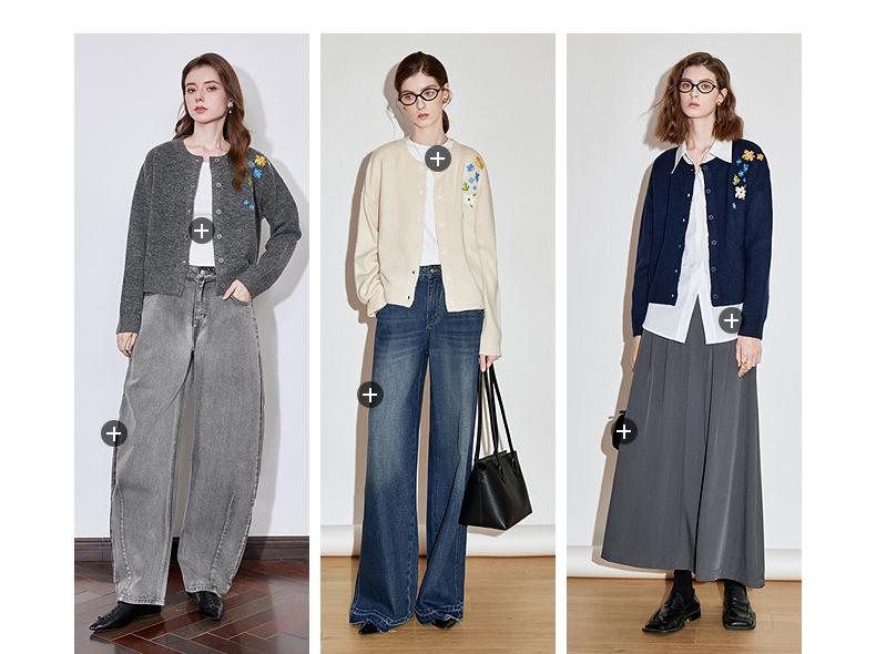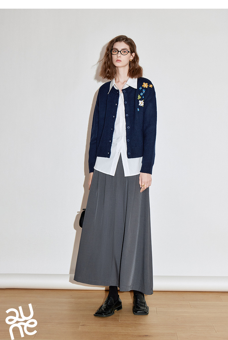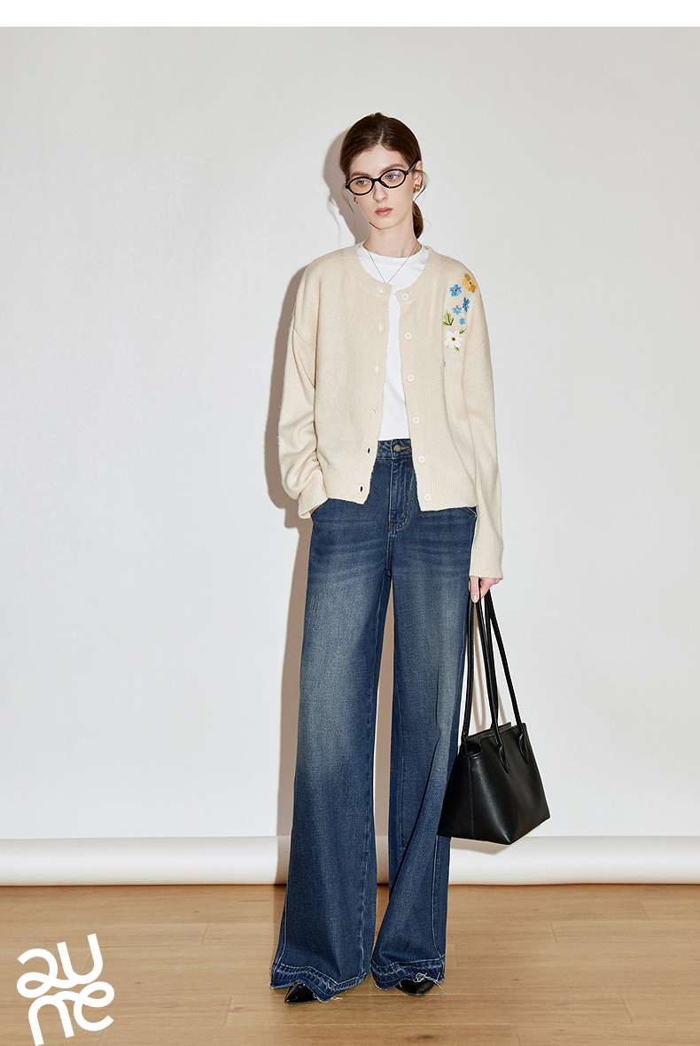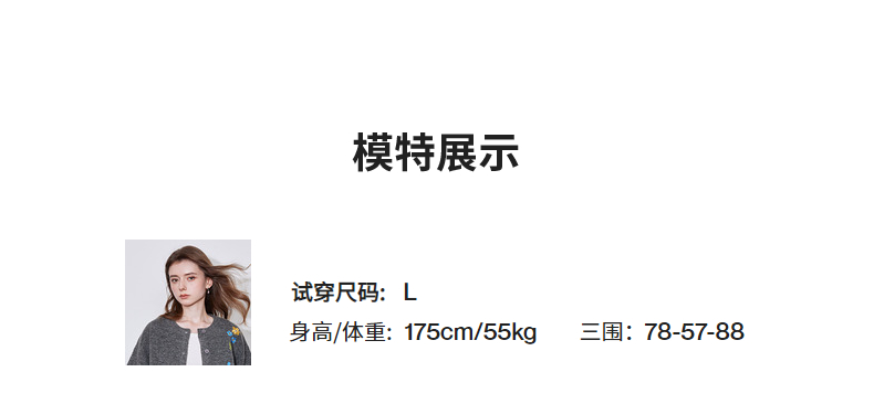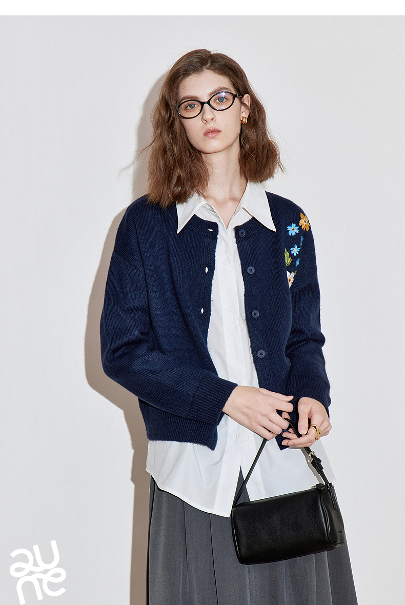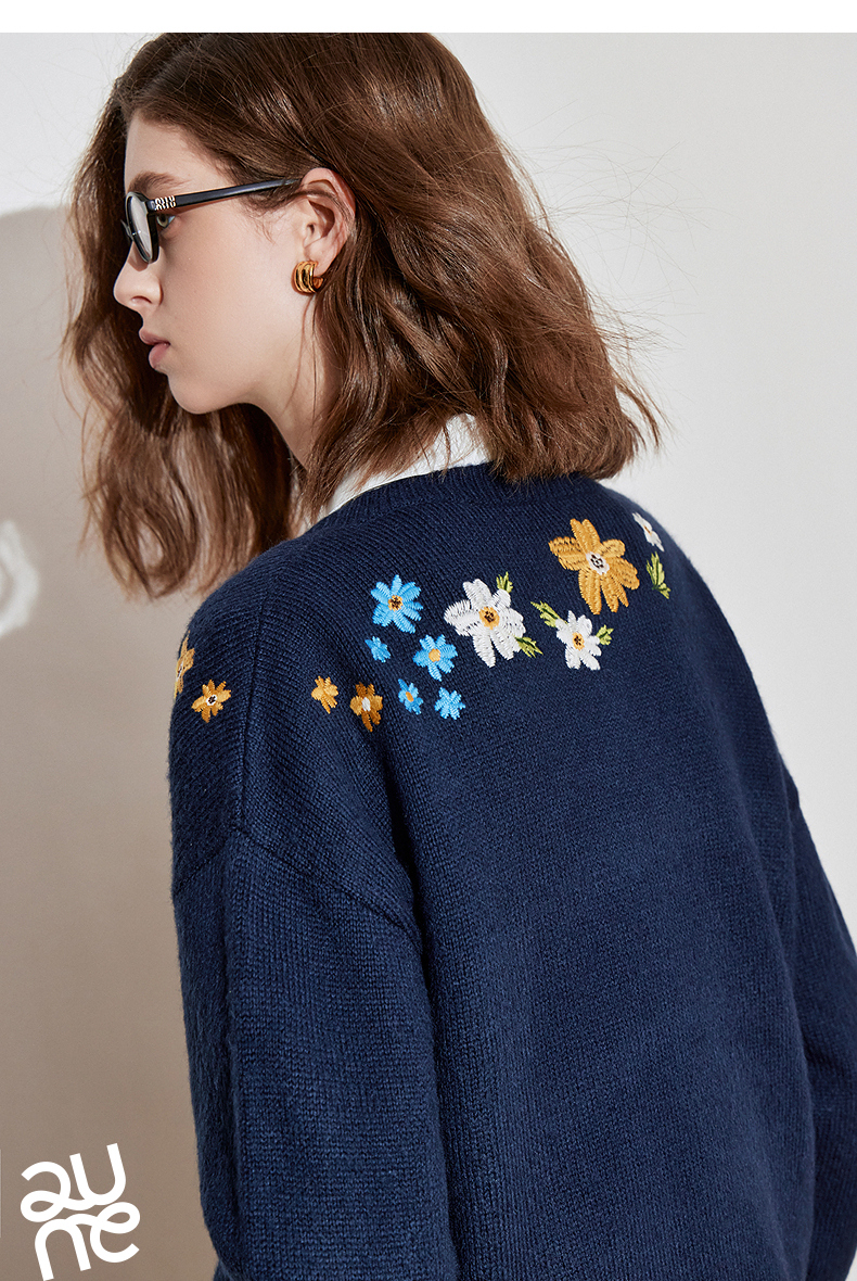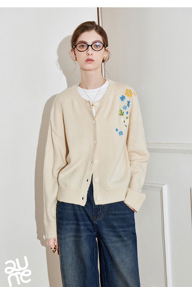 初语 花灰色毛衣开衫女 花朵绣花保暖针织衫小外套外搭