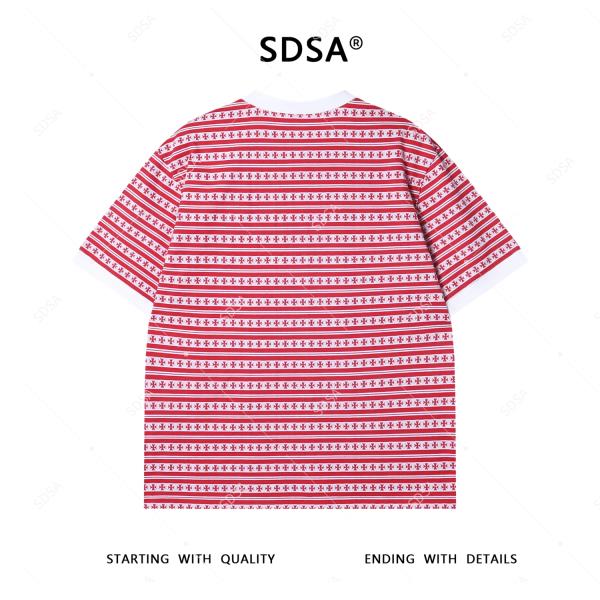 T3706夏季高级感新款男士十字条纹半纽扣短袖T恤舒适百搭潮牌圆领上衣