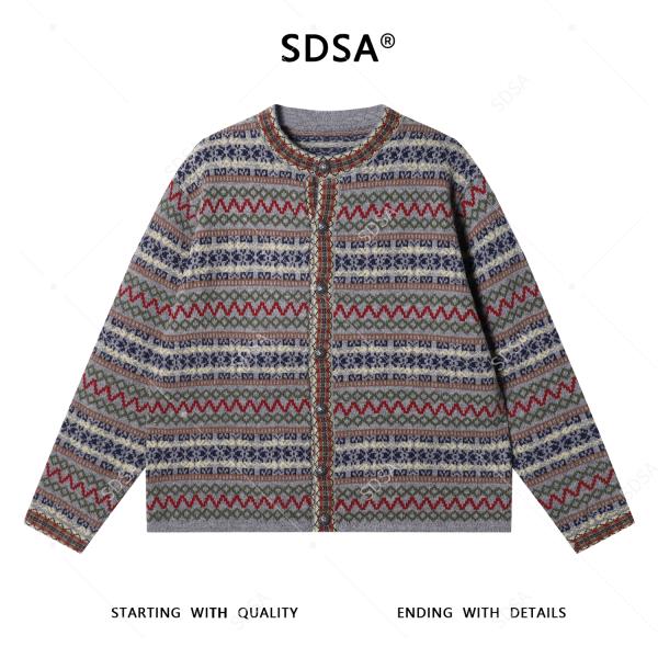 72630SDSA秋冬新款痞帅男装潮牌民族风提花条纹纽扣开衫圆领毛衣针织衫