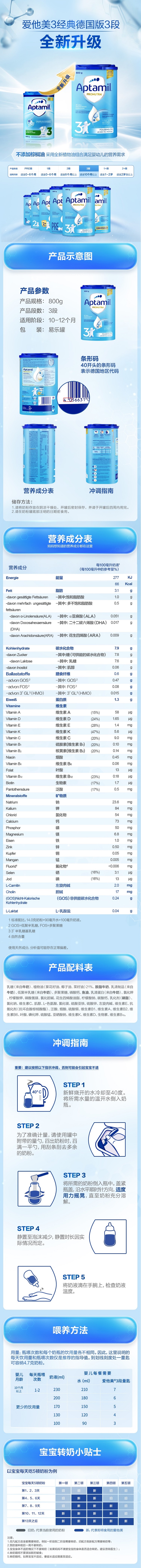 【品牌直供】德国爱他美经典版较大婴儿配方奶粉3段 10个月以上 800g【超过6罐分开下单】