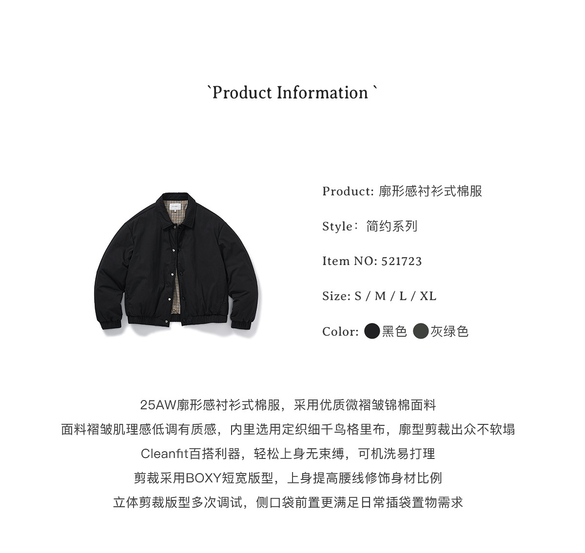 714street廓形翻领衬衫外套男2025秋冬boxy版型棉服cleanfit夹克