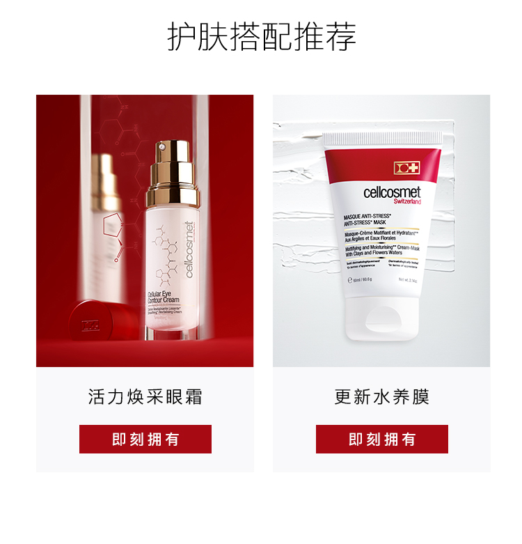 - 自1987年创立之初, Cellcosmet瑞妍便展现出瑞士化妆品科学的卓越性,并稳稳确立了该领域的黄金标准。位于瑞士的塞利普实验中心已在日内瓦湖畔潜心研发四十余年,致力于不断更新焕肤配方的功效。