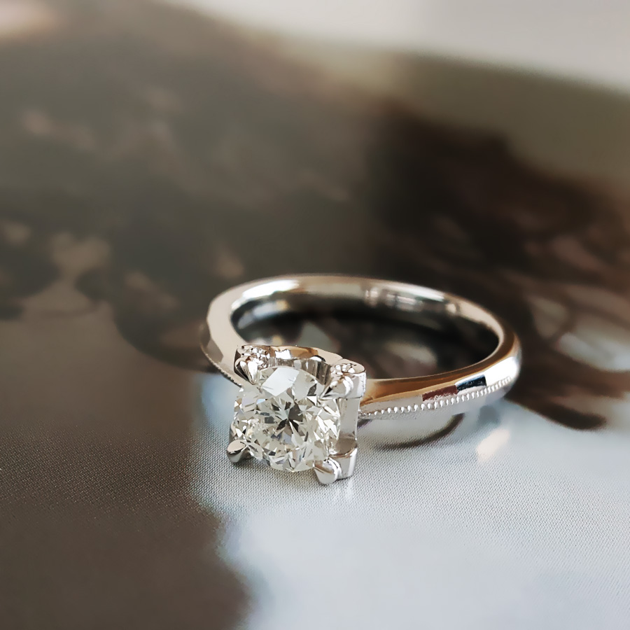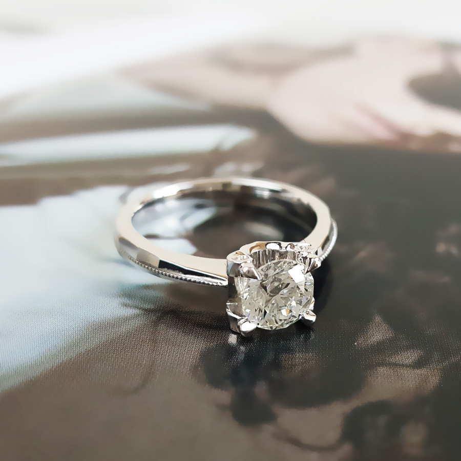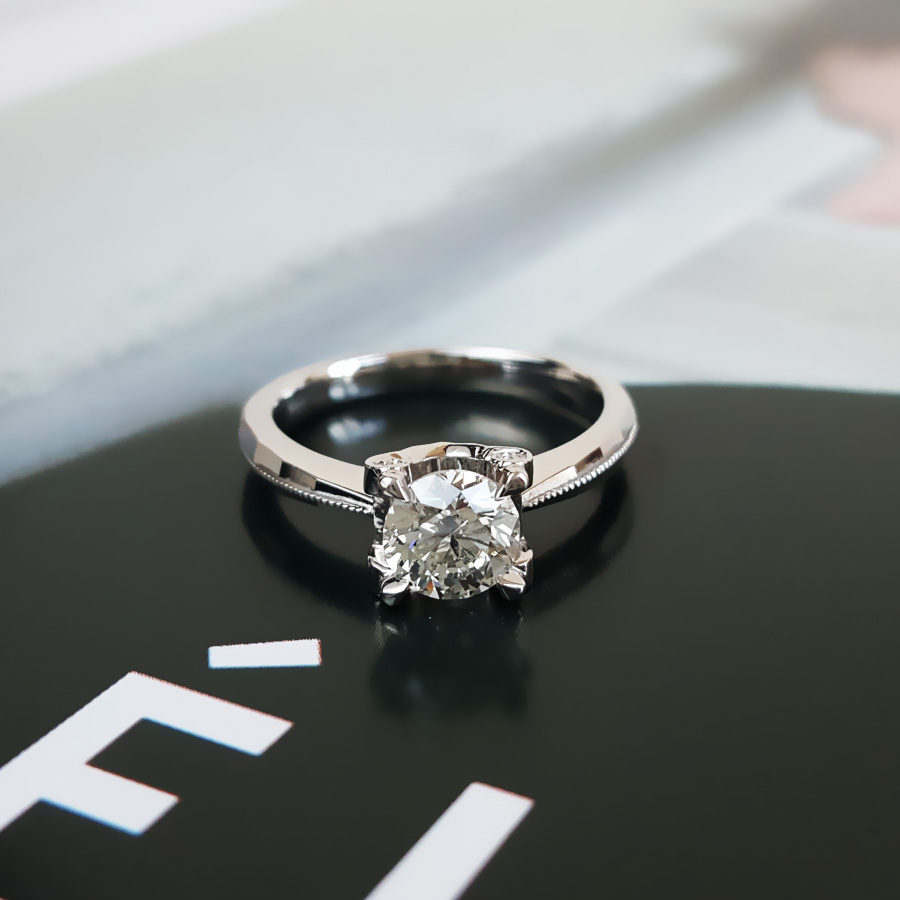 款式 | AU750白金经典简约牛头款0.801克拉钻石戒指 |