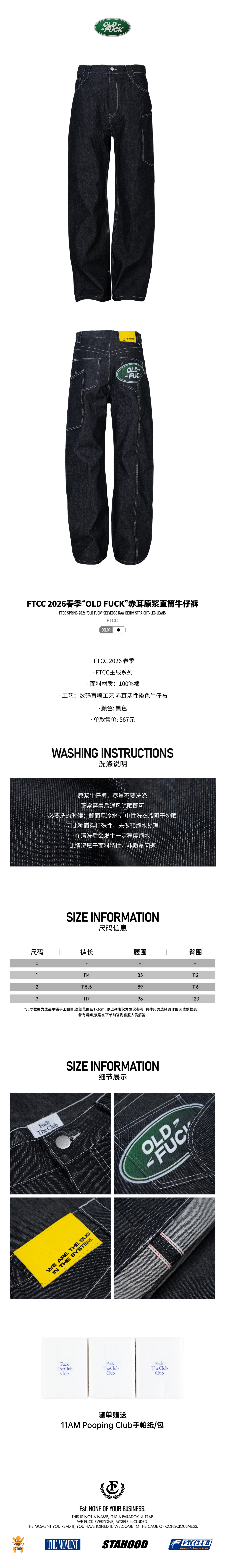 FTCC2026春季“OLD FUCK”赤耳原浆直筒牛仔裤