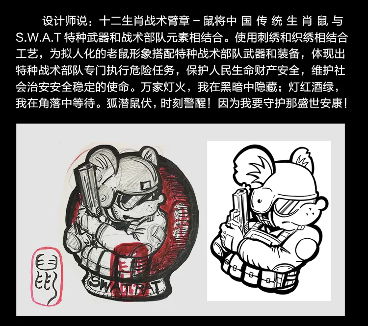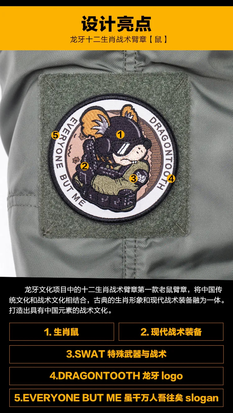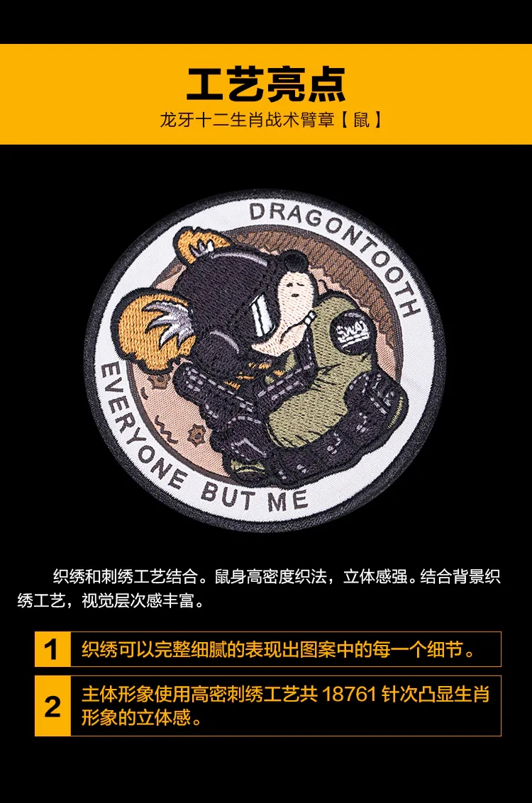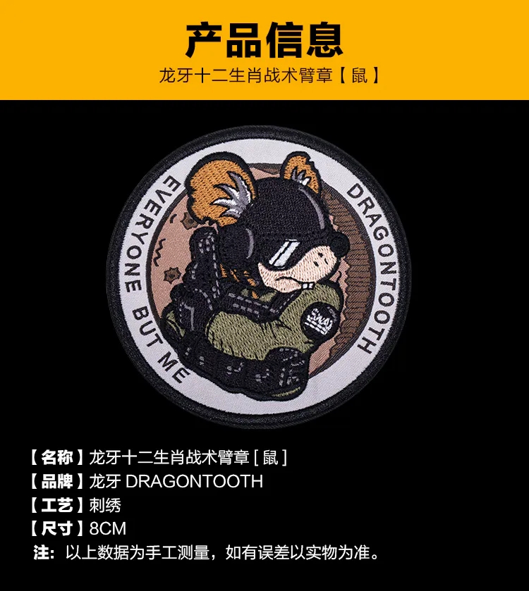 十二生肖战术臂章(鼠)魔术贴章中国元素图案刺绣战术装备