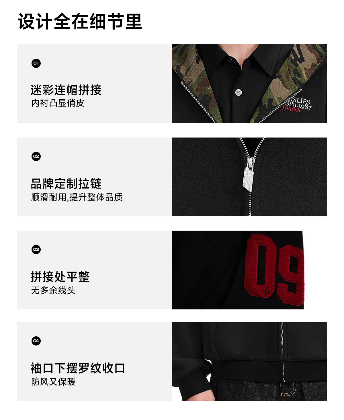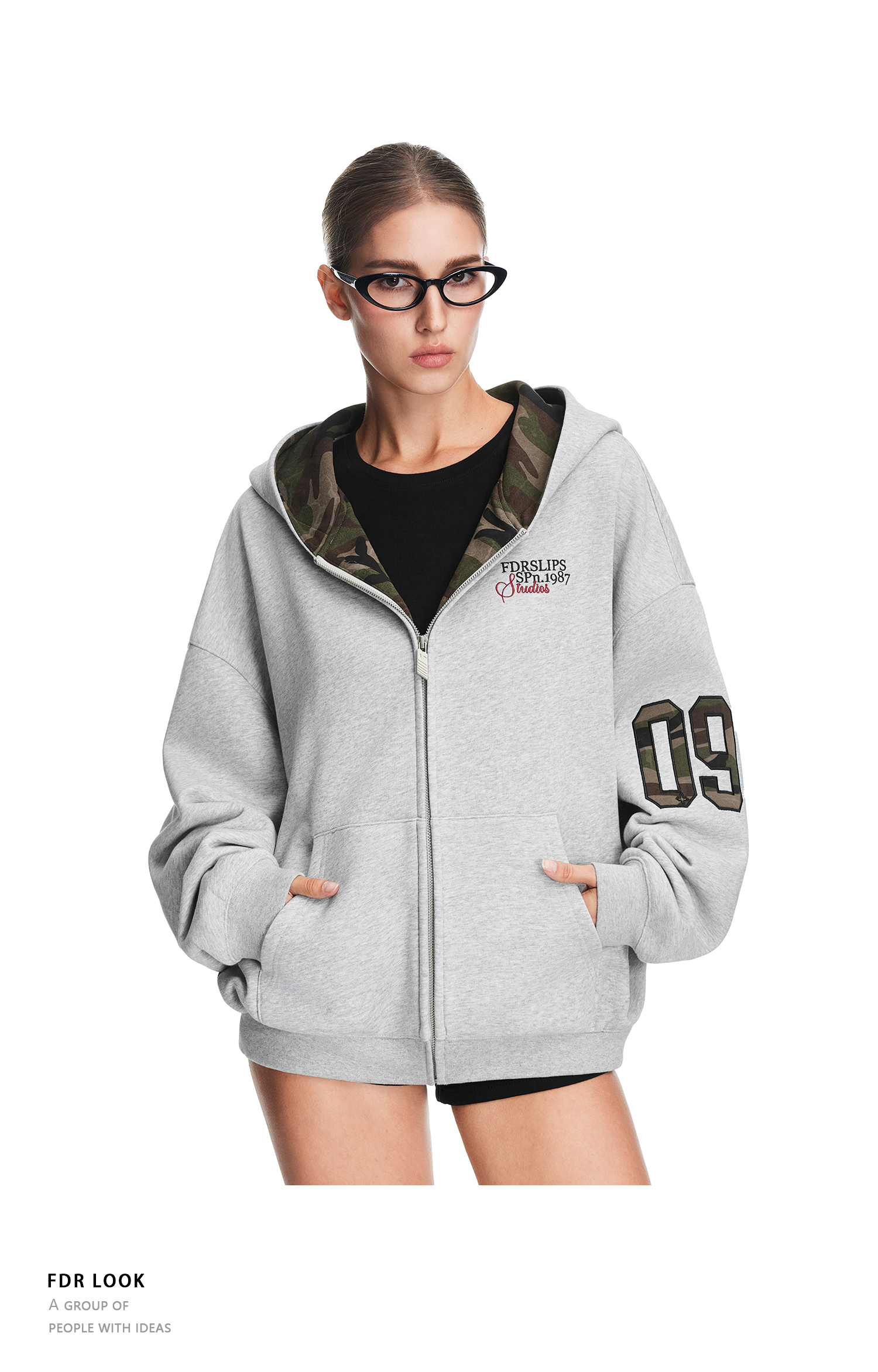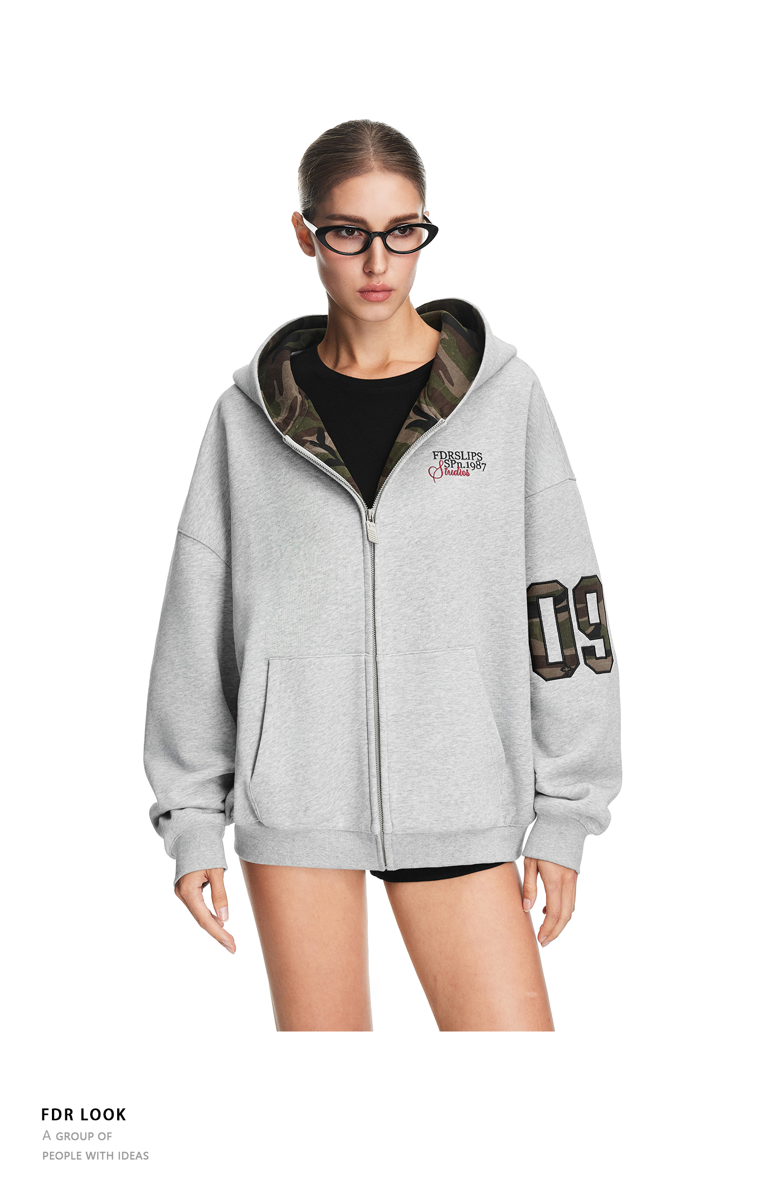 FDR官方店 拼接迷彩拉链连帽卫衣外套男女秋季宽松情侣装帽衫上衣