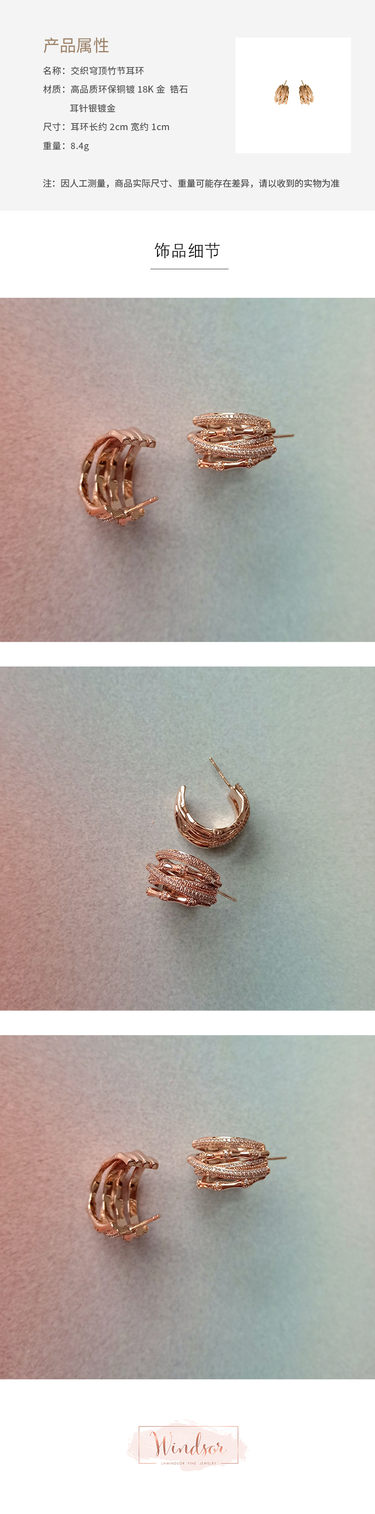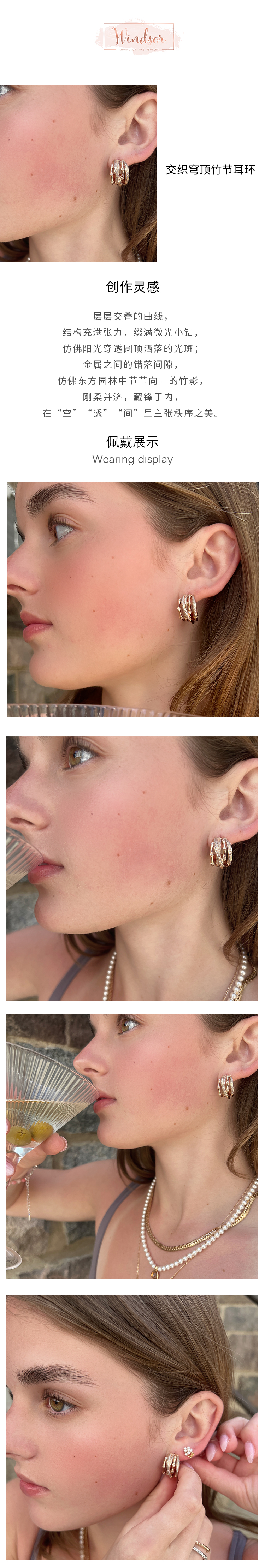 LHWINDSO 温莎珠宝 交织穹顶竹节耳环