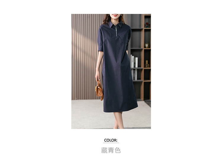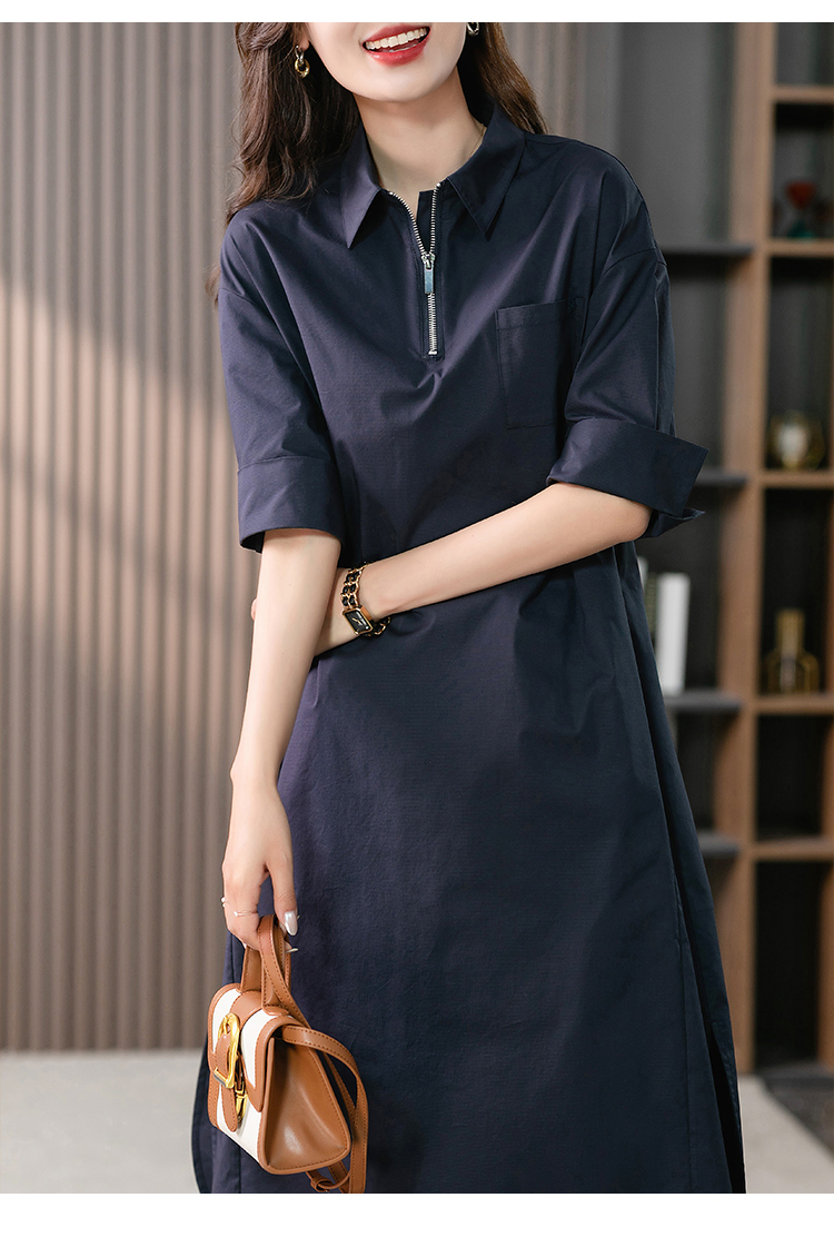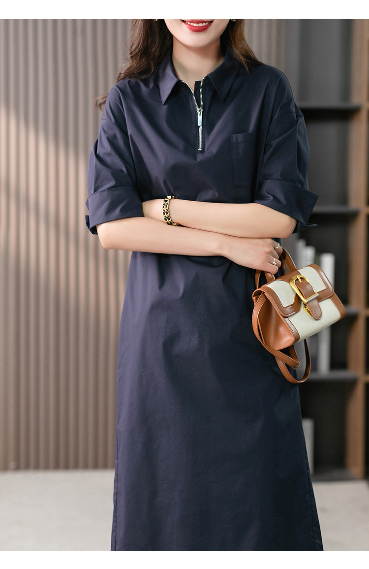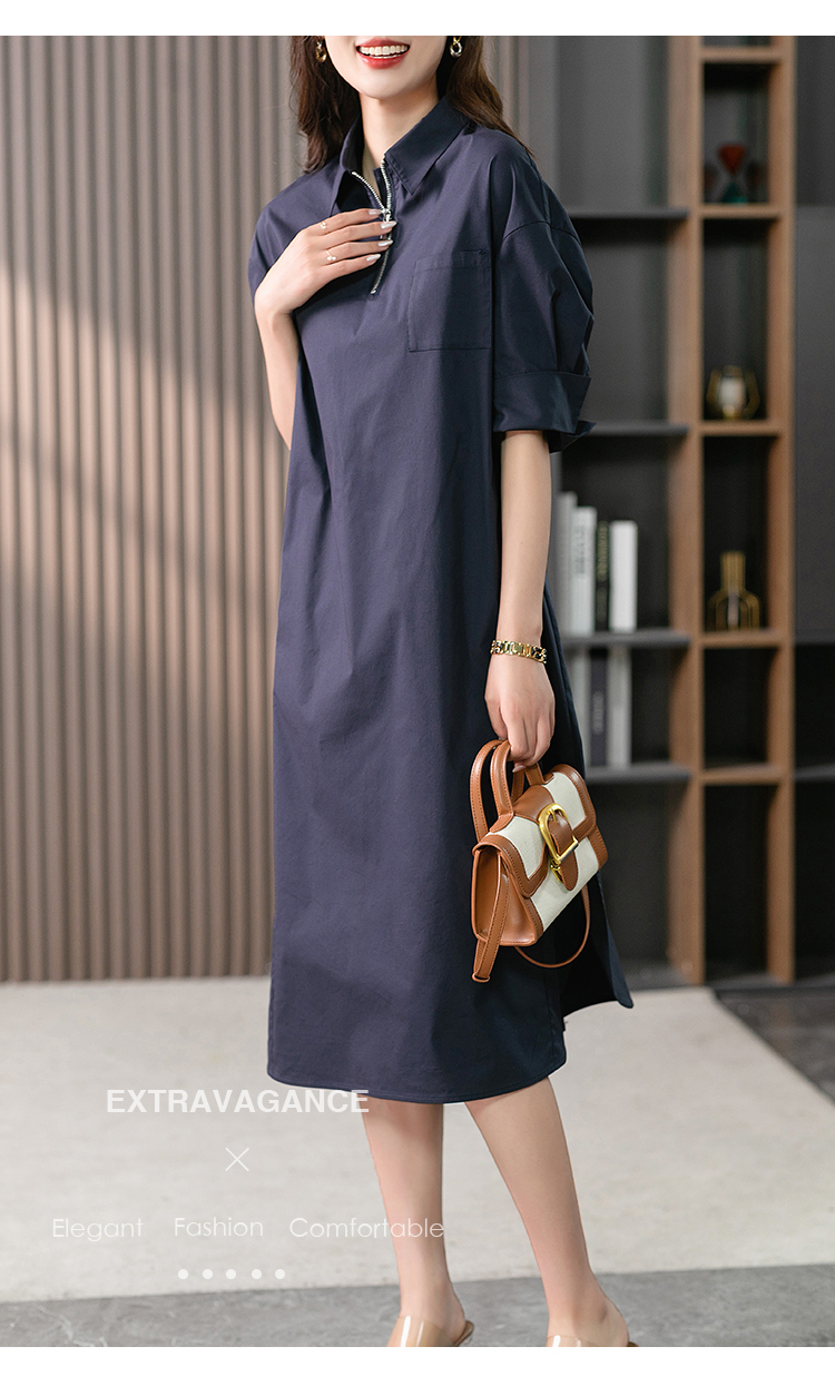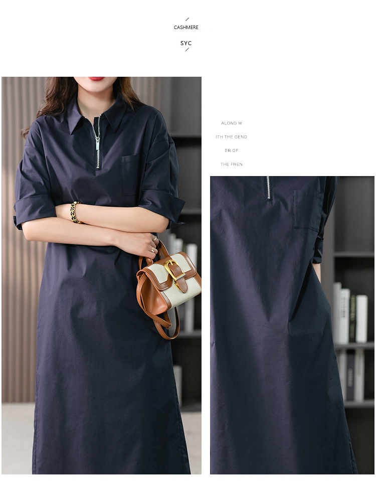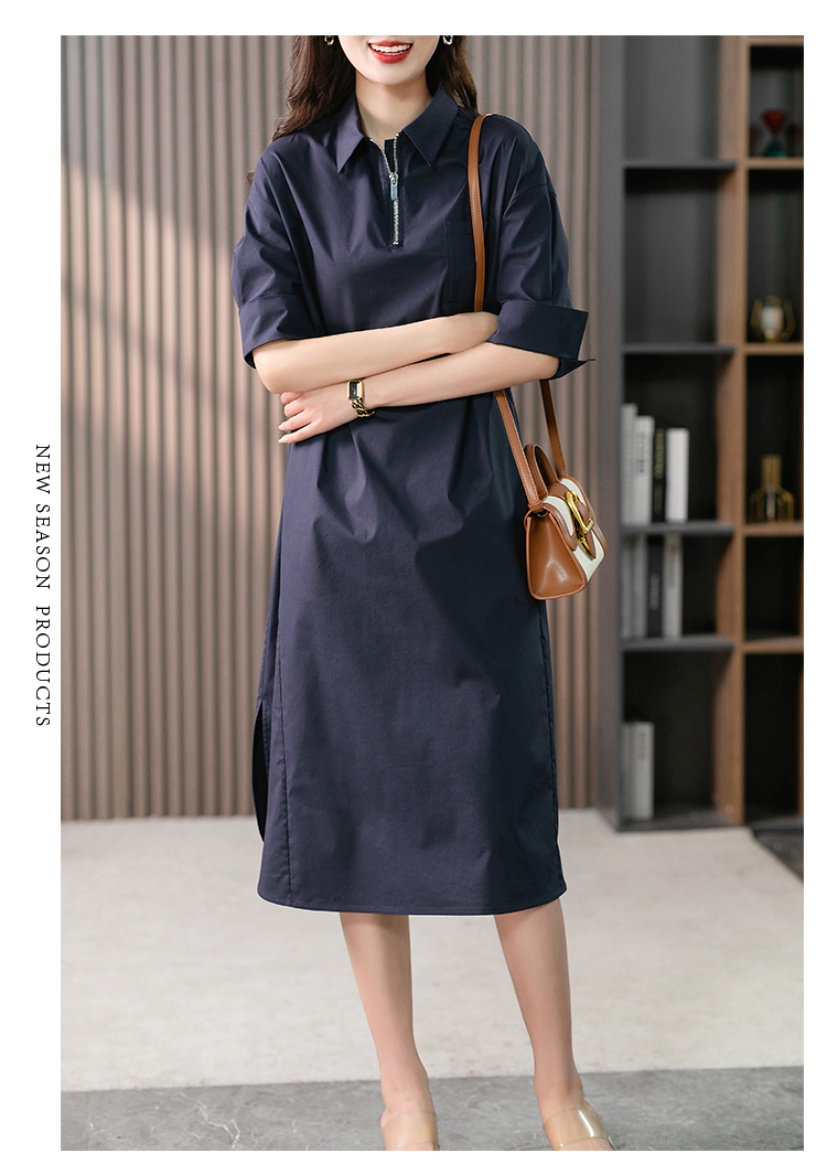 87317原形宽松拉链连衣裙女长款2024春夏季新款设计感小众开叉衬衫裙子