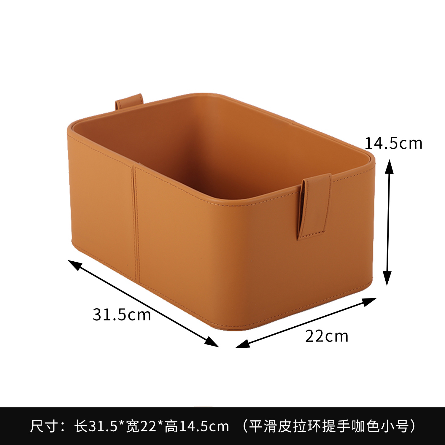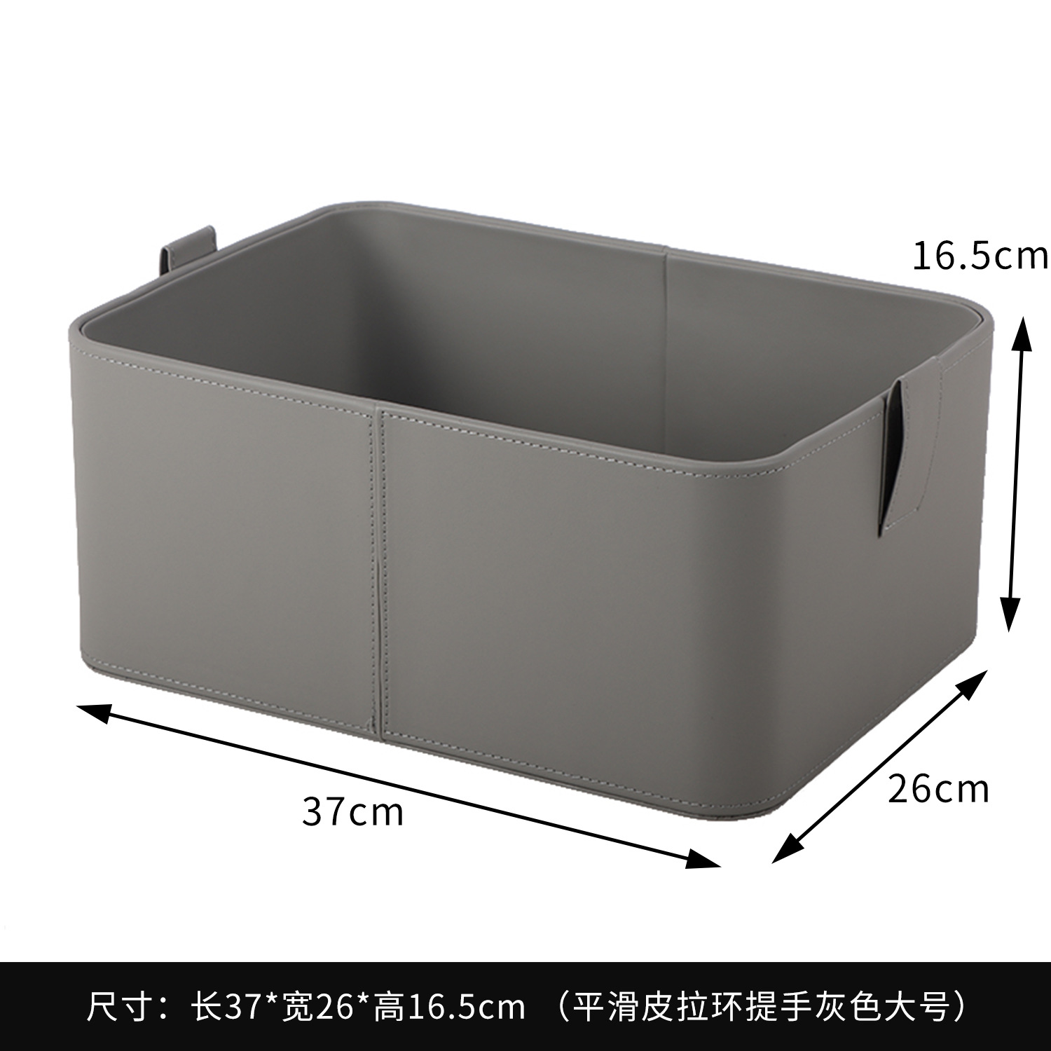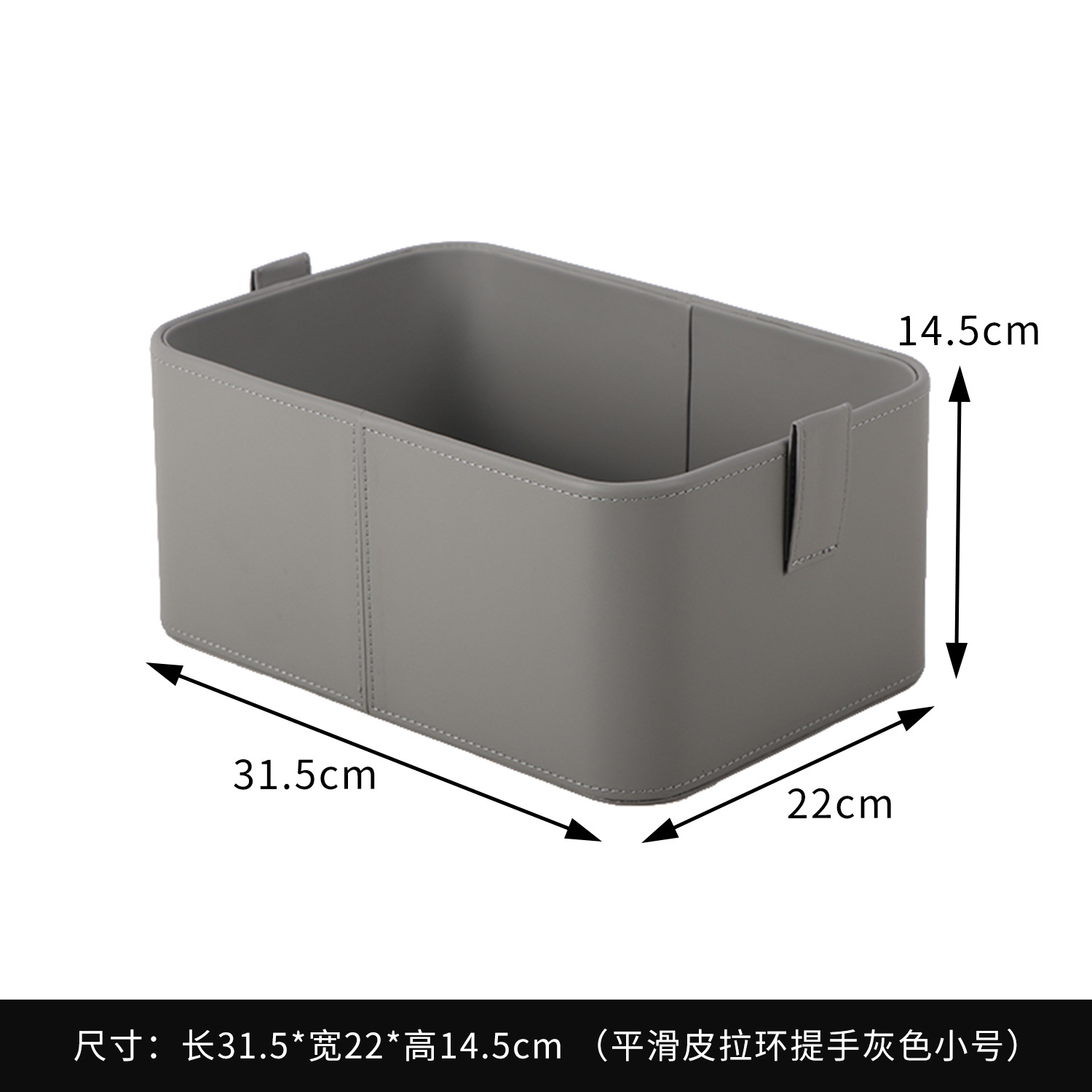 【灰色/橙色】娜家平滑皮拉环提手收纳盒