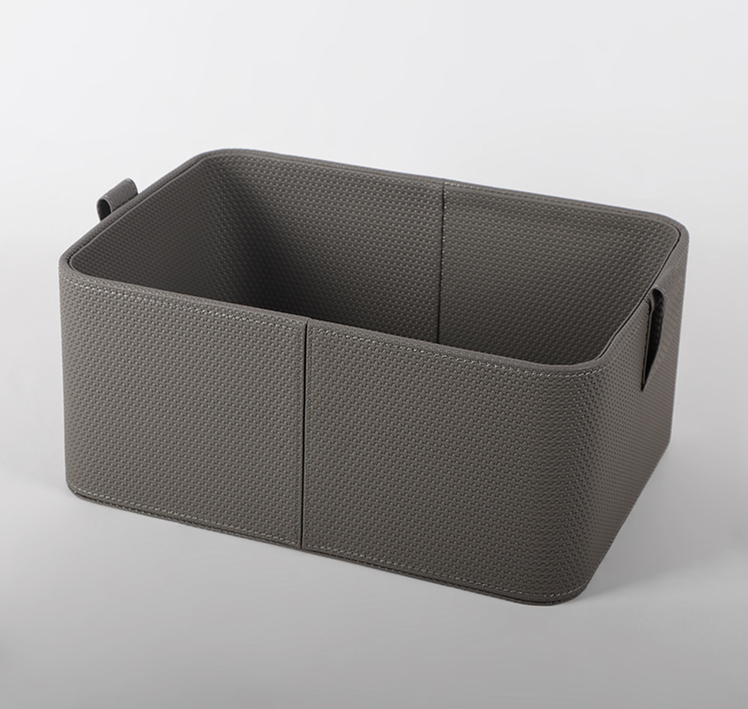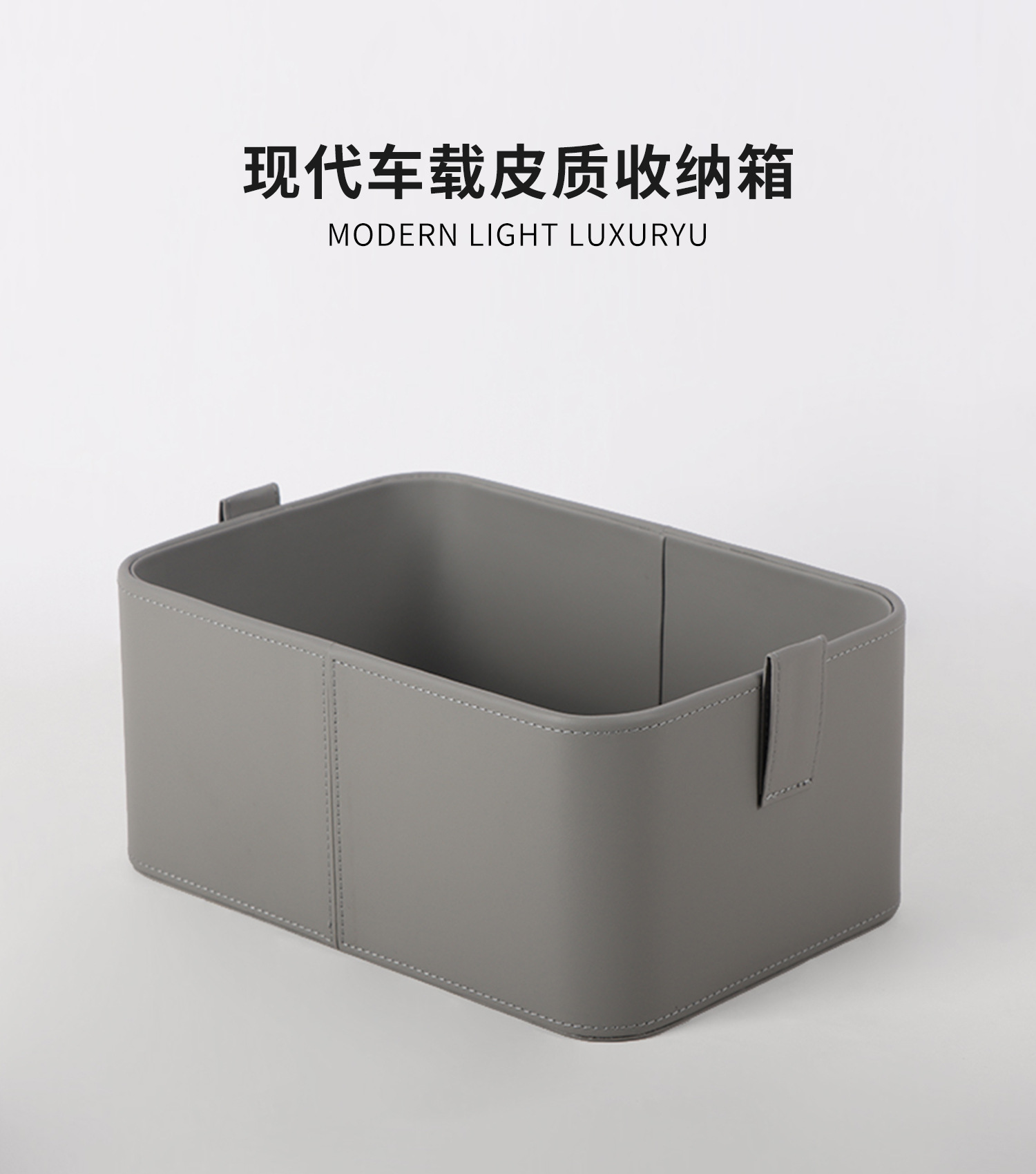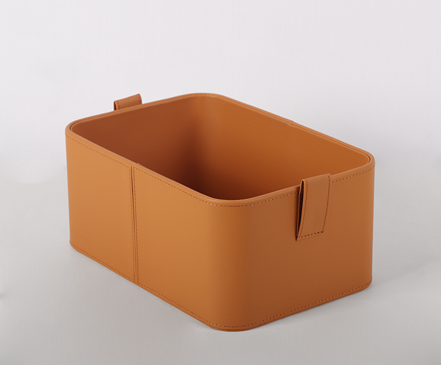 【灰色/橙色】娜家平滑皮拉环提手收纳盒