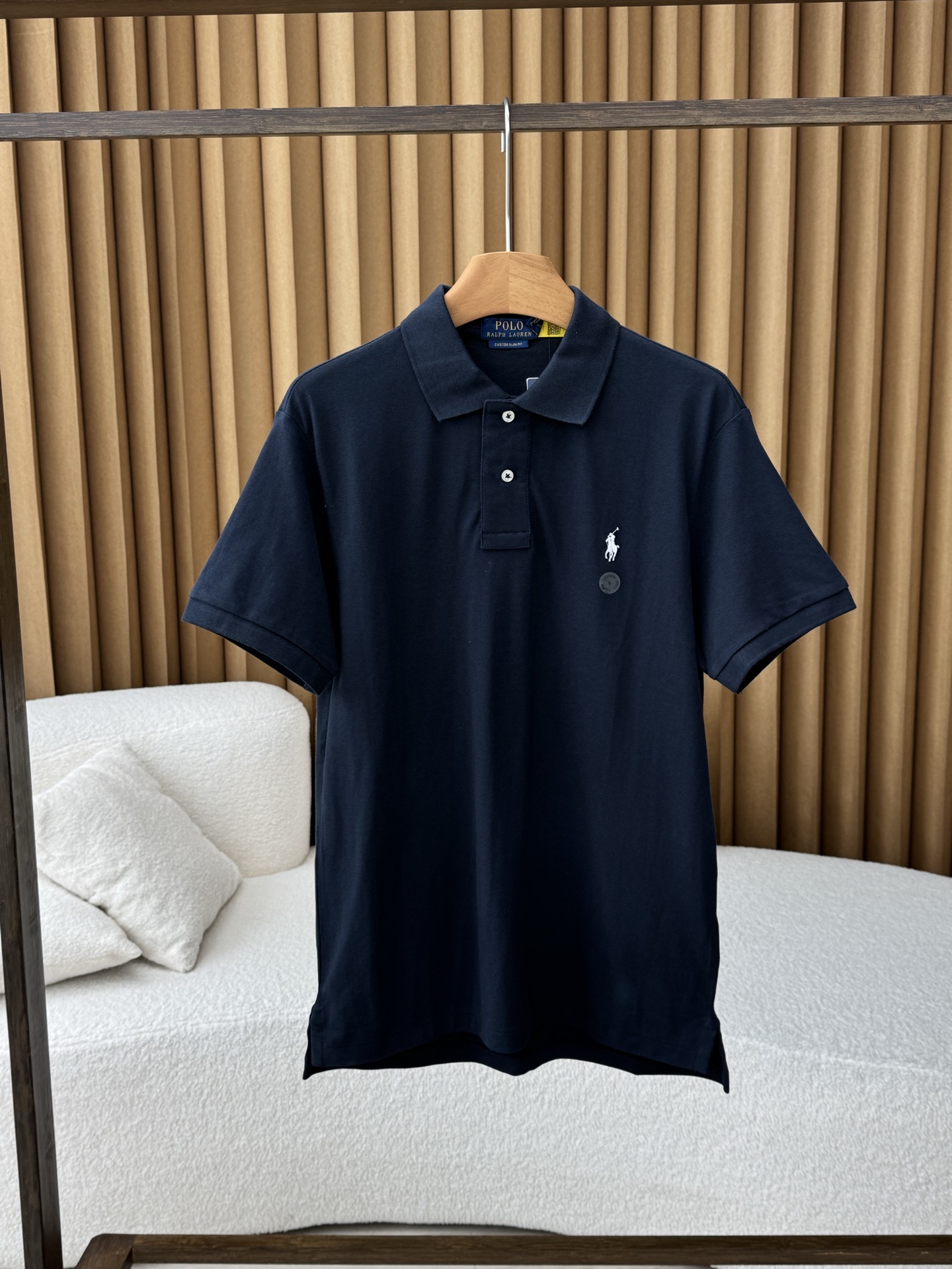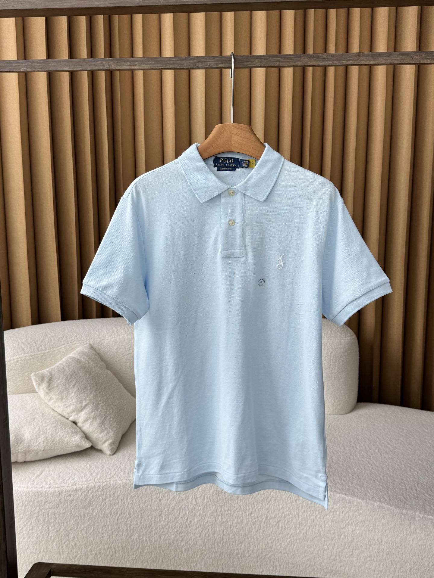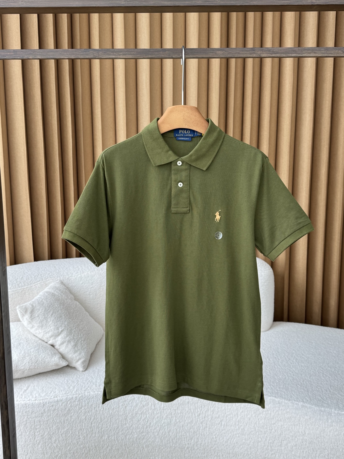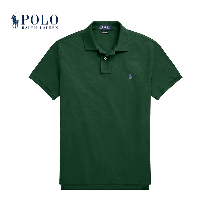 Ralph Lauren/拉夫劳伦 新款经典款修身版弹力Polo衫。 两粒扣短袖polo,属于正常前后分叉的版型。 打破polo衫一贯的刻板印象、 面料:采用200克客供纯棉网眼面料,手感柔软细腻,贴身穿吸汗透气,特别适合夏季。春秋也可当作内搭来穿 版型:两粒扣设计,典型的衬衫短袖设计,更显大气时尚气质,正肩的版型也能够更好的衬托身材,使得polo衫不会那么正式死板。 定织横机 polo领,弹力大!回弹性超级好,久穿,机洗都不会变形! 认准咱家品质!!质感肉眼可见! 夏季必备搭配单品!这样经典的款式,春夏秋三季都可以穿!简约又高级!!