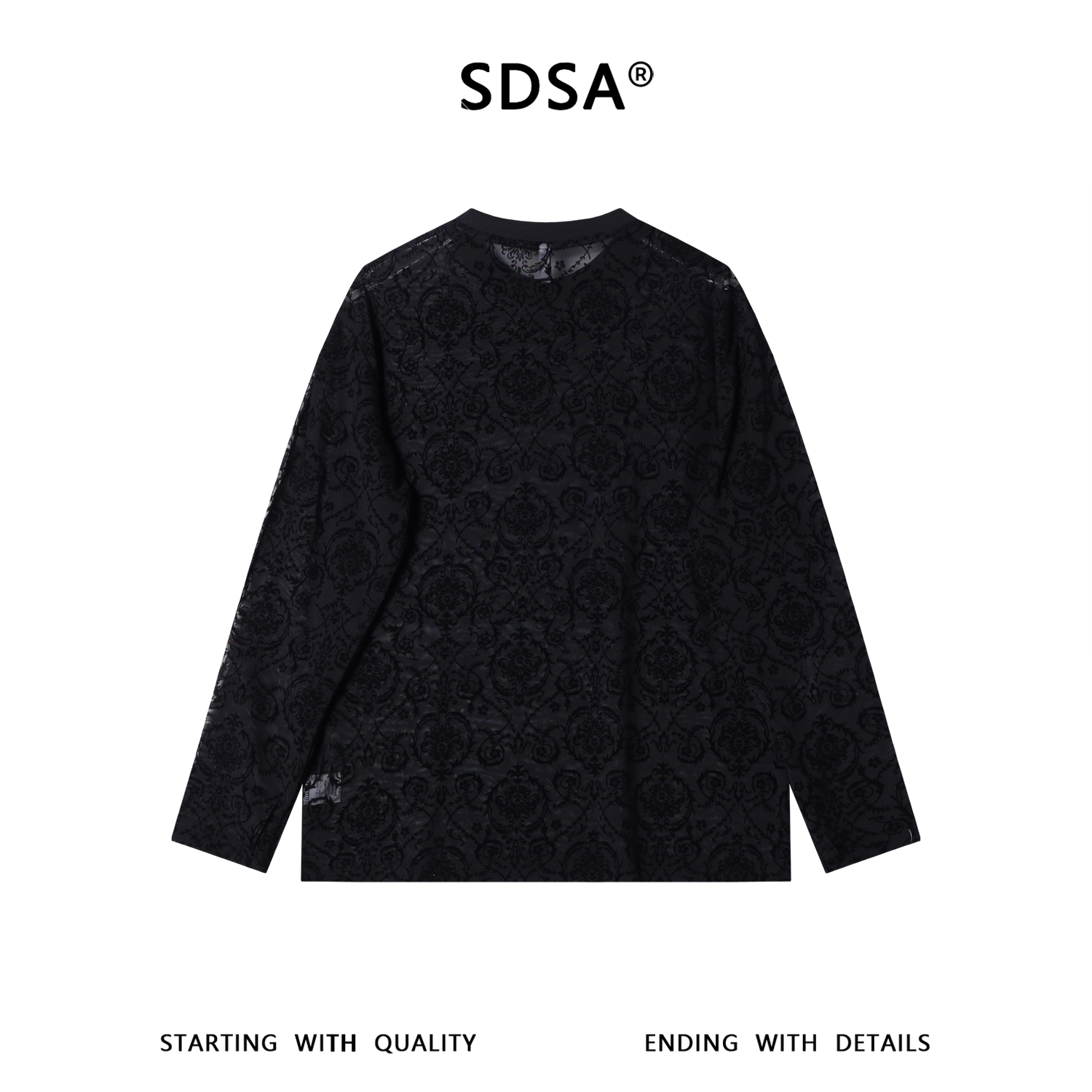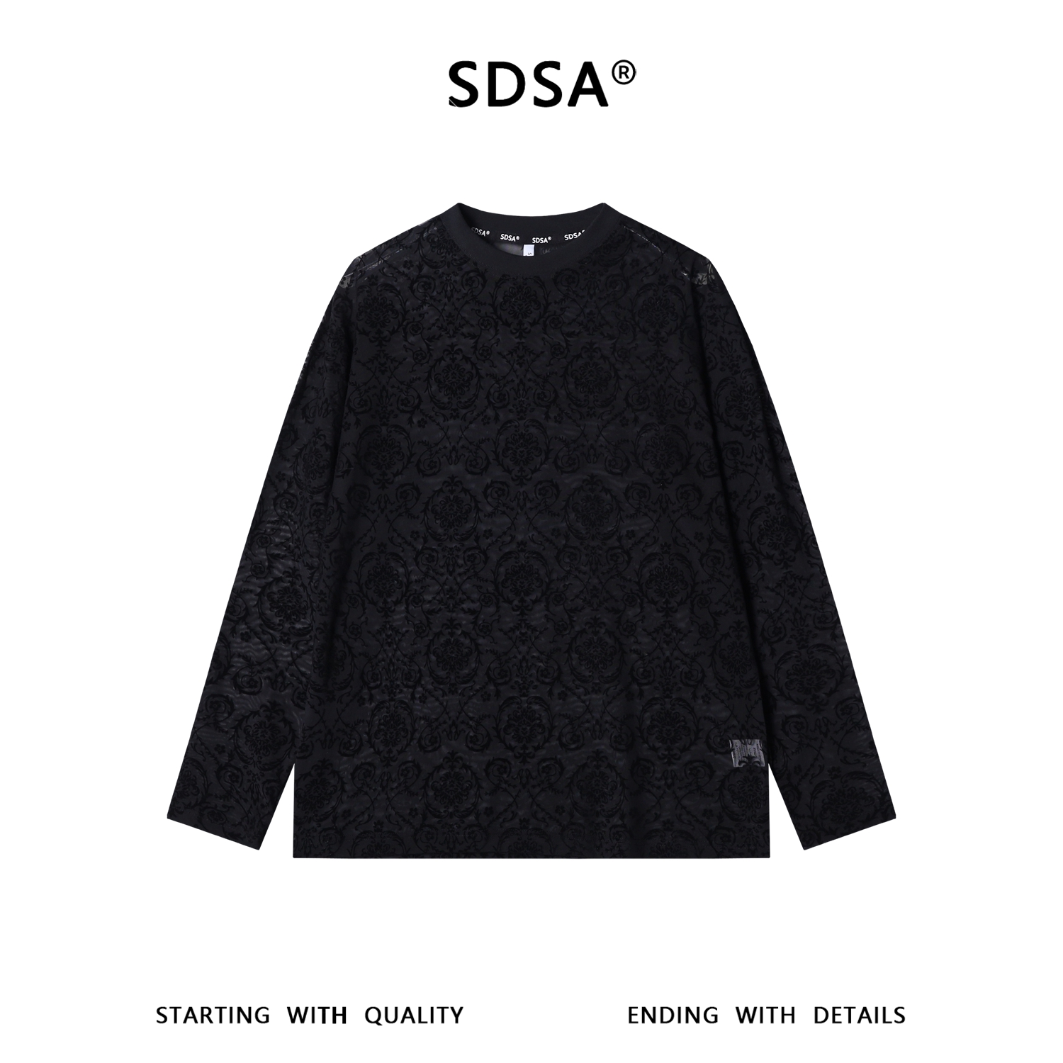 SDSA男装2026新款高贵轻奢简约透气植绒花卉圆领长袖T恤百搭休闲