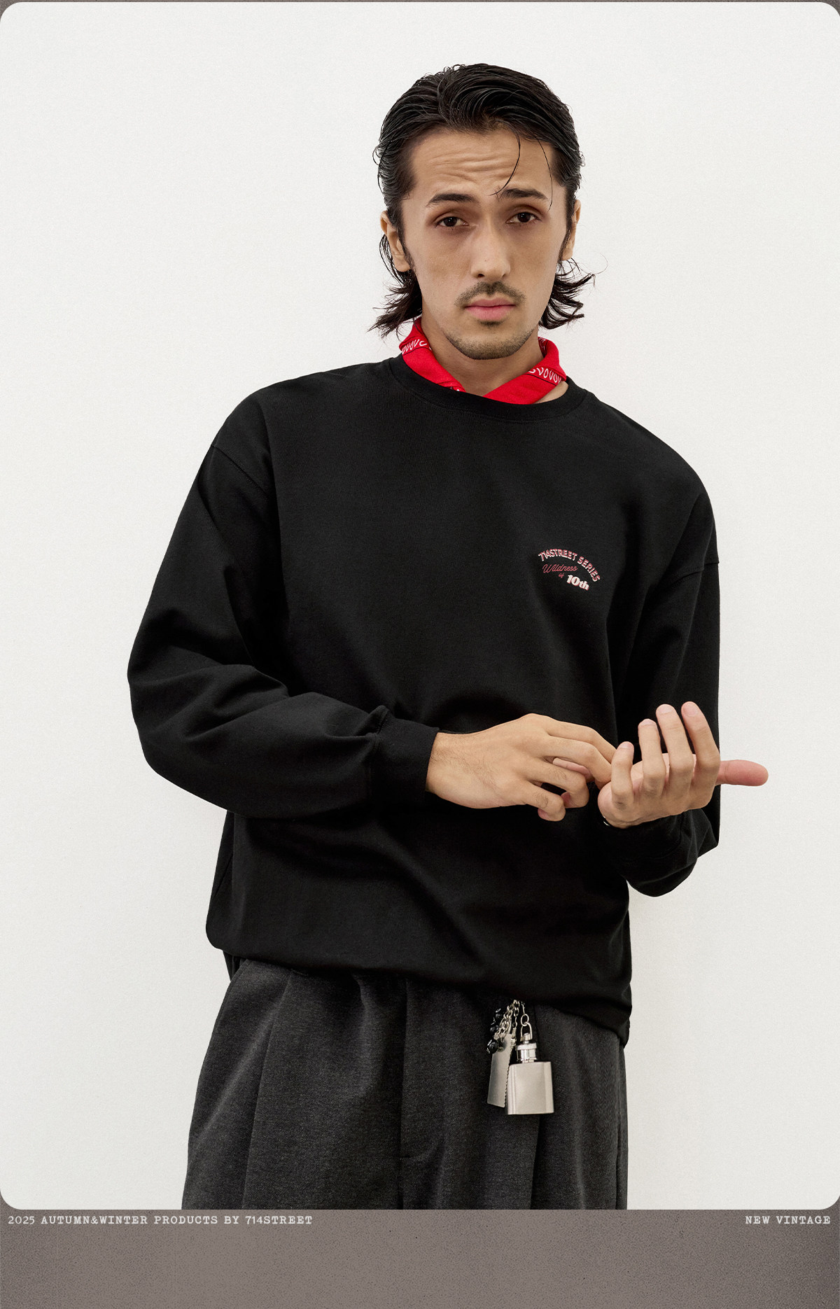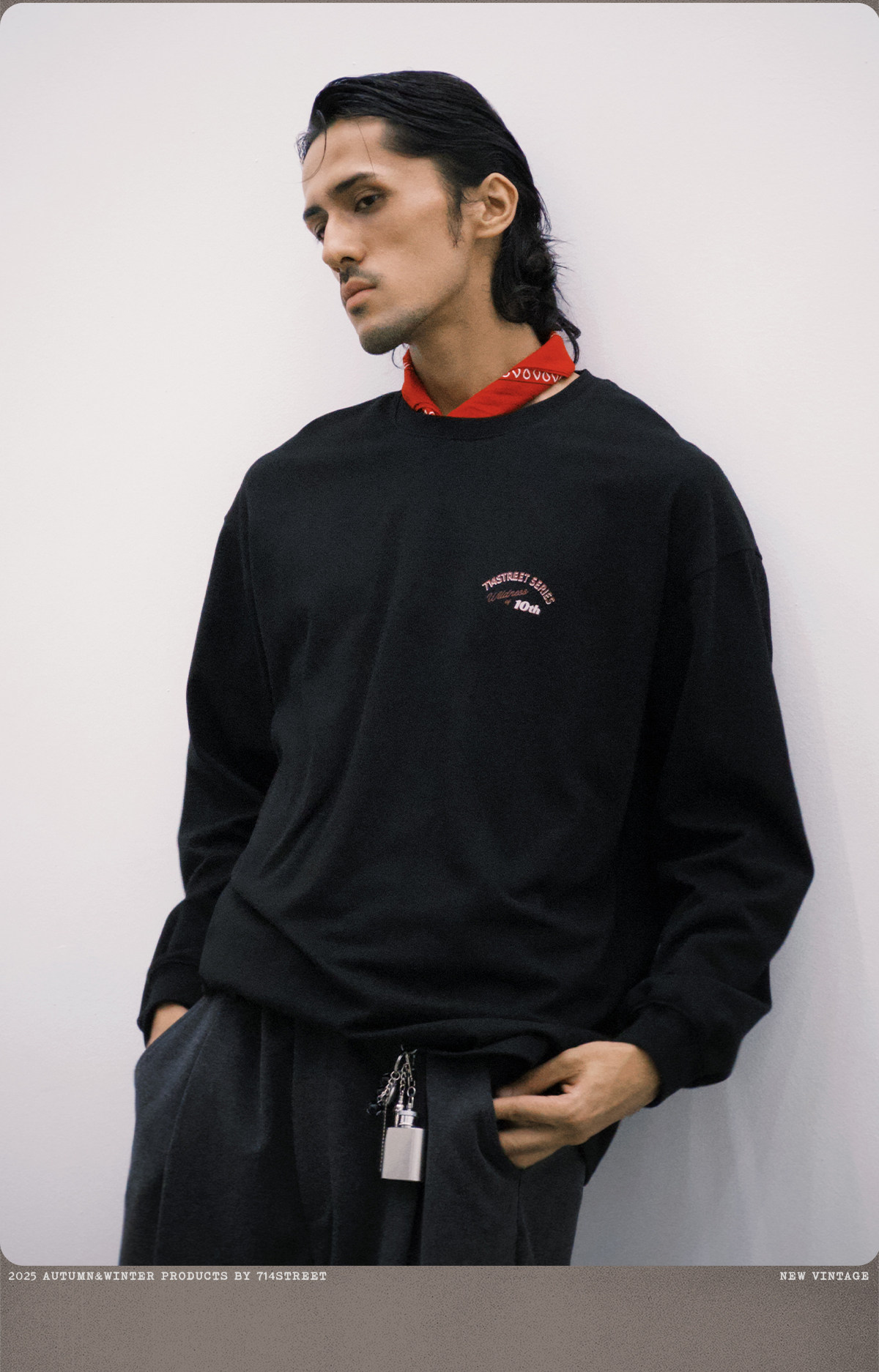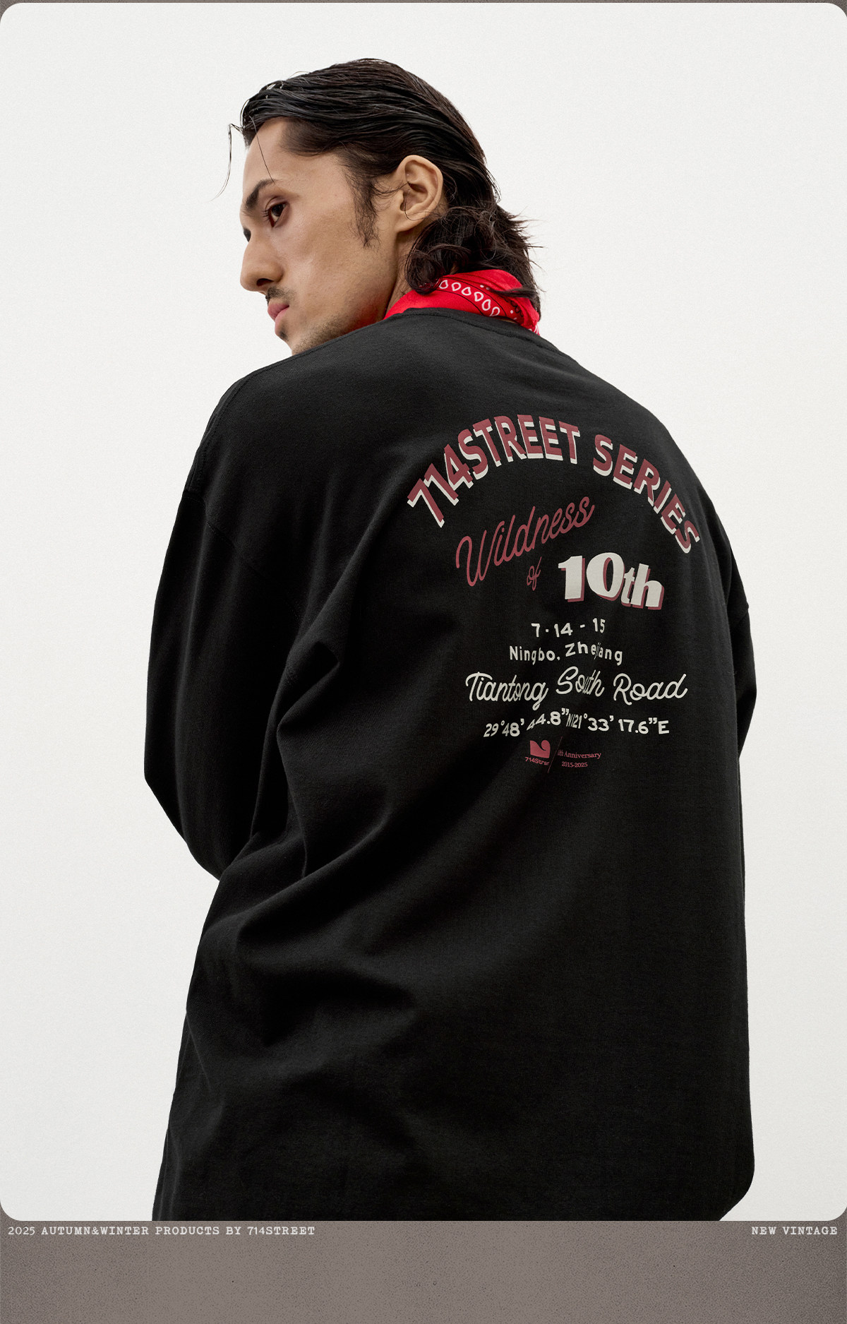 714street十周年印花长袖上衣2025秋季潮牌情侣美式复古纯棉T恤男