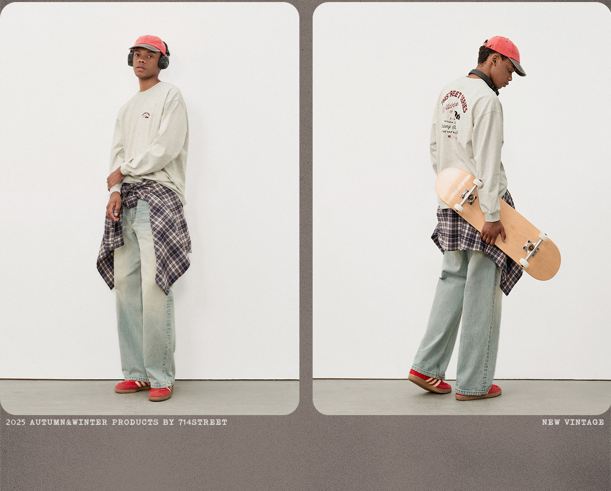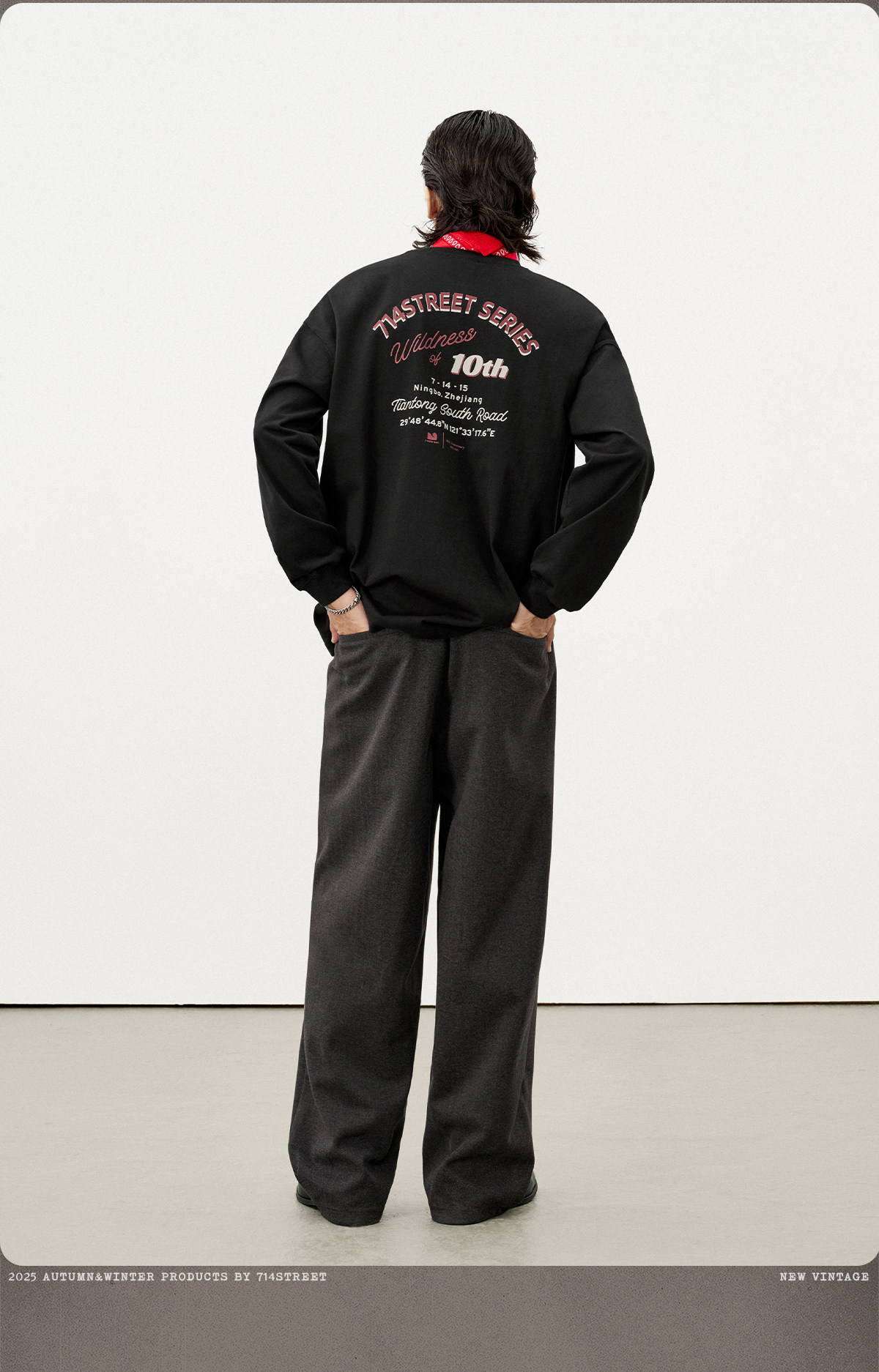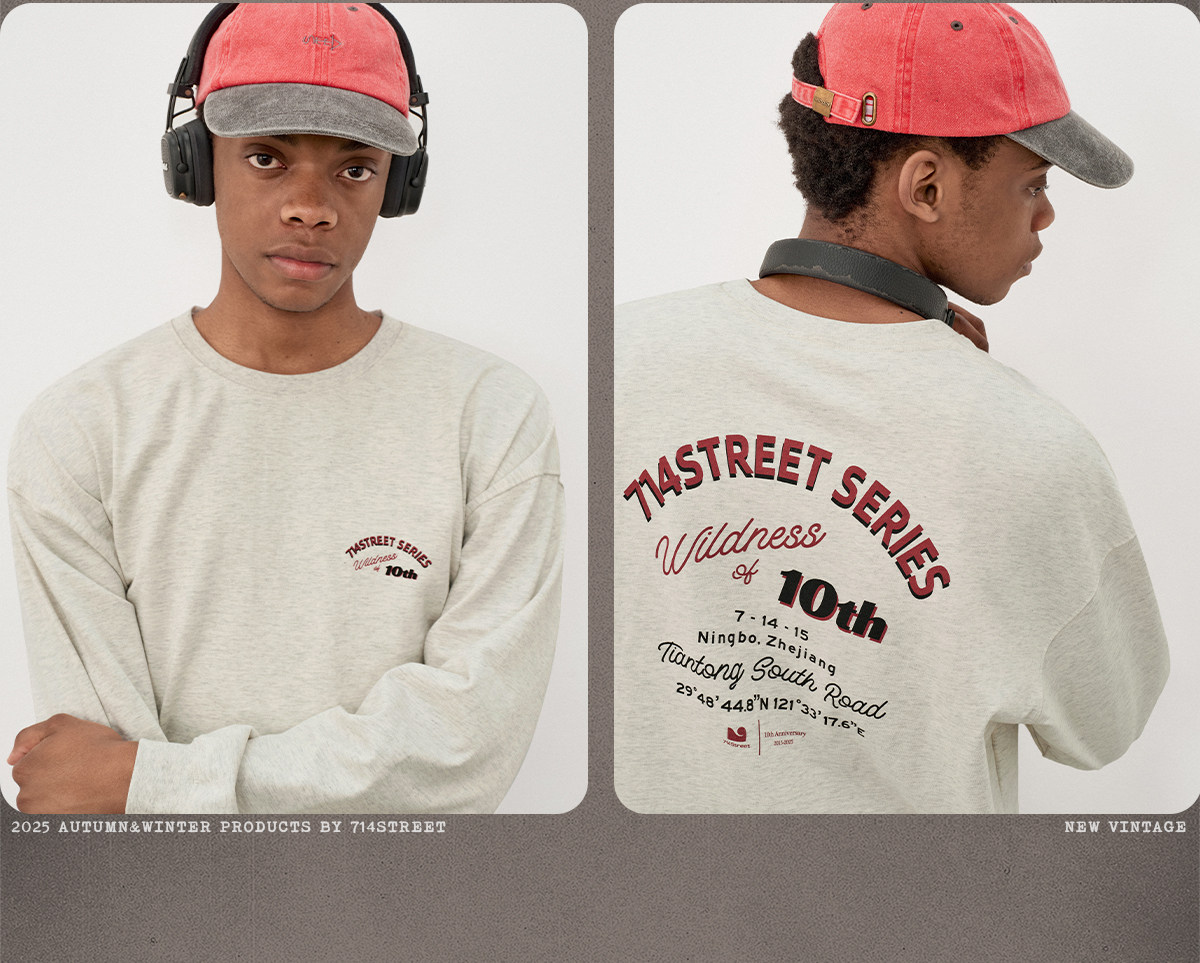714street十周年印花长袖上衣2025秋季潮牌情侣美式复古纯棉T恤男