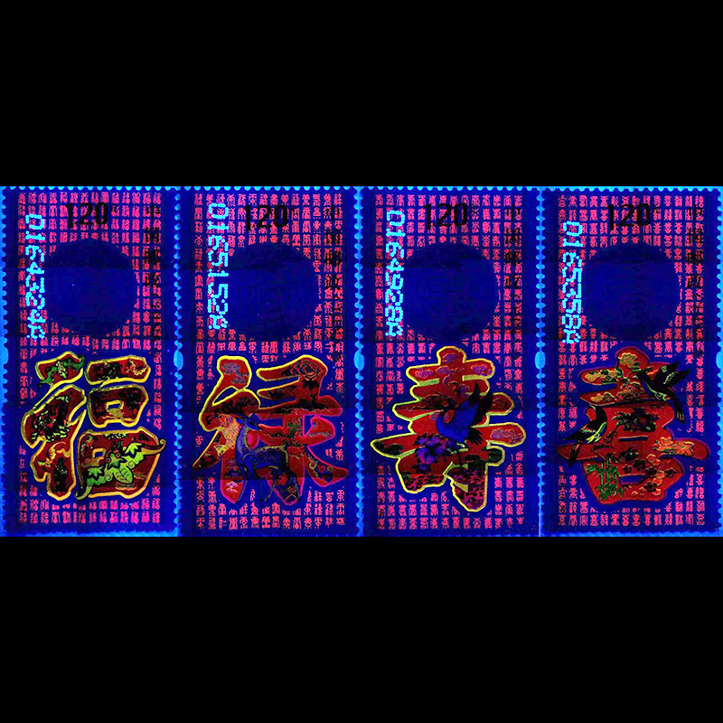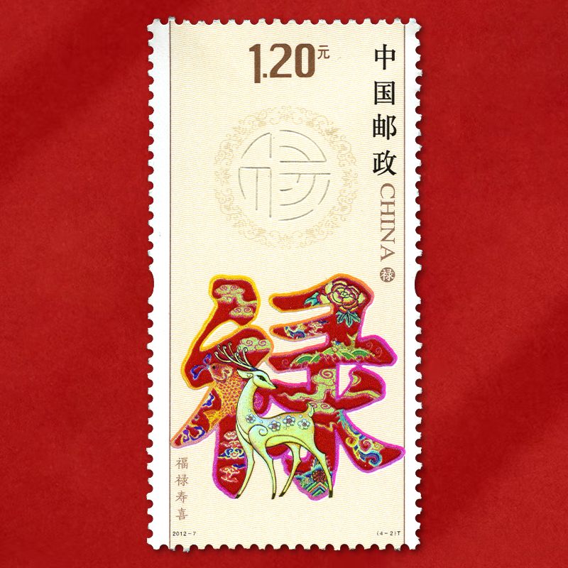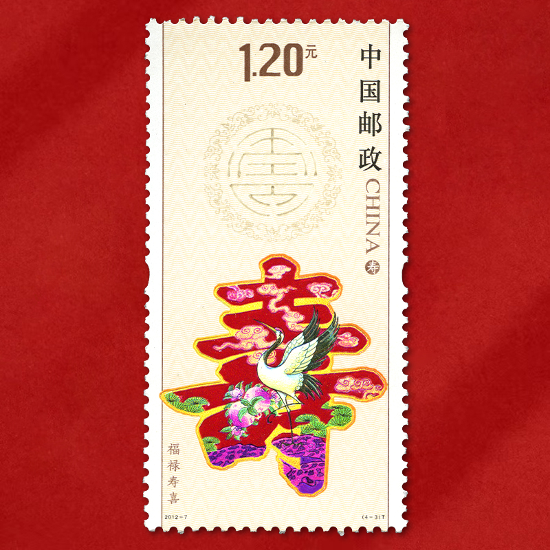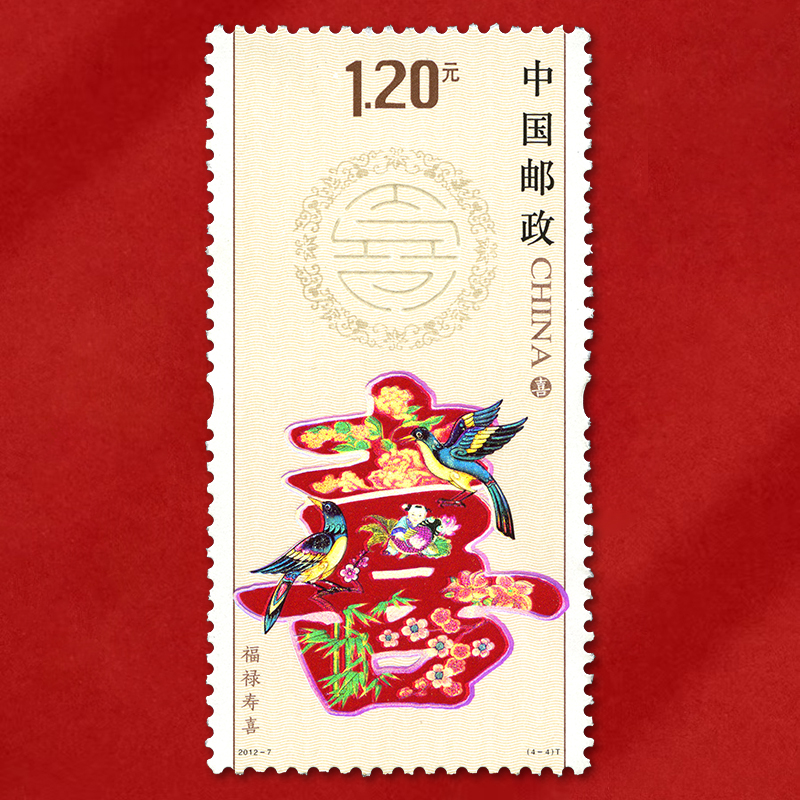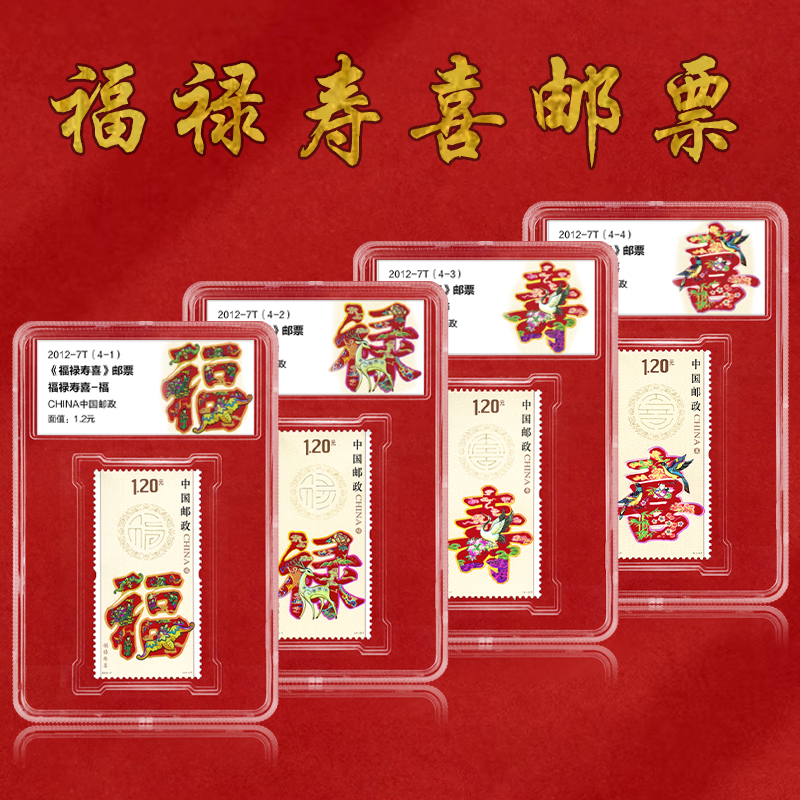 《福禄寿喜》邮票 一套4枚 荧光效果显示百福、百禄、百喜、百寿篆刻字体 2012-7