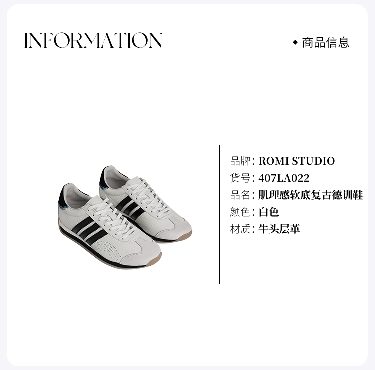 ROMI STUDIO “复古态度” 粒面牛皮肌理感软底复古德训鞋 407LA022