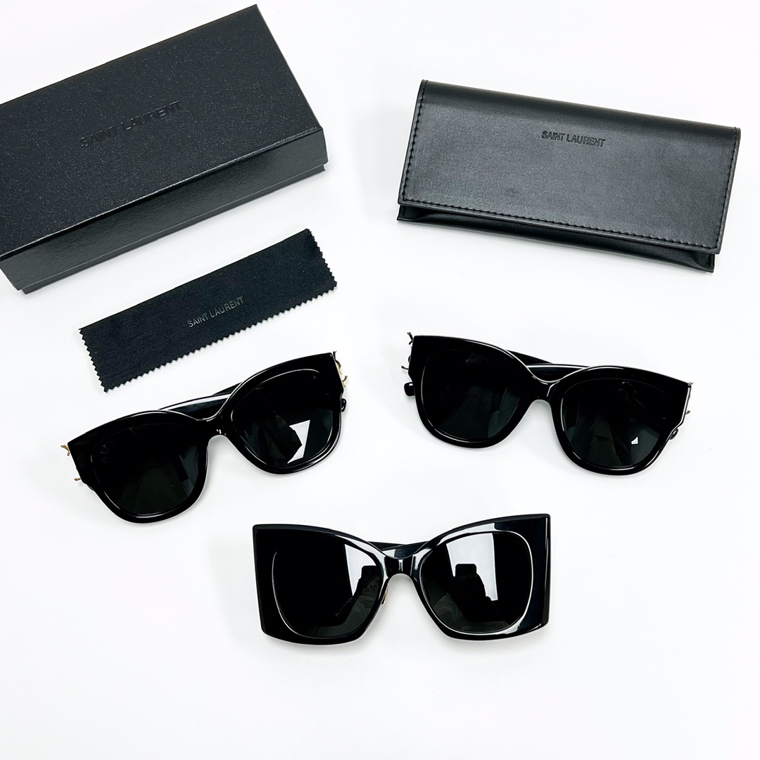 型号:SLM119/F 尺寸:【54口18-135】 一秒女明星感觉~侧面大ogo真的爱了爱了!!很显脸小的一款墨镜,超强辨识度时髦拉满!巨巨巨显脸小!拽姐必备 今年最酷的墨镜! 超宽镜腿一整个霸气侧漏啊,更是全方位遮挡住眼睛~追求显脸小的宝子选她!追求气场的宝子选她! 型号:SLM95/F 尺寸:【53口20-145】 23新款ROSE同款,不规则圆框形设计,呈现出优雅的特点,汲取了圣洛朗的设计灵感,将艺术文化的多元因素融入眼镜的设计之中,简单的款式设计,板材镜腿上的“YSL”标志,大牌气质尽显。高级优雅又贵气!