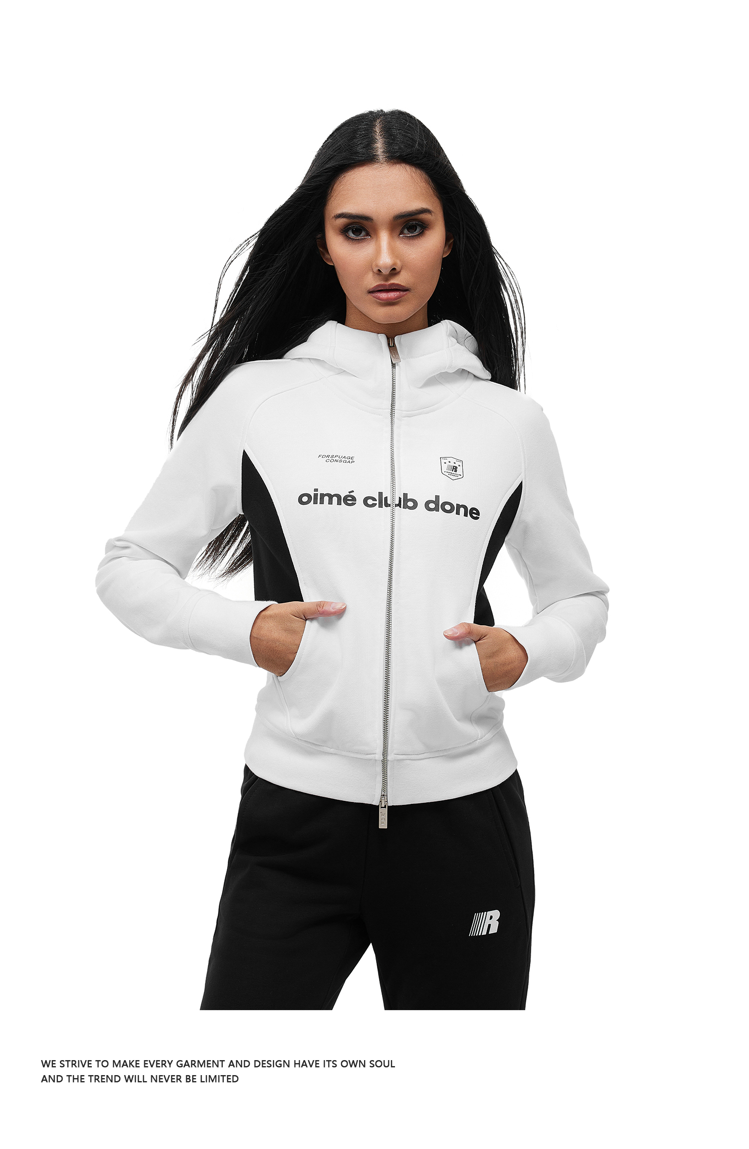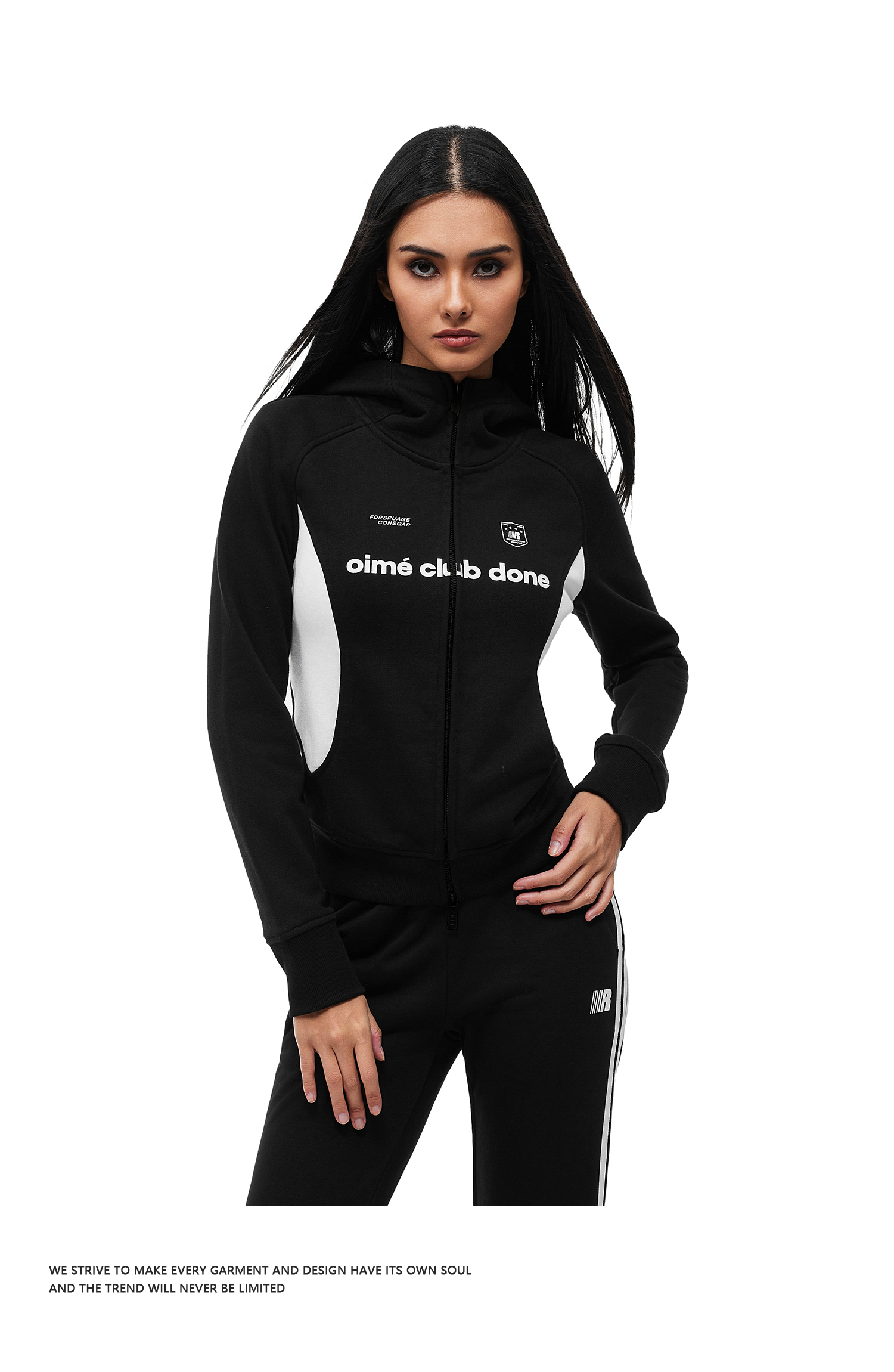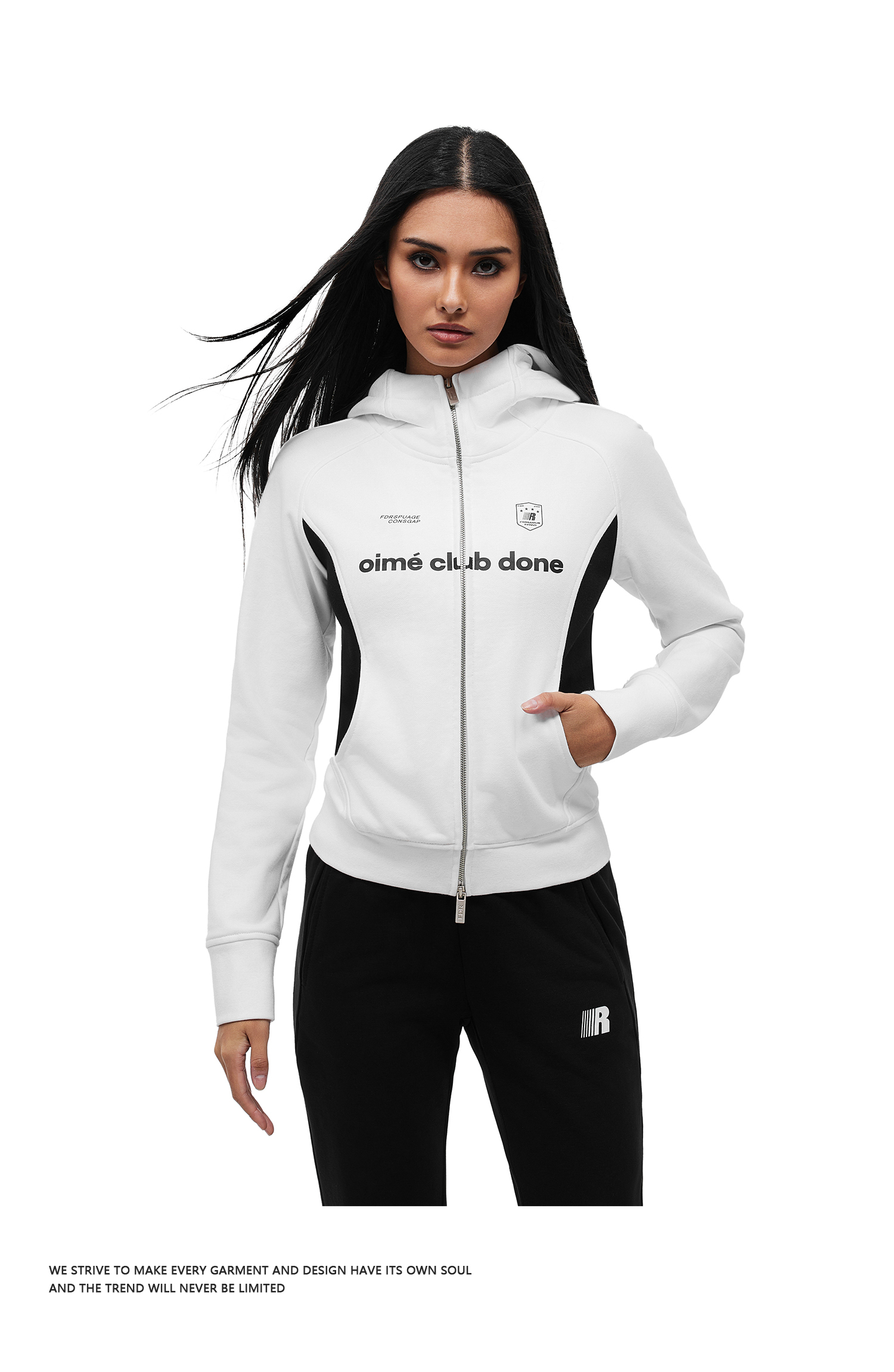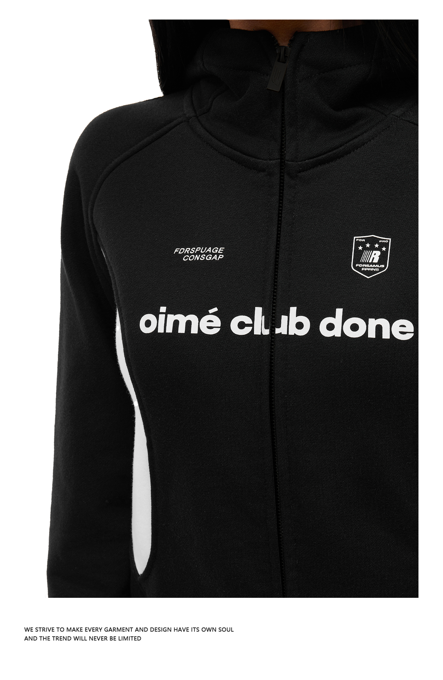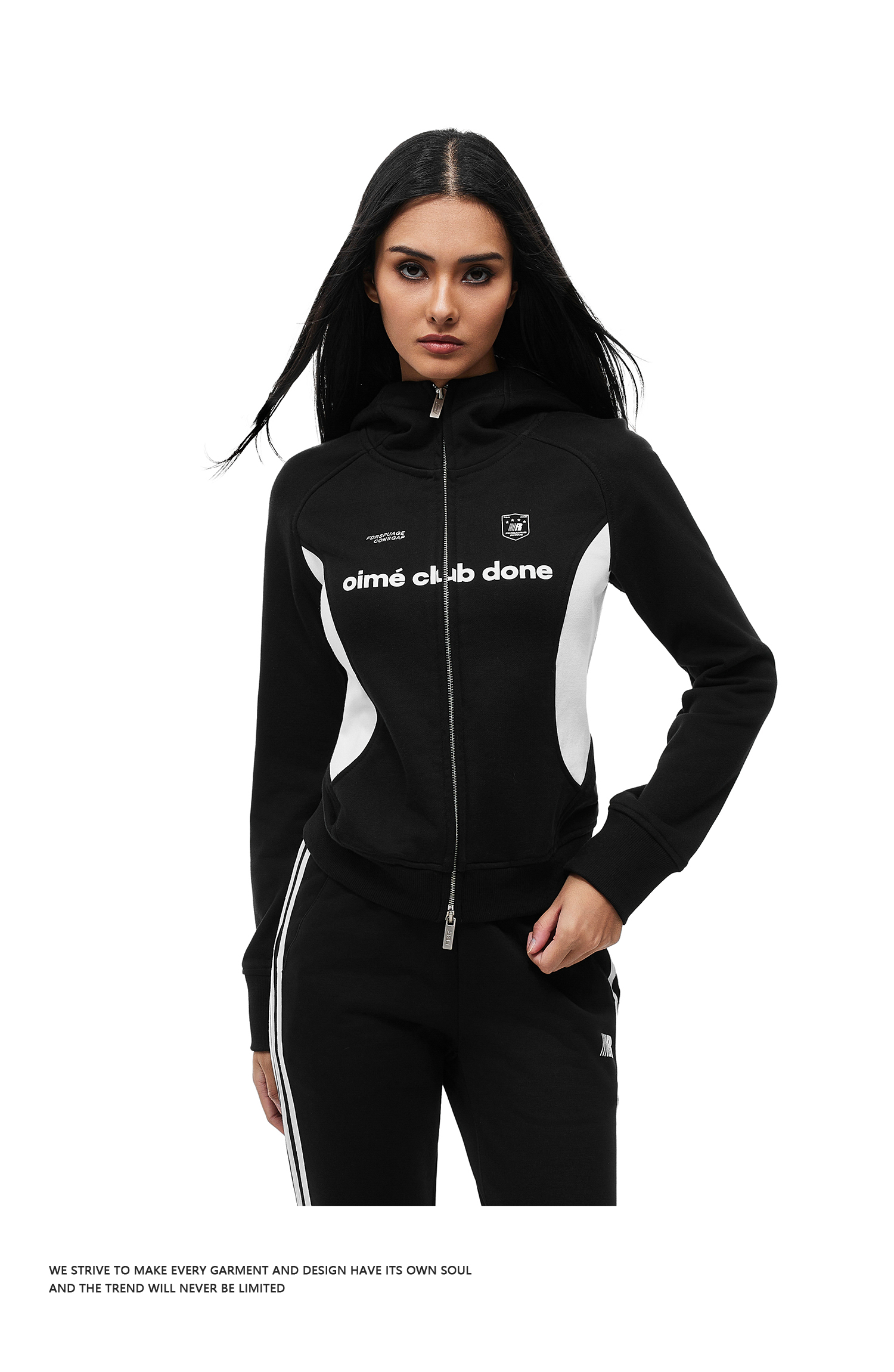 FDR官方店 辣妹高领连帽小拼接撞色卫衣女秋季修身显瘦开衫上衣